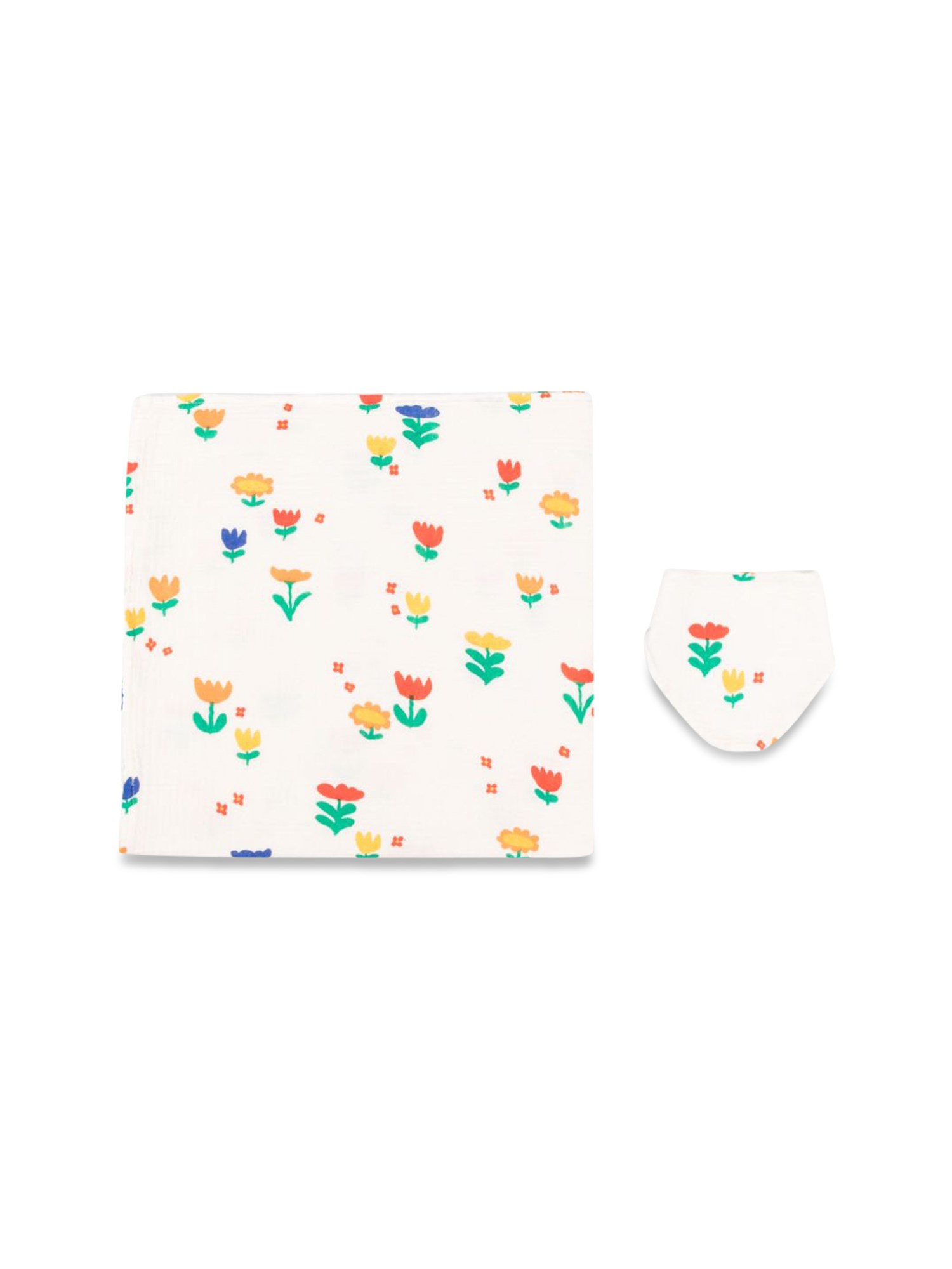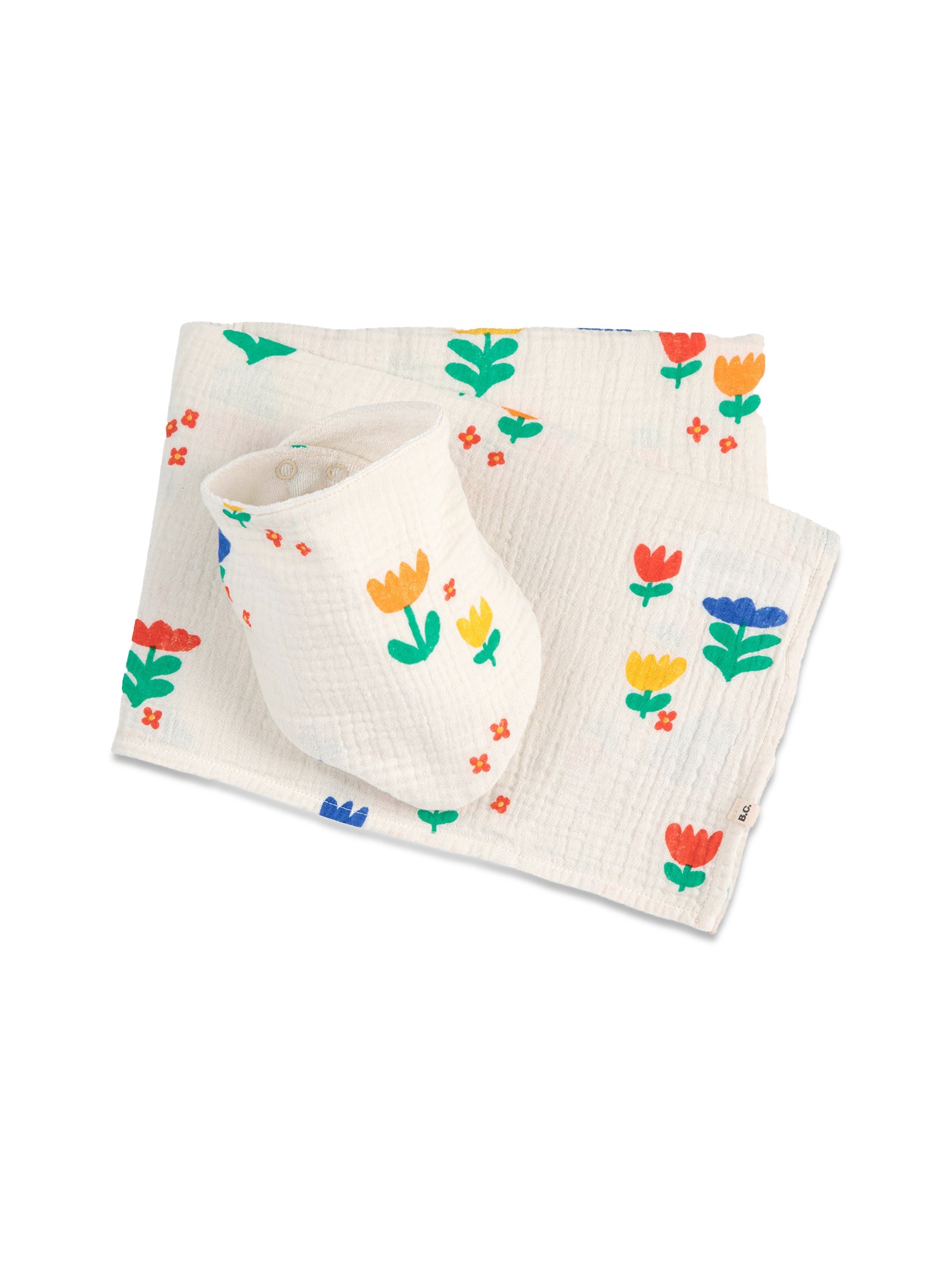 "GARDEN PARTY" BIB SET WITH ALL OVER PRINT