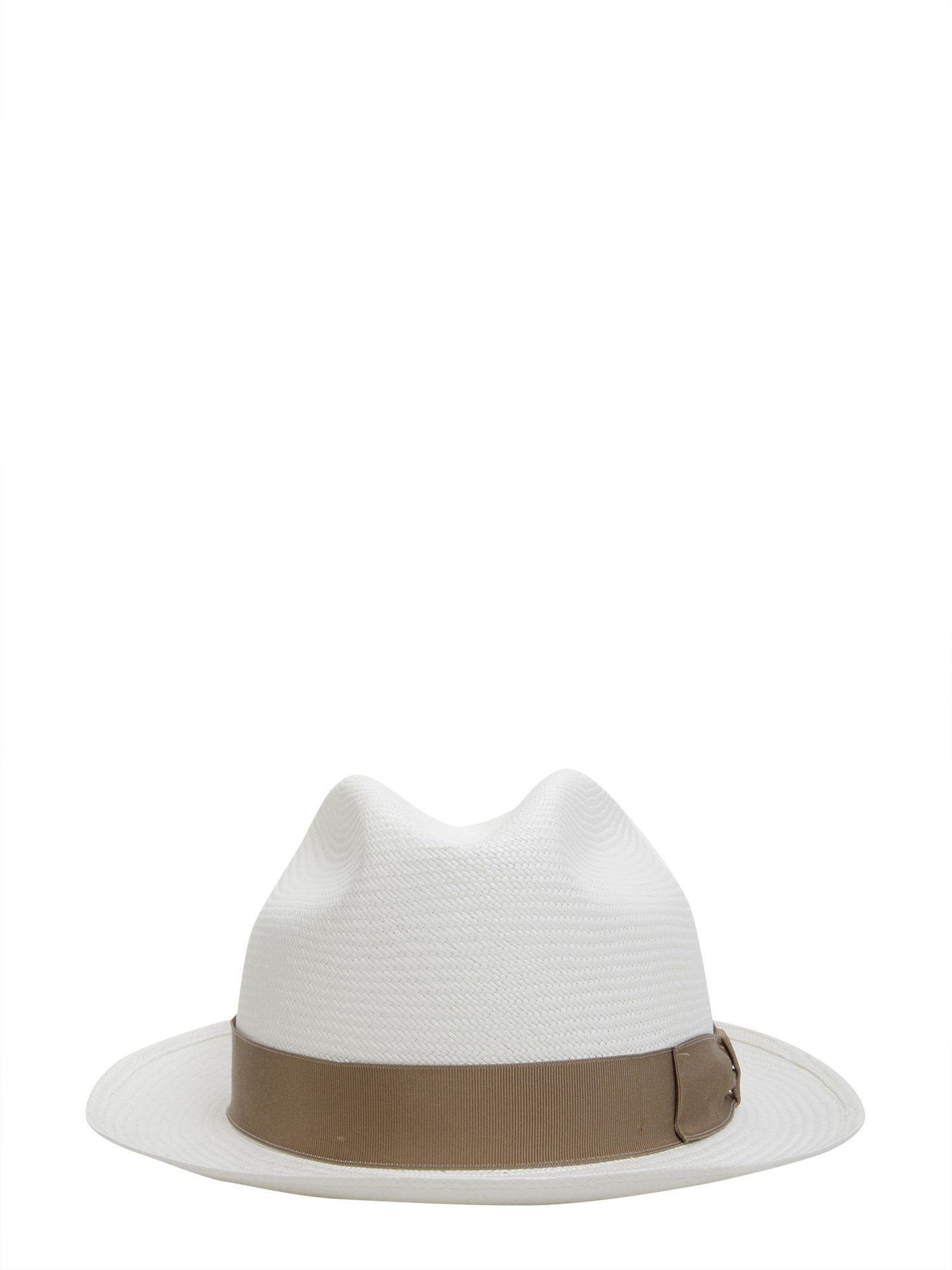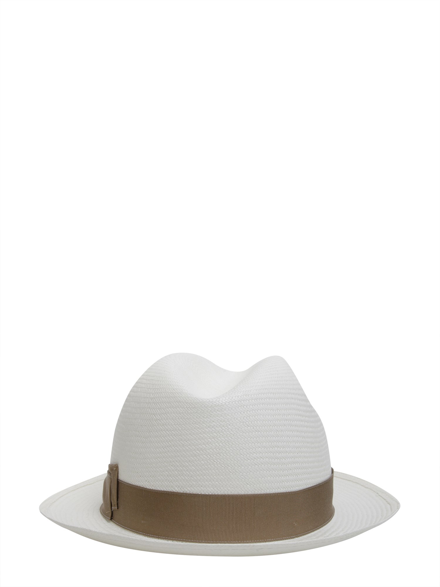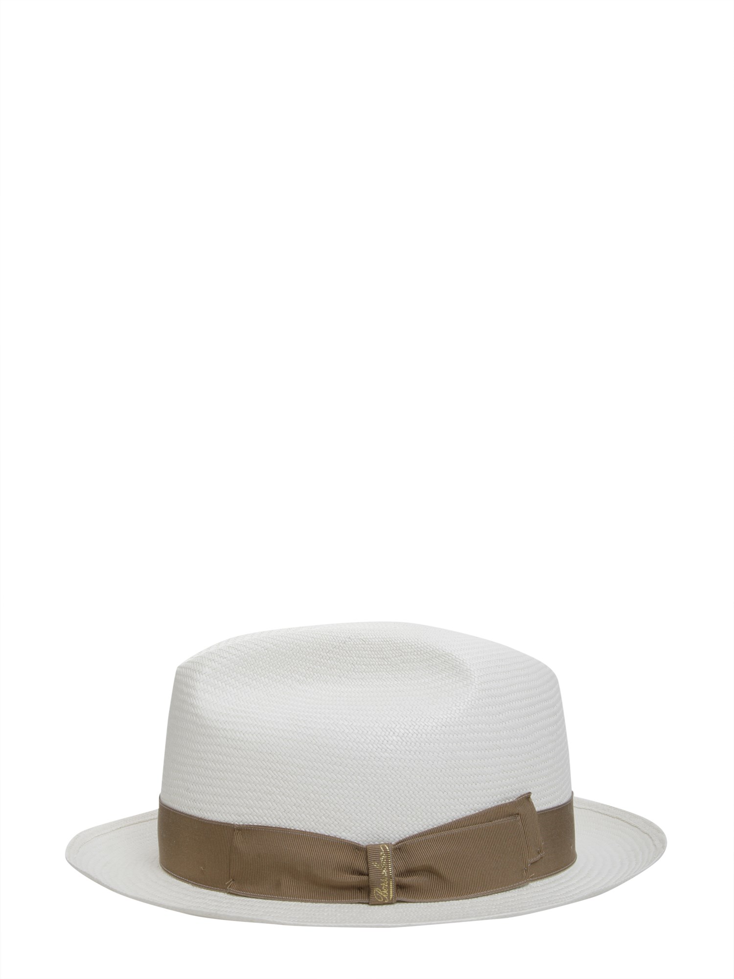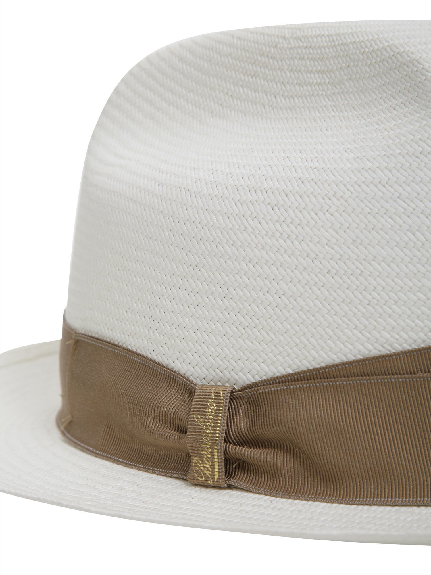 - SHORT BRIM- 3 CM CANNETÉ TIE WITH ICONIC BOW- BLEACHED ECUADORIAN STRAW WITH NATURAL PIGMENTS- 100% STRAW- MADE IN ITALY