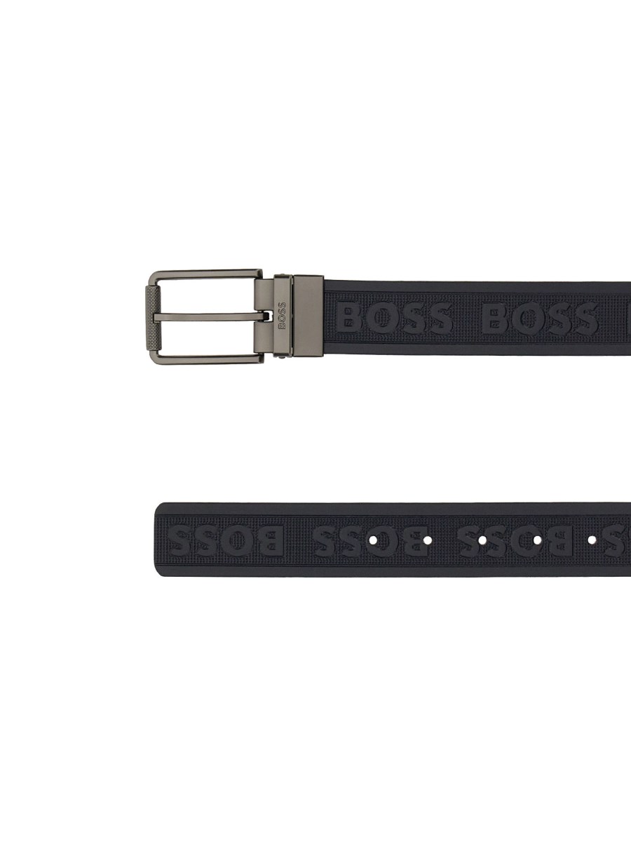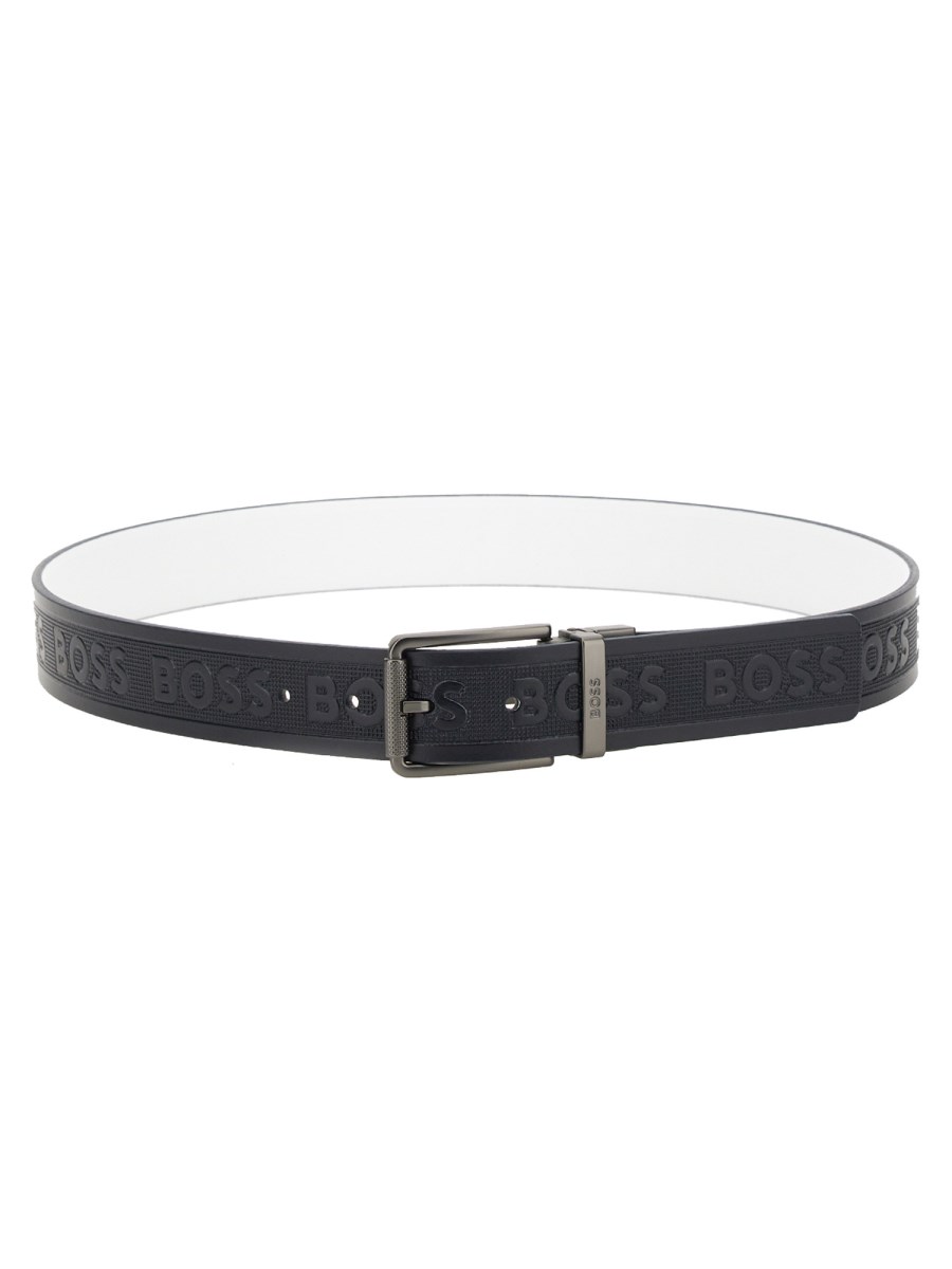 This is a quality, reversible cow leather belt with an adjustable closure with a metal logo buckle. It's a stylish and comfortable belt for those who like to mix and match their style. It's made of high-quality cow leather that has been treated to have a polished finish. This belt is made of leather, making it durable and comfortable to wear.