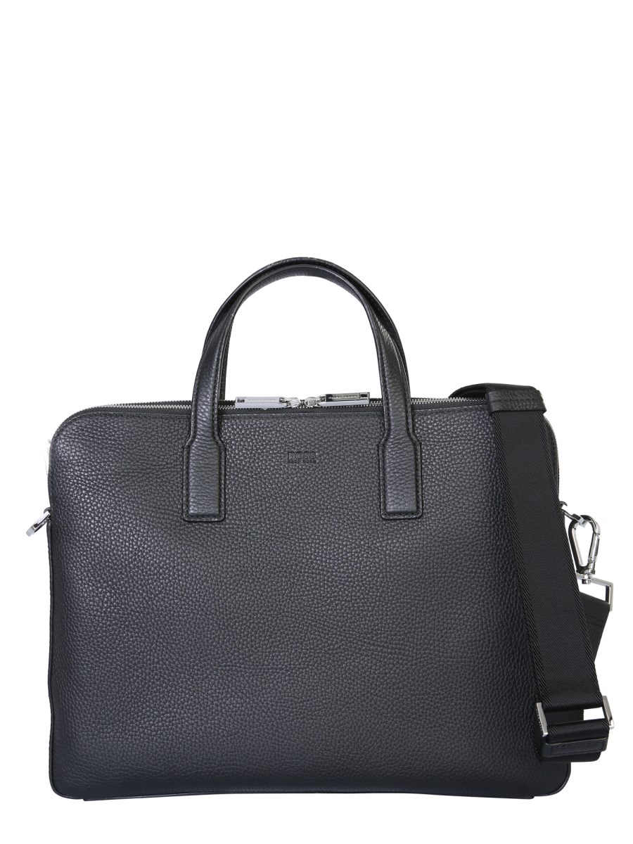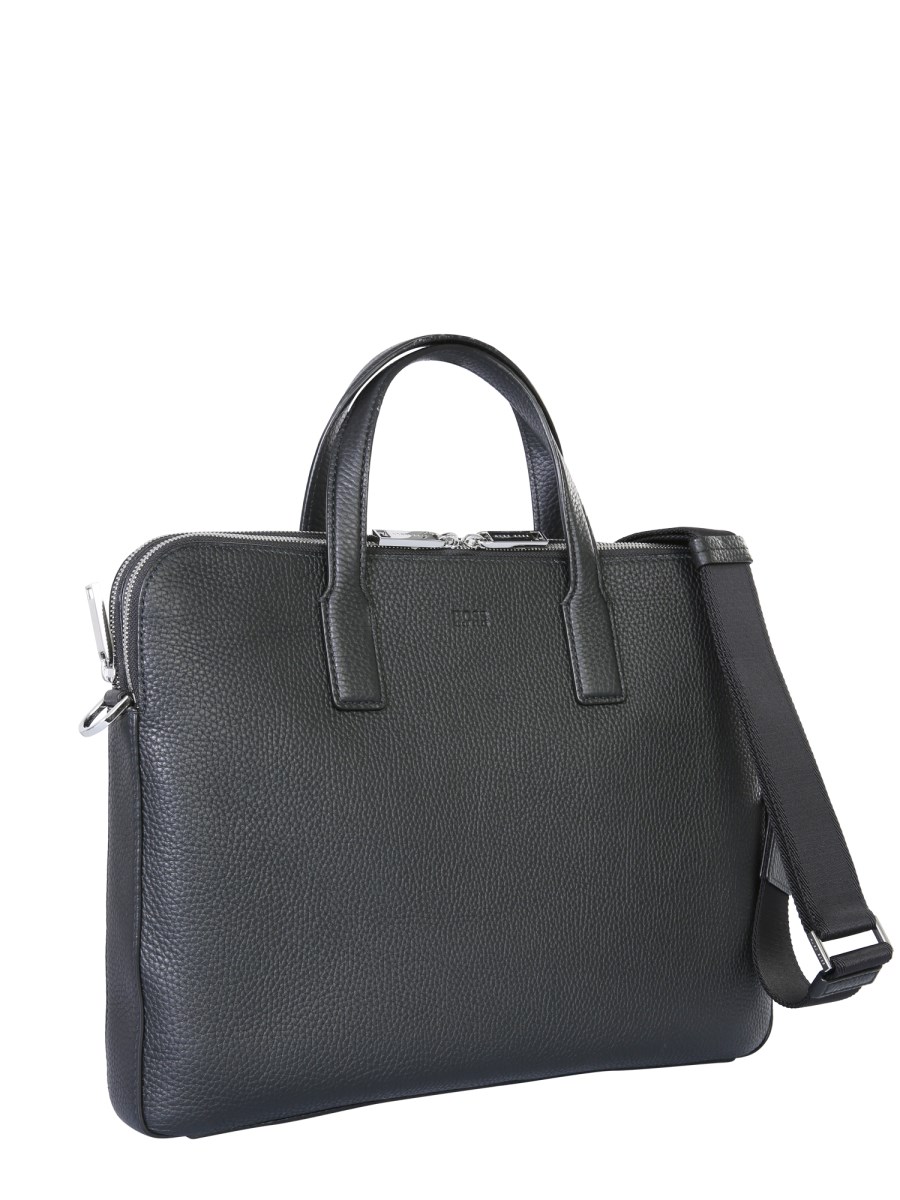 Keep your important documents in place in the Boss Document Holder Bag with Logo. This document holder bag features an adjustable and removable shoulder strap and double rigid leather handle. The relief logo detailing in the front looks exceptional. It has an inner zip pocket. Made with genuine leather, this fully lined bag is durable and lightweight.