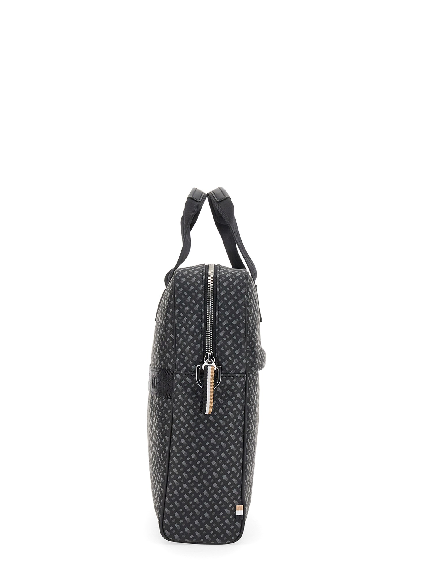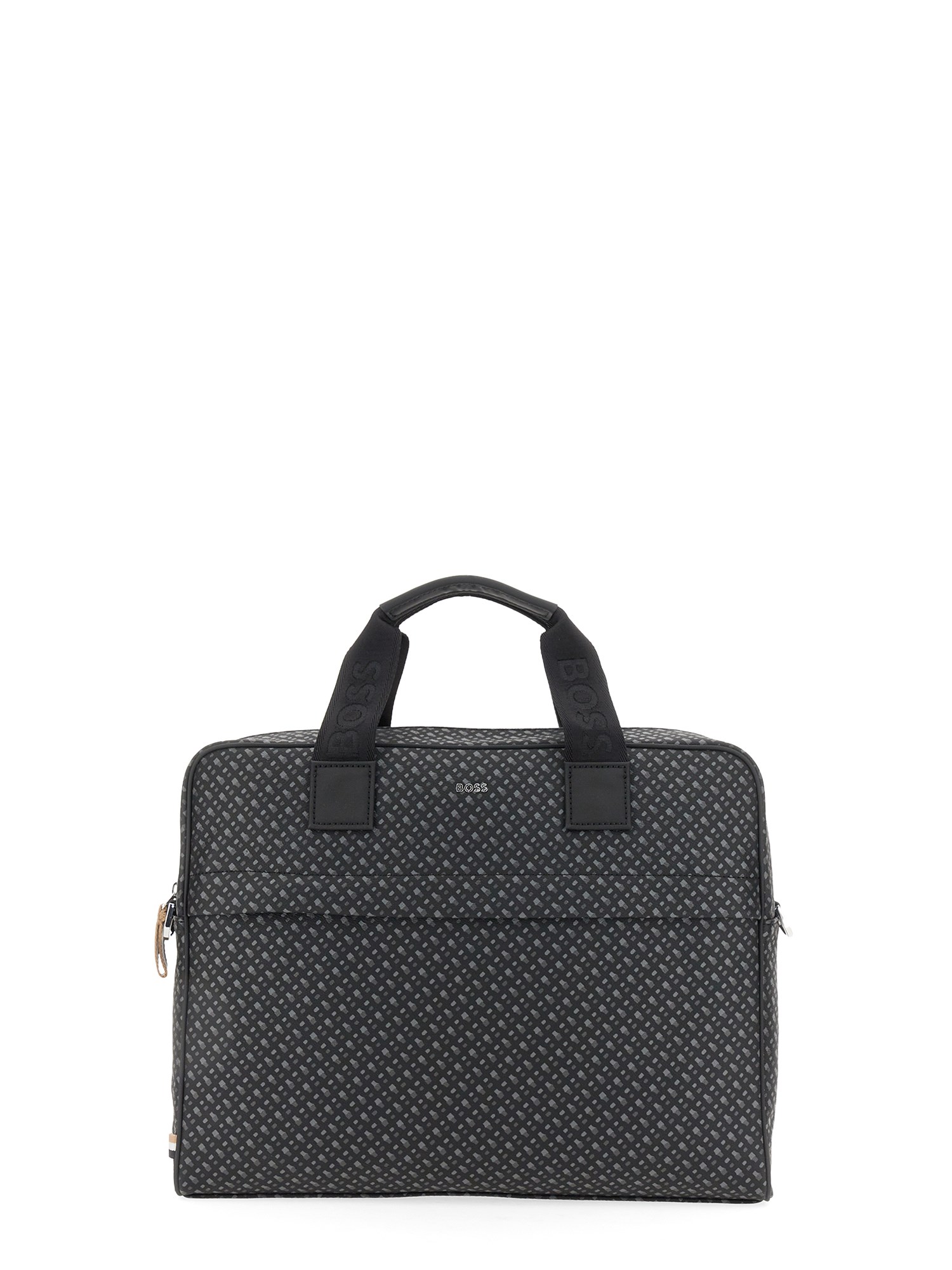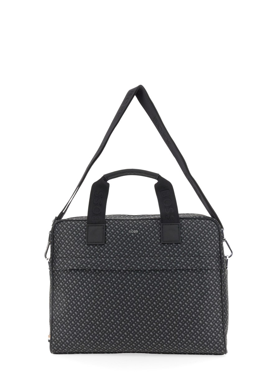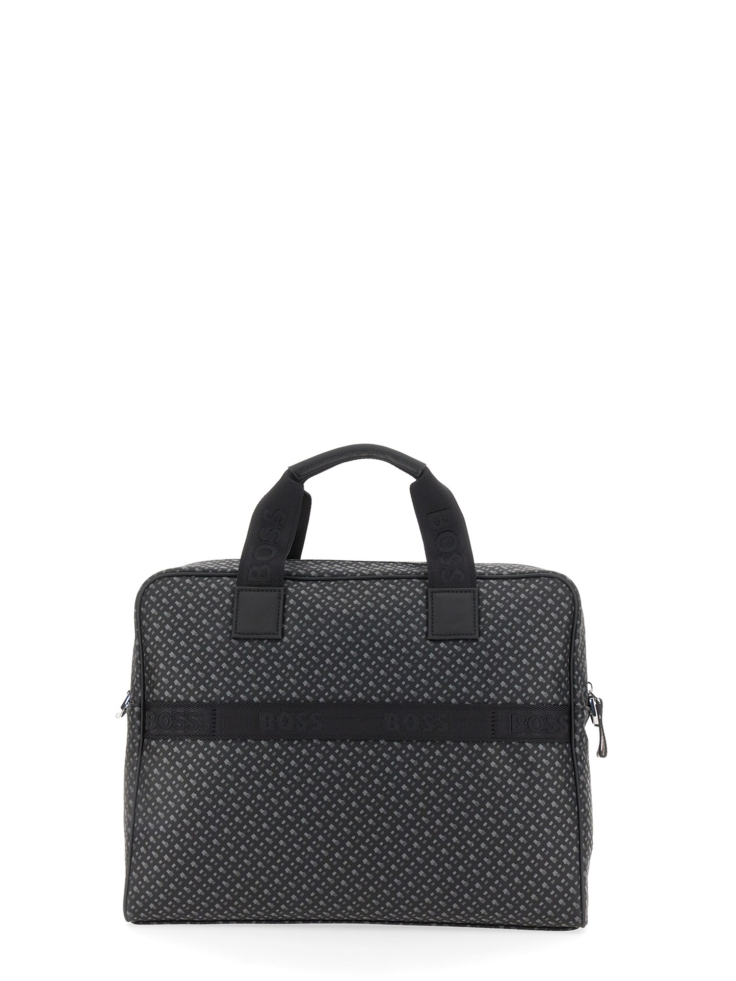 A document bag from Boss is a sturdy, yet lightweight fabric bag that is often used for storing paper documents. A stylish and practical bag for organizing your paperwork and documents. It has an adjustable taped shoulder strap with double handles. It has a zippered closure and is finished with metallic details.