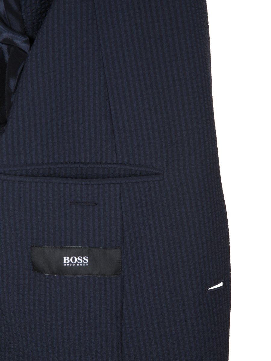 The Boss "Naden" Jacket features a stylish design with mirror revers and two button closure. Perfect to wear for formal occasions, this jacket provides a slim fit. It has two side pockets, a chest pocket and three inner pockets. This semi-lined jacket is made with 100% polyester.