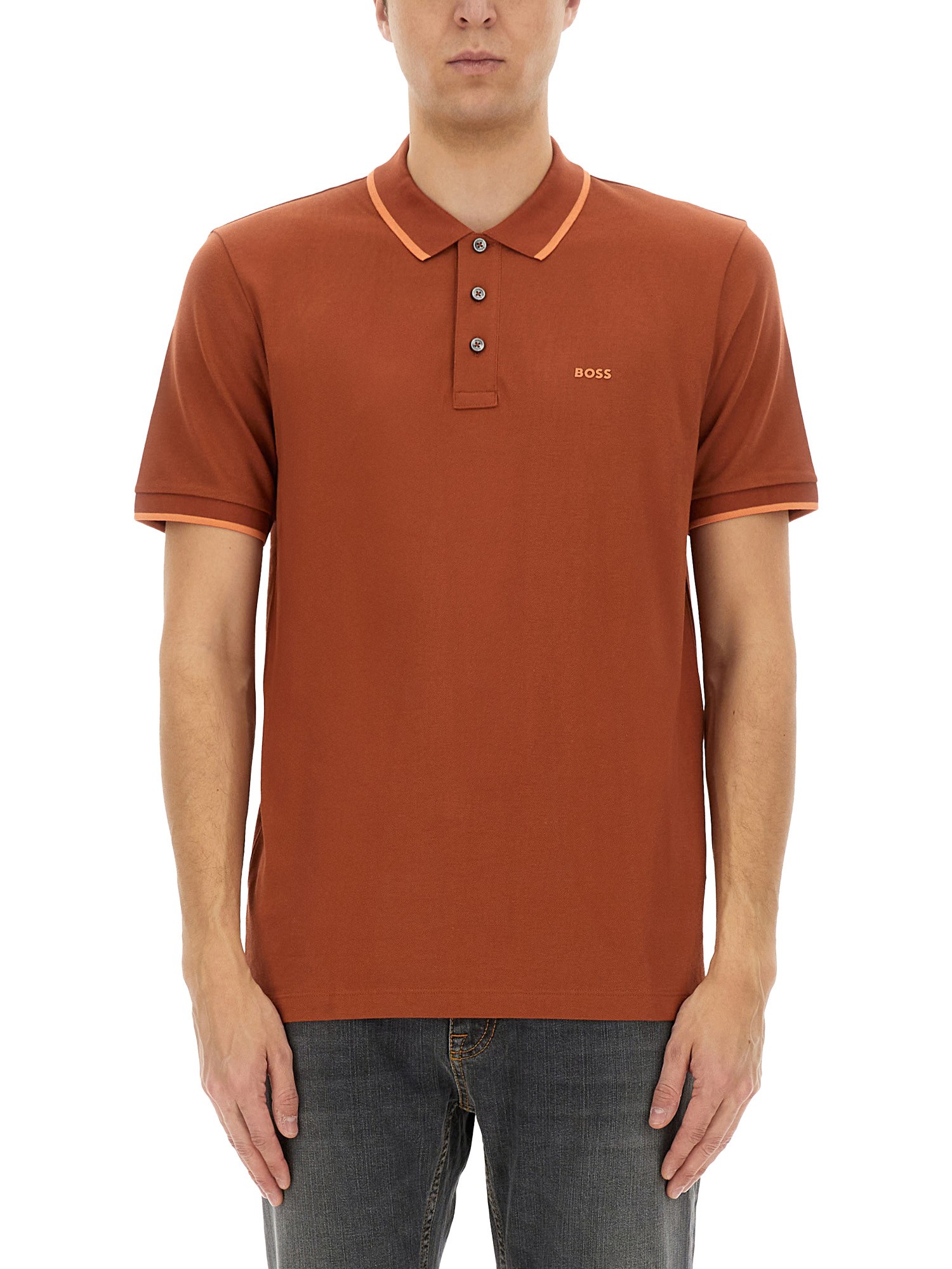 Elevate your wardrobe with the BOSS Cotton Polo, a perfect blend of comfort and sophistication. Crafted from premium cotton, this polo offers a soft touch and breathable fit, making it ideal for both casual outings and smart-casual occasions. The classic design features a refined collar and a tailored silhouette, ensuring you look polished while enjoying all-day comfort. Pair it effortlessly with jeans or chinos for a versatile look that transitions seamlessly from day to night.