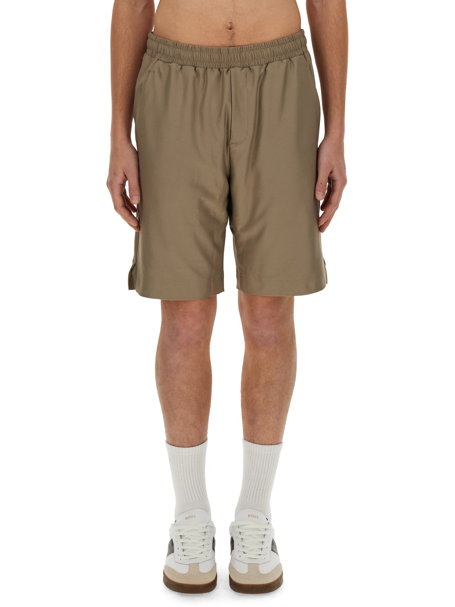 These cotton bermuda shorts from Boss feature an elastic waistband, providing a comfortable and flexible fit. Made from high-quality cotton fabric, these shorts are breathable and perfect for warm weather. The elastic waistband ensures easy on and off, while also allowing for a customizable fit. With their versatile design, these shorts can be dressed up or down for various occasions.