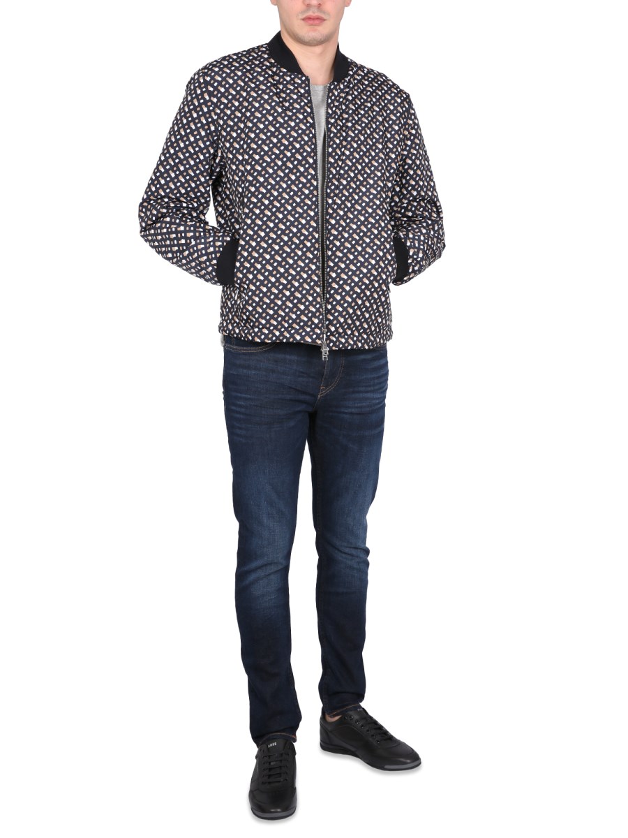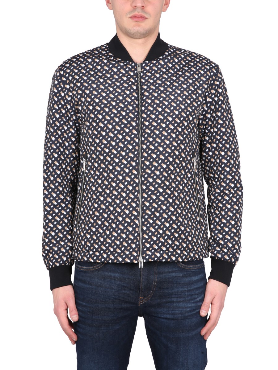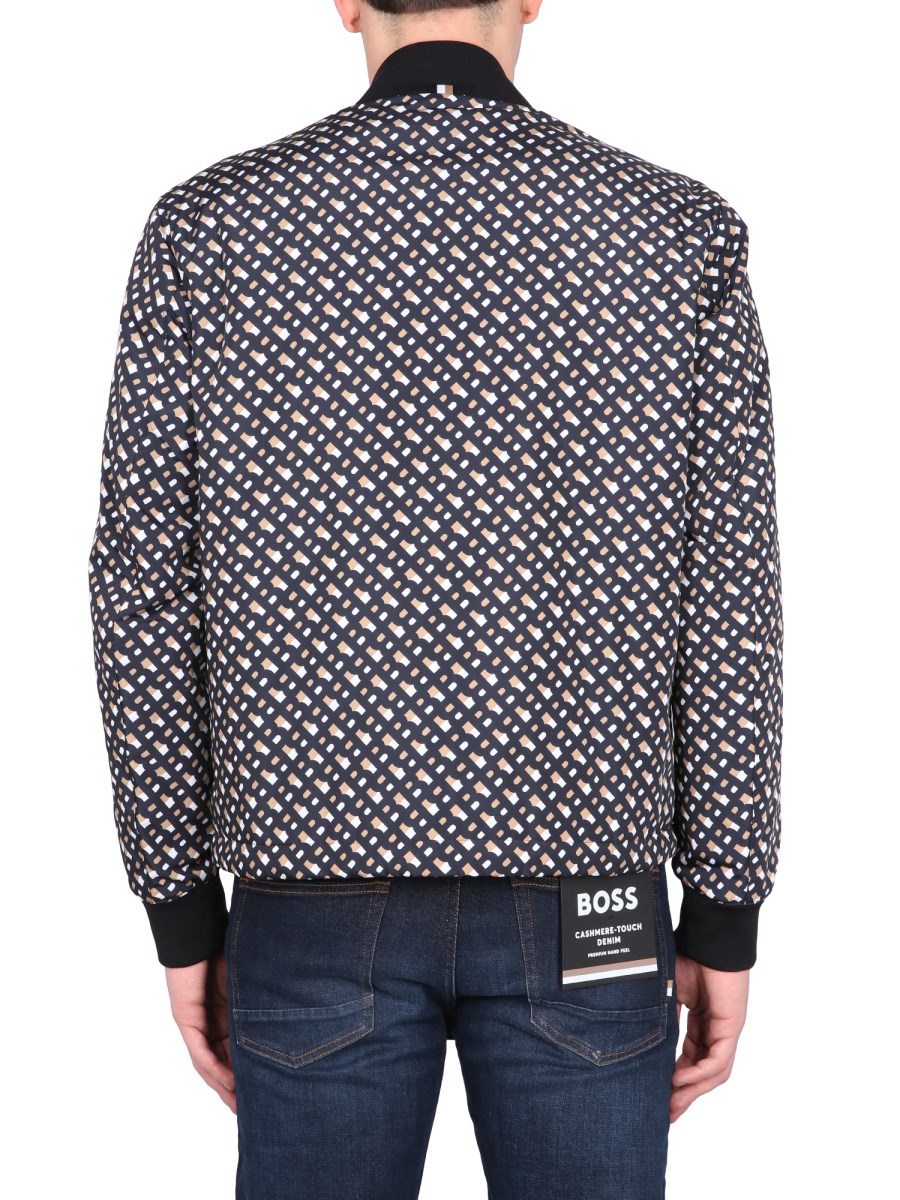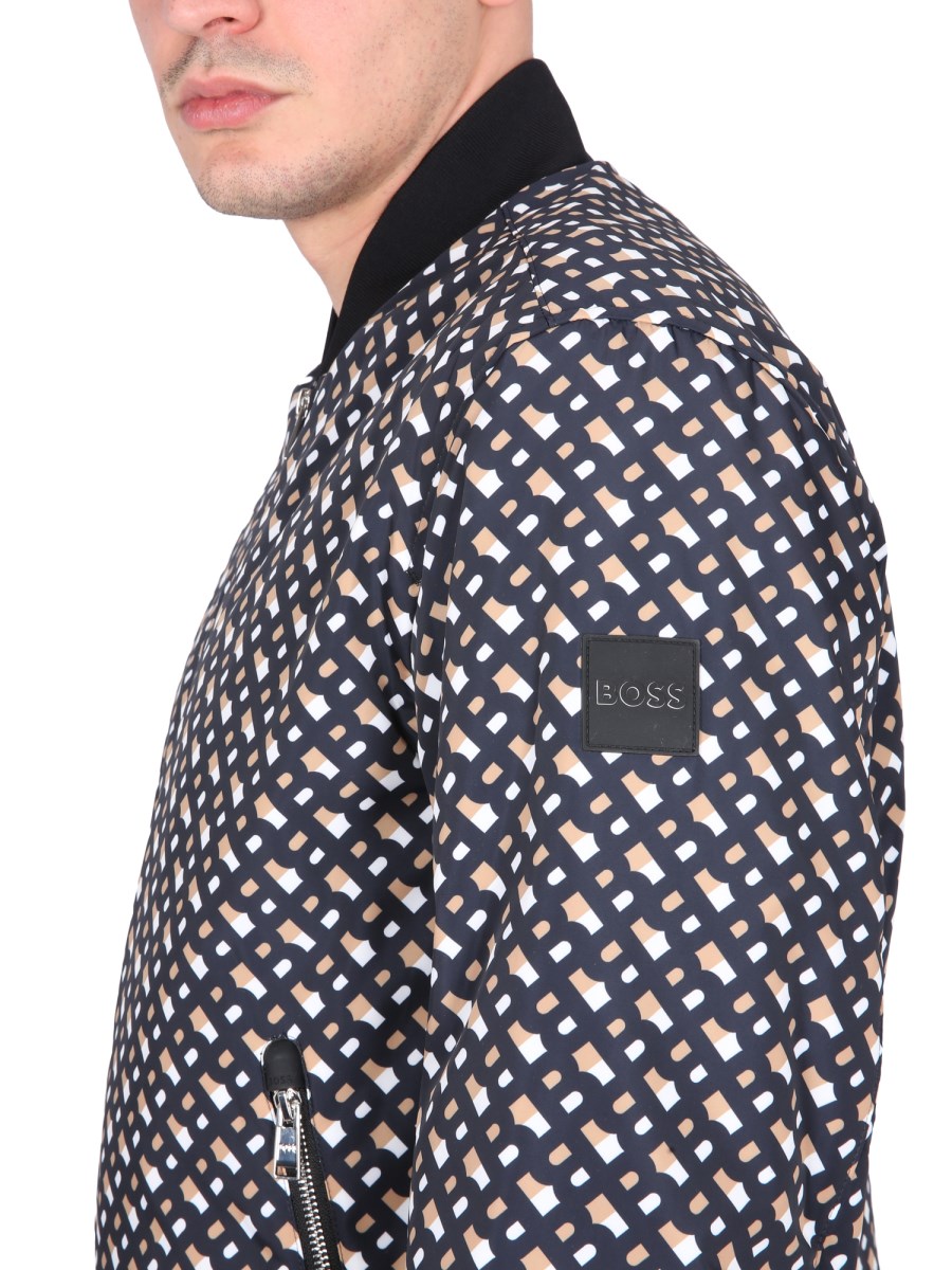 This is the ultimate monogram bomber jacket from Boss, with a lightweight and warm feel. It's got a large logo on the chest and a large zipper, which is perfect for cold weather. It's also super comfortable, and comes in a variety of colours. The bomber jacket is a staple of any wardrobe and a must-have for this season.