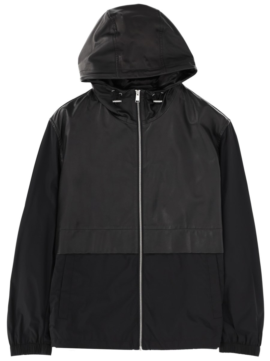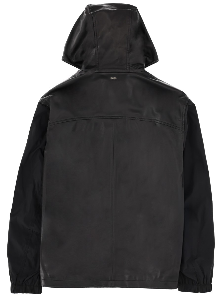 LEATHER BLEND HOODED JACKET