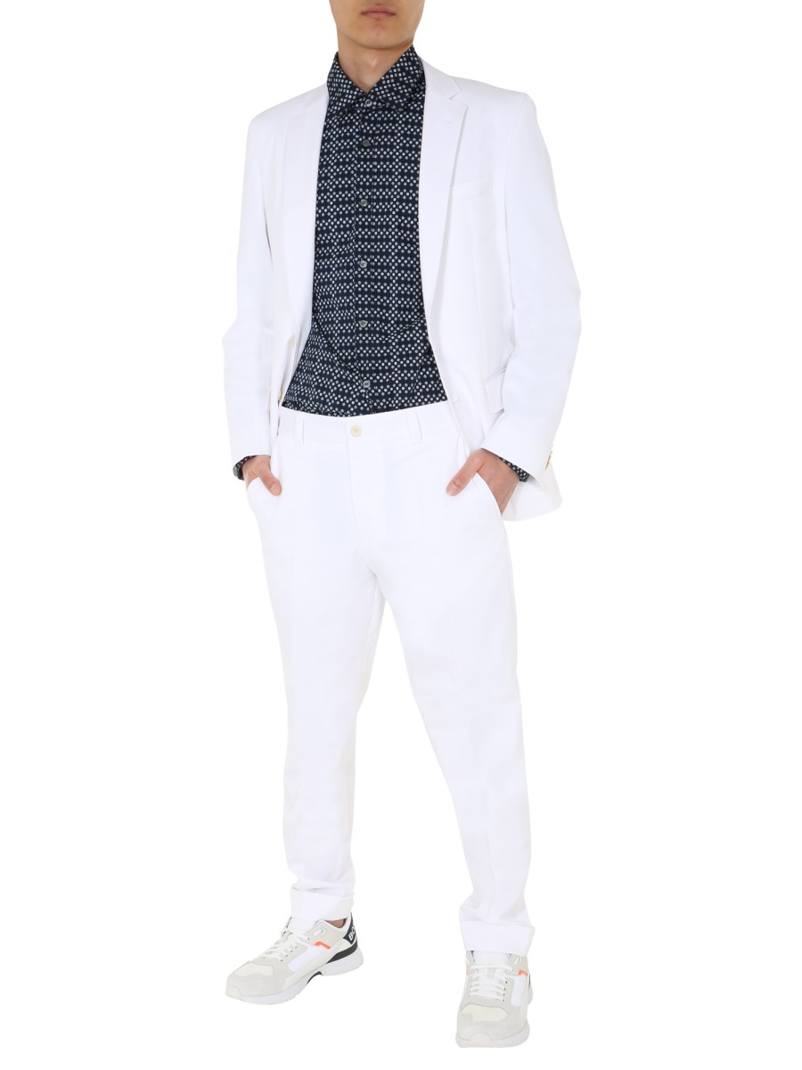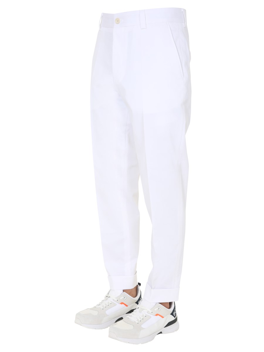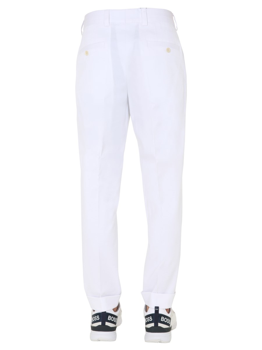 Stylish and comfortable, the Boss "Perin" Pants are an essential addition in your wardrobe. For a secure fit, these pants have a zip and button closure. They are designed with two side and two back pockets. A blend of cotton and elastane is used in the construction of these pants. Wear these pants with a basic T-shirt and shirt.