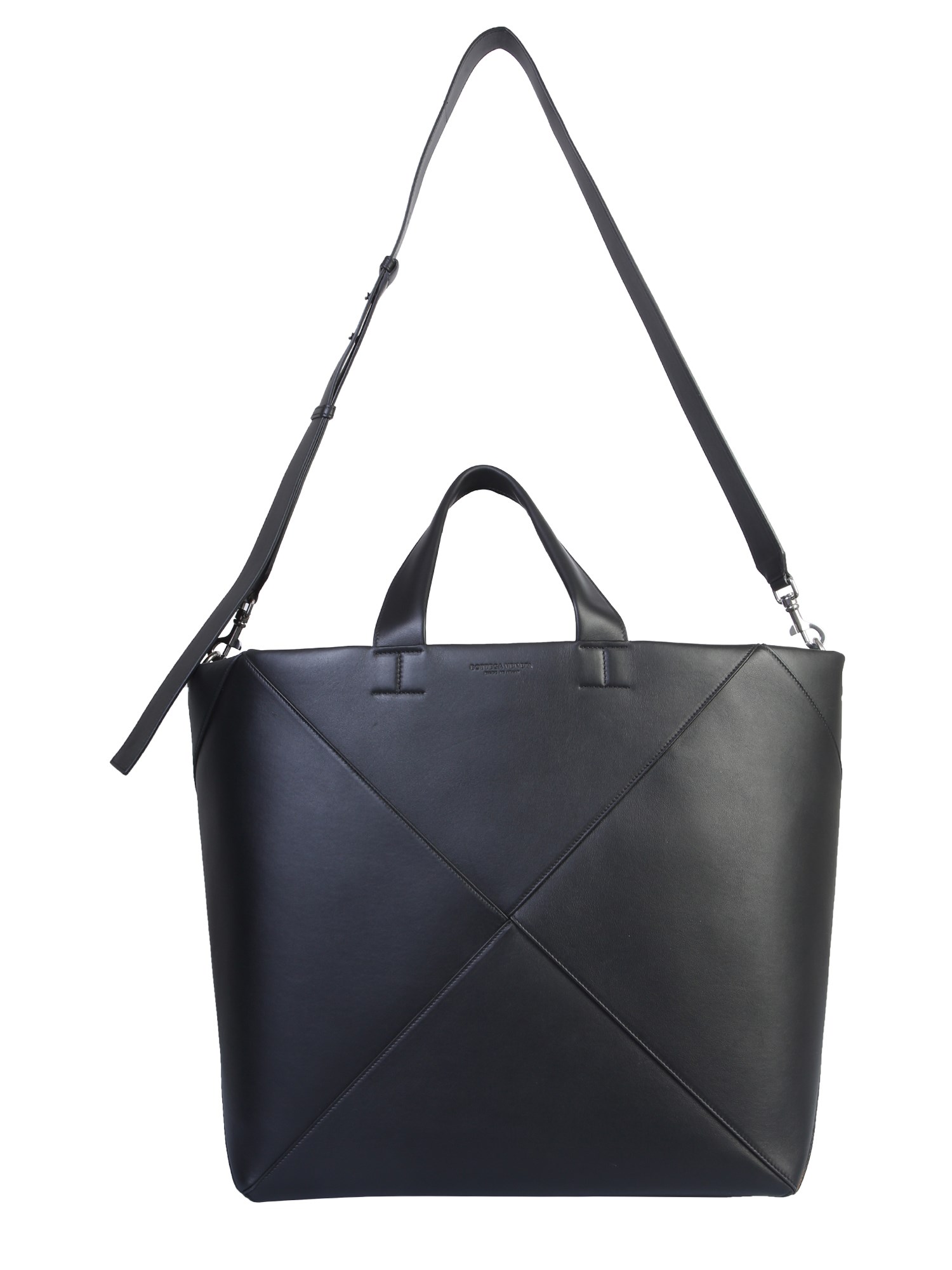 From a shopping spree to regular office days, this versatile large tote bag from Bottega Veneta is your companion for every outing and hangout. The sleek and classy body is made of 100% calf leather for an unmatched look. The large geometric graphic and silver finish accessories apply a smart and sophisticated touch to the look.