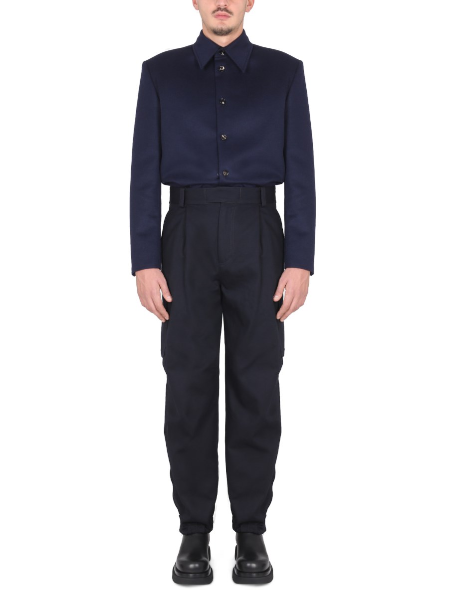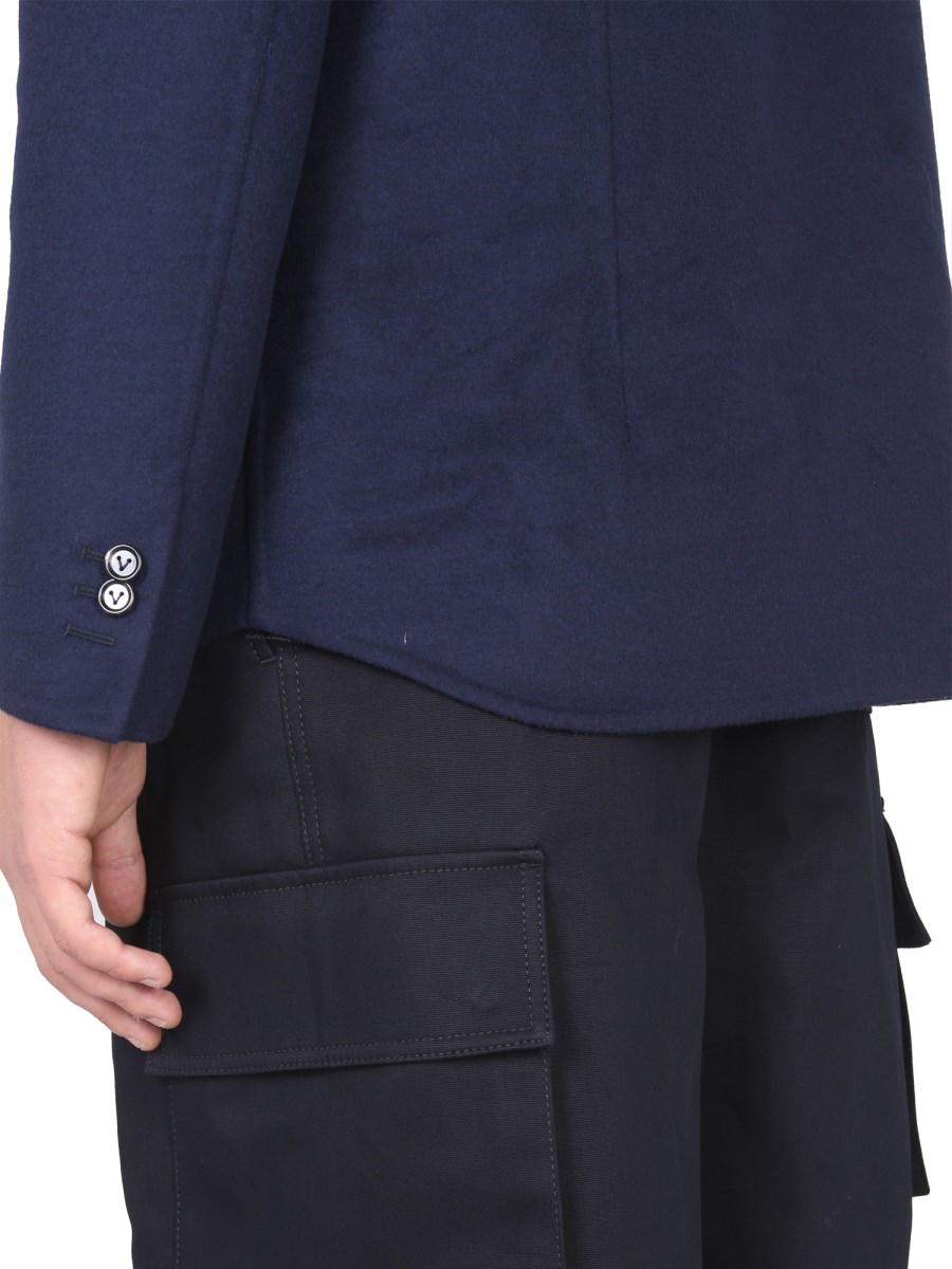 A classic, timeless piece from Bottega Veneta that can be worn for work, or play. The flannel-lined collar is slightly stretchy and soft, and the slightly heavier weight of the fabric is great for cold weather. The button closure is understated and clean. This jacket is great for layering, but is still nice enough to wear on its own.