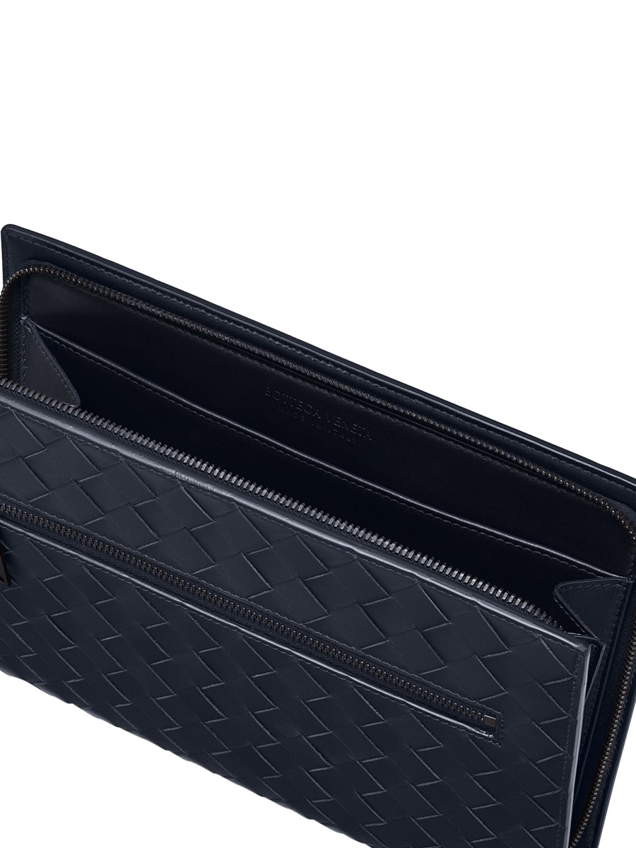 Keep your documents safe and secure in this document holder from Bottega Veneta. It has a zip closure, an inner pocket and six card compartments. The iconic braided pattern is made on a genuine leathersurface that gives a stylish appeal and makes it durable. Its wrist handle is detachable and sturdy enough to be carried easily all day long.