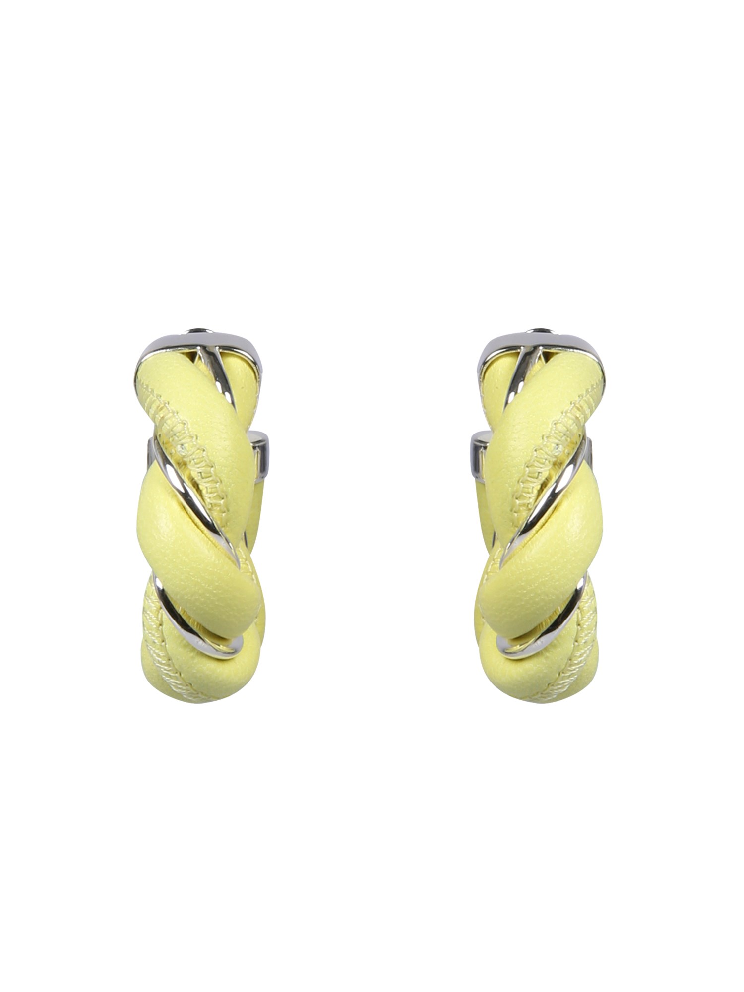 Bottega Veneta's beautiful Braided Hoop Earrings are made to last. These timeless earrings are made in Italy from a combination of lamb leather and silver material and feature a back closure. The Nappa woven and sterling silver structure adds to the charm of these 4 cm long earrings. Wear this lovely earring set with any outfit for a gleaming, eye-catching effect.
