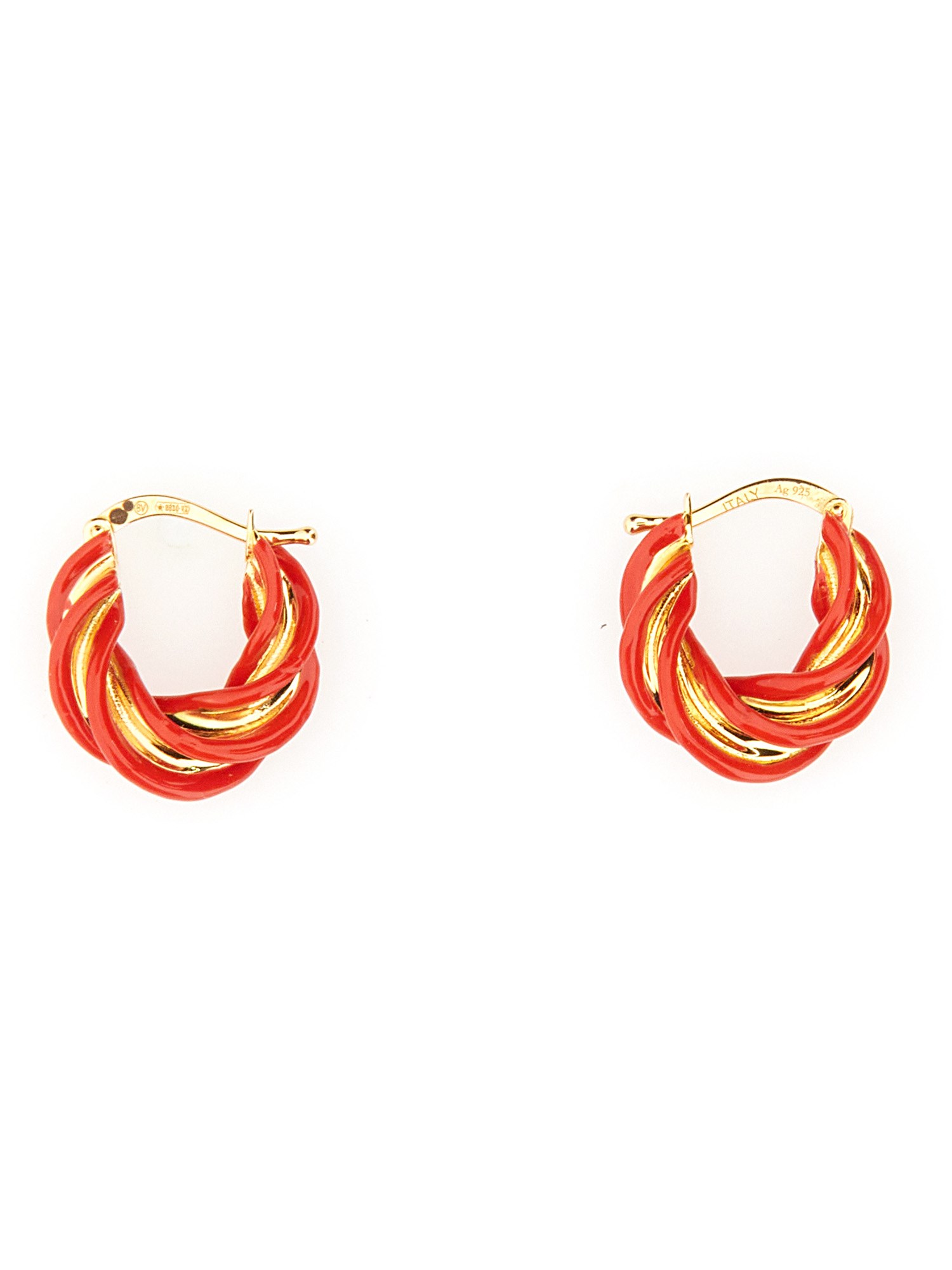 - 18K GOLD FINISH ENAMELED TWISTED HOOP EARRINGS- OUTER DIAMENTER: 16.3 MM- MATERIALS: ENAMEL, STERLING SILVER WITH 18K GOLD FINISH- MADE IN ITALY