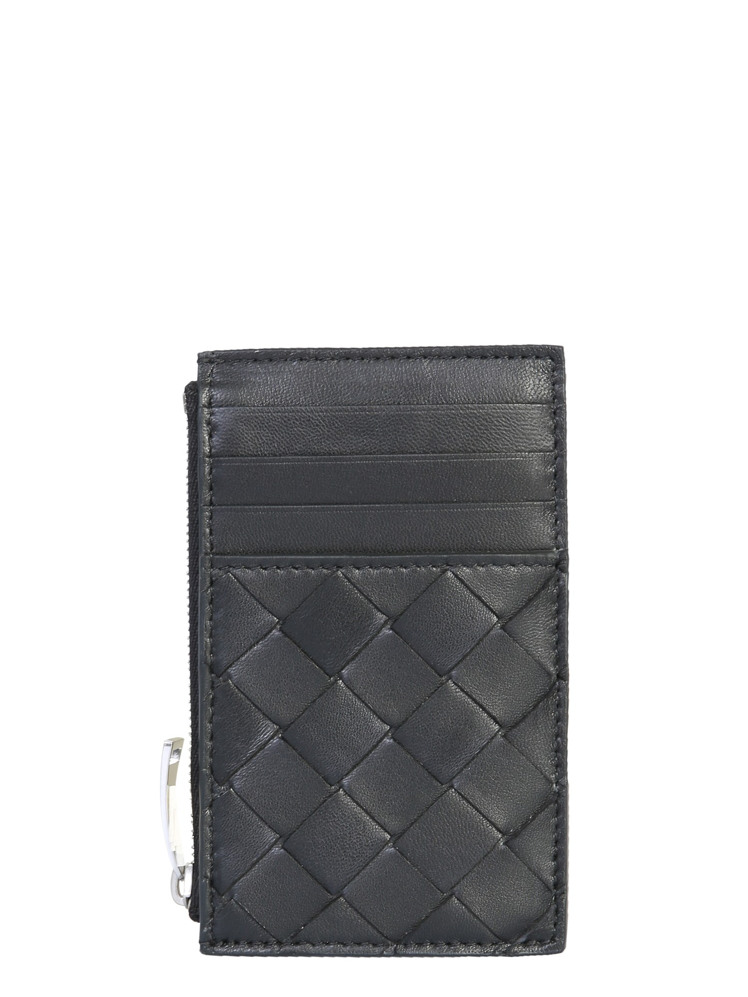 Never be disorganised with your documents, credit or debit cards by adding this woven Nappa leather cardholder from Bottega Veneta to your collection. It has four card compartments and one pocket with button closure. Plus, with a nice leather exterior presented in a basket weave pattern, it is an attractive accessory.