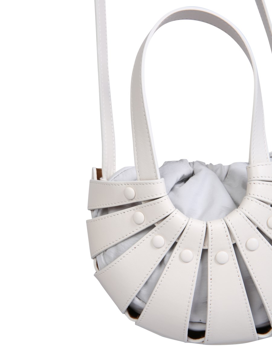This Bottega Veneta leather French calfskin bag is an absolute showstopper. It is soft and supple and is trimmed with gold-tone hardware. The bag measures 14 cm x 22 cm x 10 cm and is made from 50% calf leather and 50% polyamide, featuring a leather lace closure, paper nylon clutch with drawstring, and rivet detail.