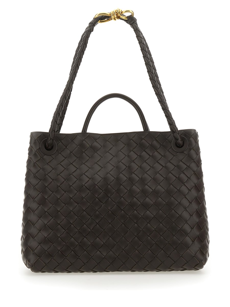 Introduced in Matthieu Blazy’s Summer 23 collection, Andiamo is a new expression of the signature Intrecciato weave realised by the expert craftsmanship of artisans in the house’s atelier. Its name, Andiamo, “Let’s go” in Italian, embodies the spirit of the bag, a tribute to going places and the concept of craft in motion. The bag features a timeless Intrecciato silhouette woven by hand. A metal knot adorns and fastens its sliding braided straps, allowing it to be adjusted over the shoulder or across the body, giving the bag a soft tapered volume.