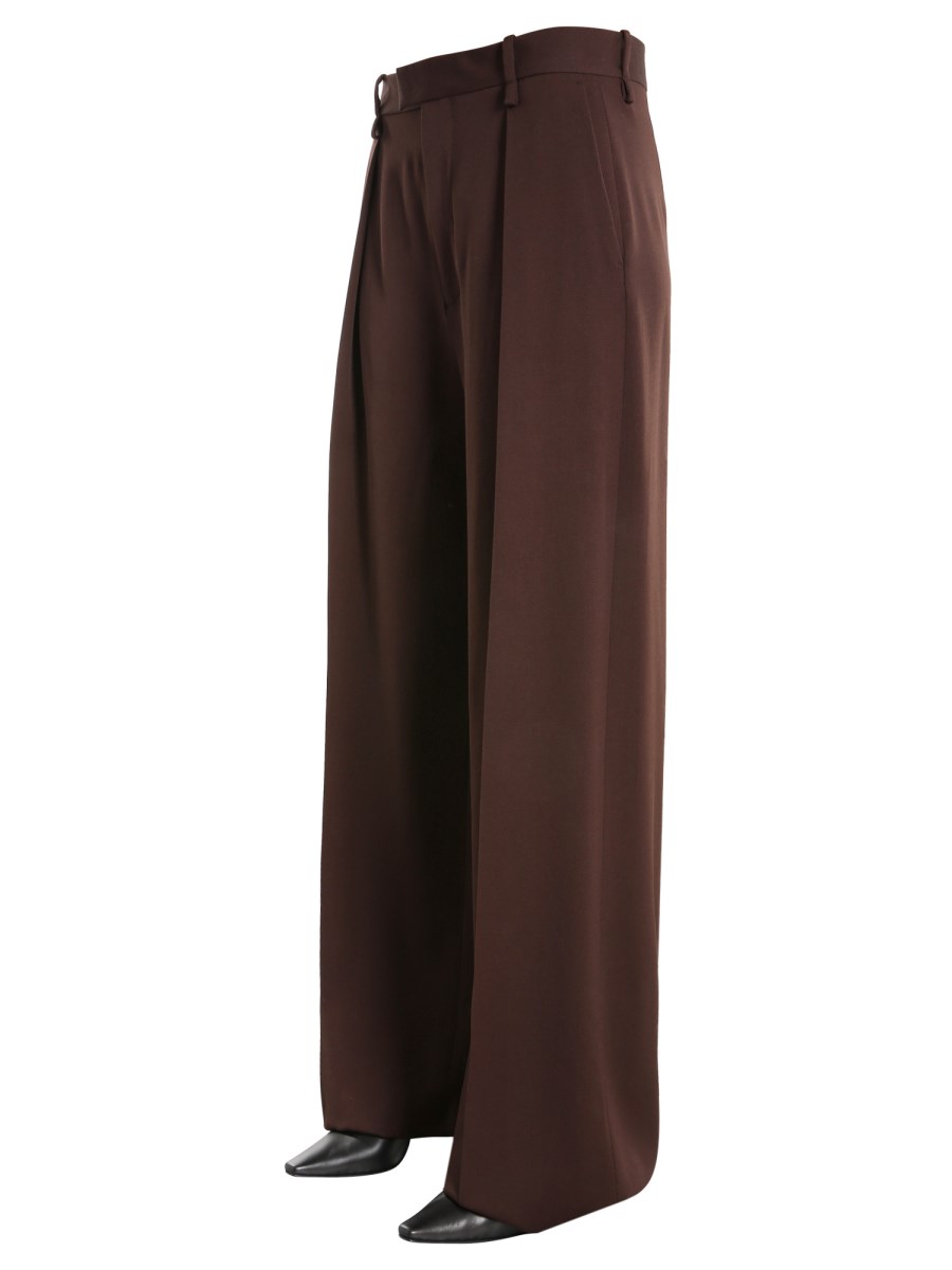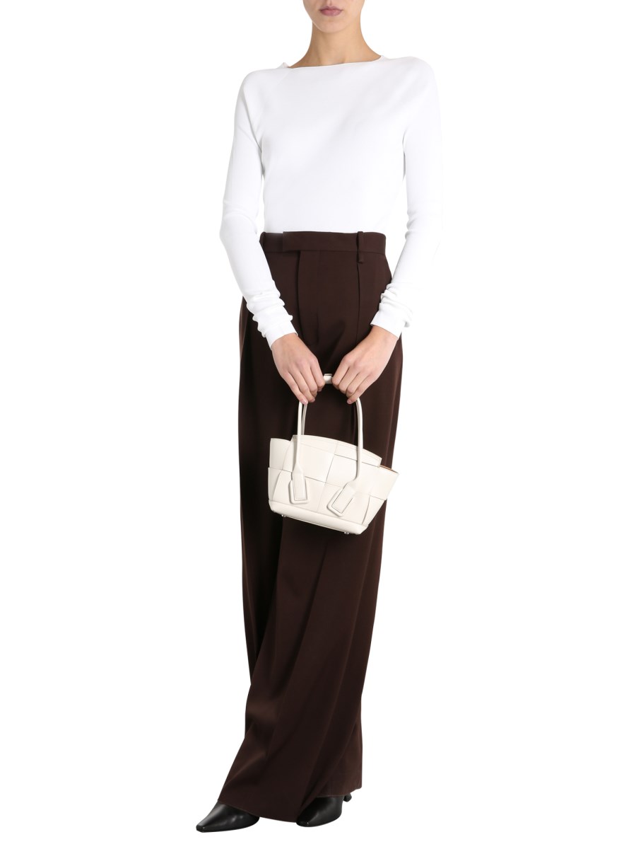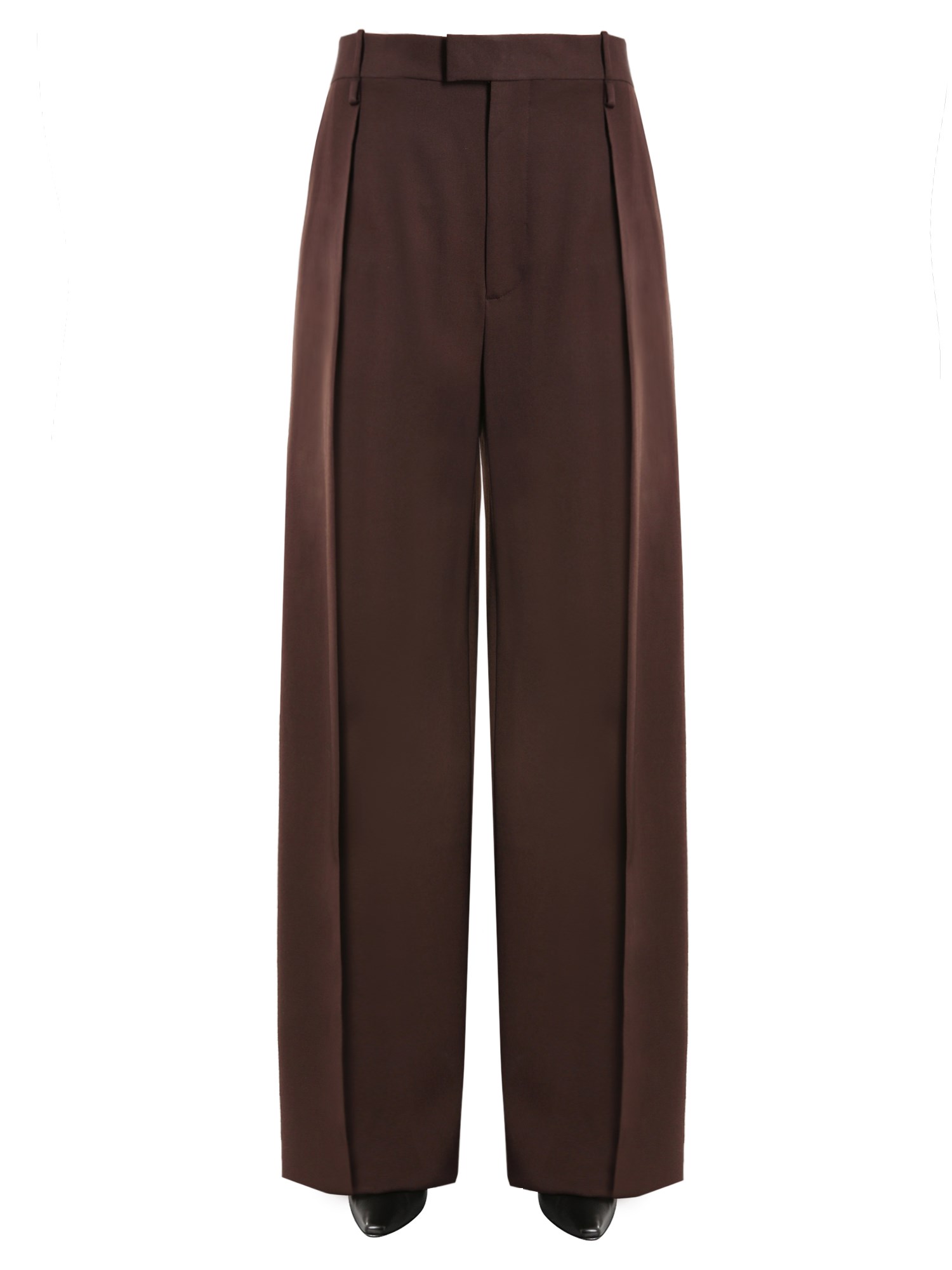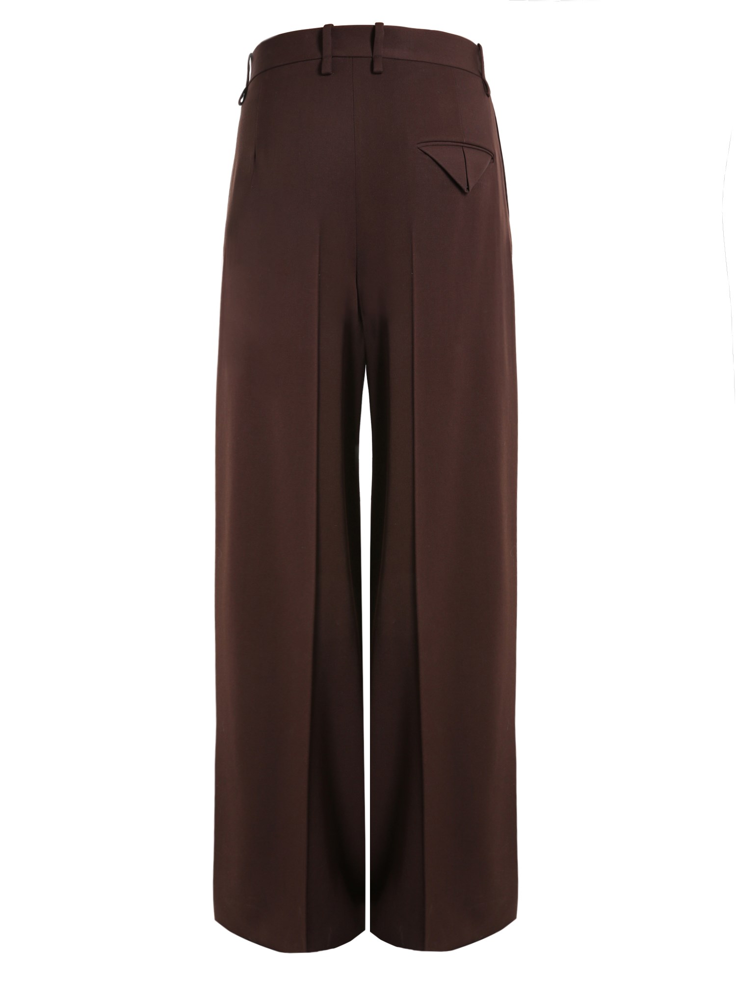 Complete an ensemble in the classiest way with these wide wool pants from Bottega Veneta. They have a flat assembly running down comfortably from your waist to below ankle. The zip and hook closure keeps the waist in place throughout the day. These pants look best paired up with a pretty lace blouse.