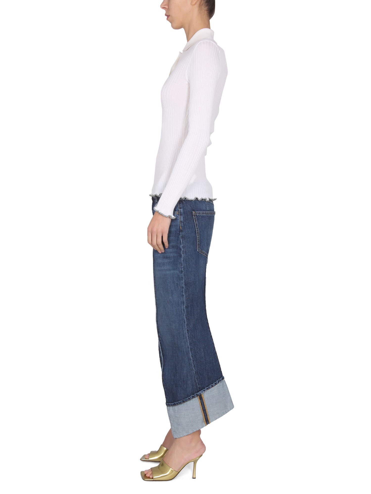 - BUTTON AND ZIPPER CLOSURE- FIVE POCKETS- BELT LOOPS AT WAIST- 100% COTTON- MADE IN ITALY- THE MODEL IS 180 CM TALL AND WEARS SIZE 38 IT