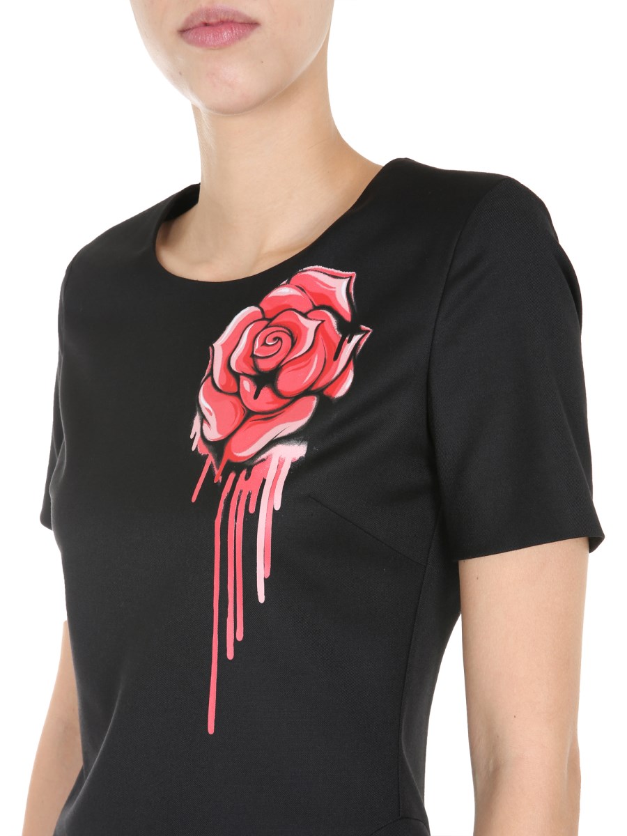 Chic and stylish, the BoutiqueMoschinodress has an exquisite dripping effect print detailing on the front. It has a round neck and short sleeves and is very comfortable to wear. Featuring an invisible zip closure at the back, it comes with a flared bottom and unlined inner. This pretty dress is made of a blend of polyester and viscose. Gear it up with casual shoes to create a stunning ensemble.