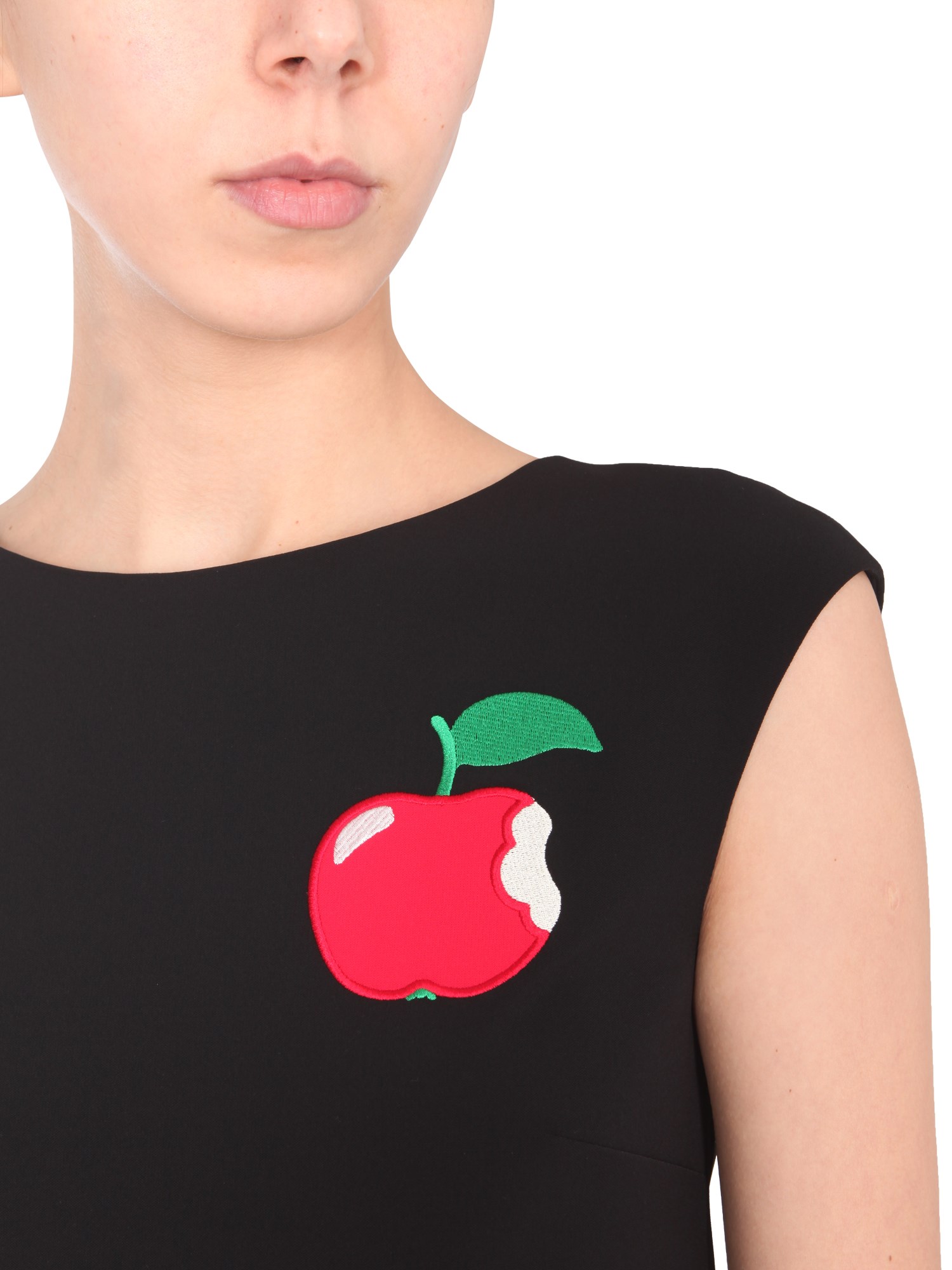 This delicate, sleeveless dress by Boutique Moschino is perfect for any occasion. The intricate, hand-sewn apple inlay is set against a lightweight, cotton fabric. The dress is made from 90% polyester and 10% elastane. This dress is perfect for spring and summer, as it is made of a breathable fabric that will keep you cool and comfortable.
