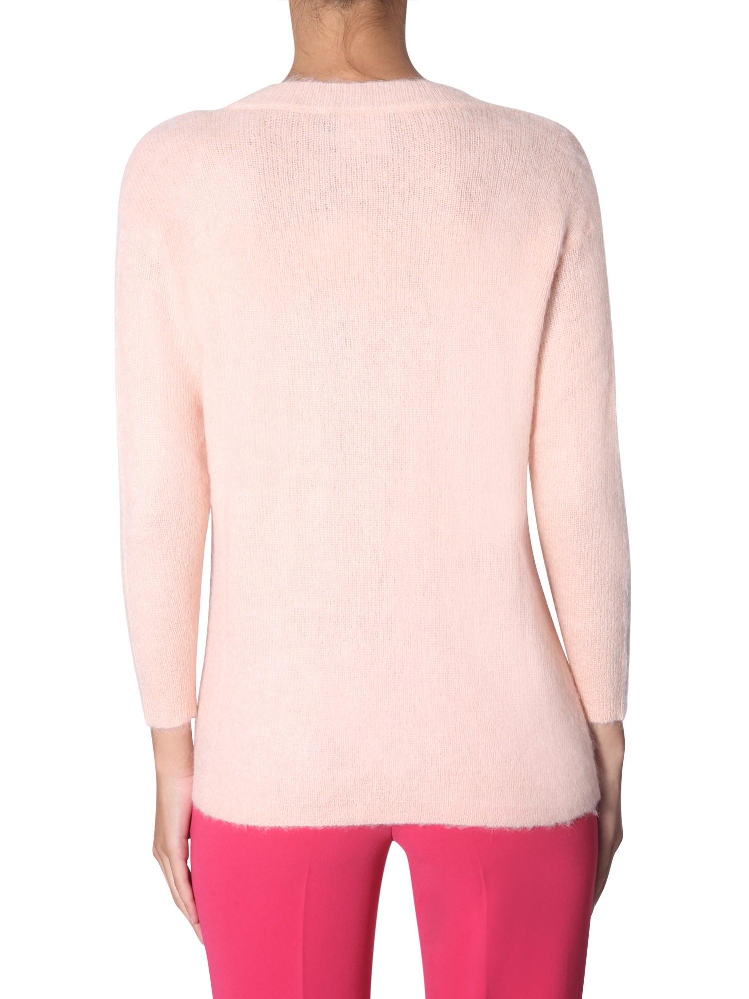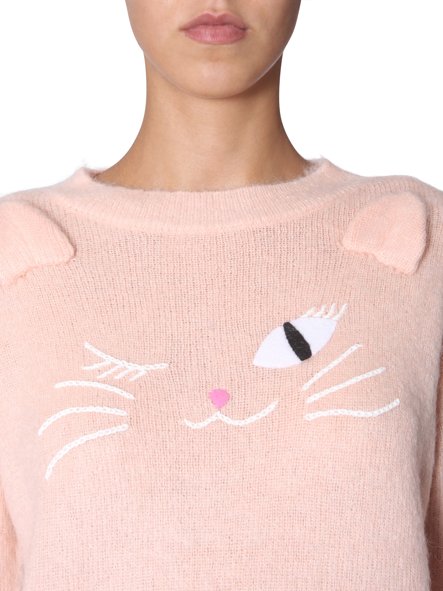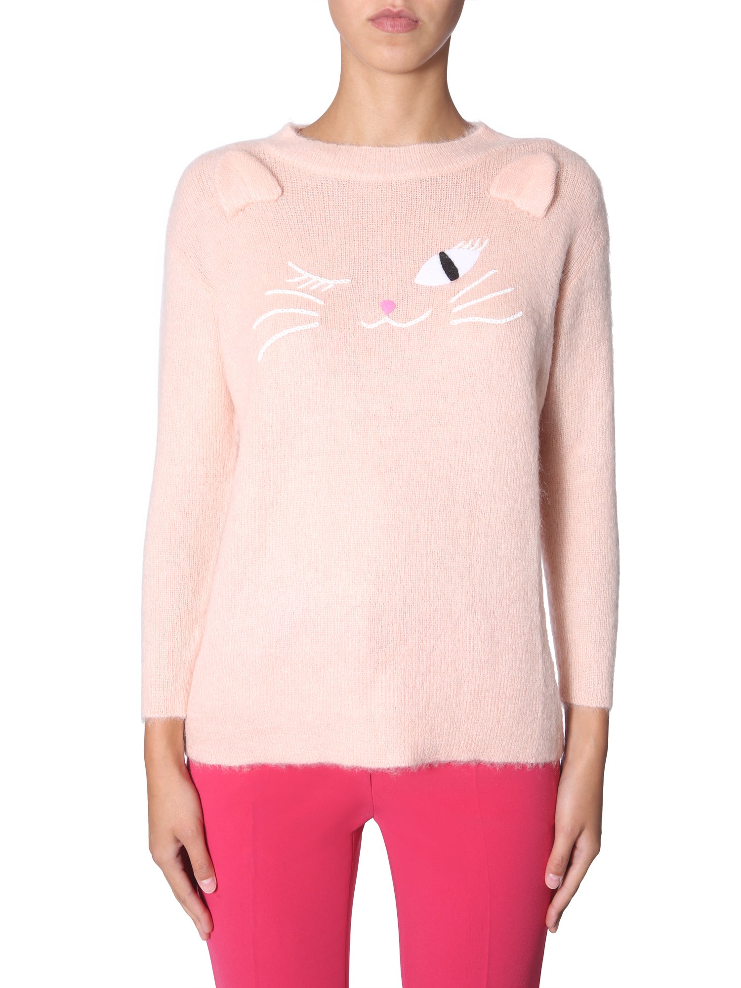 This embroidered sweater from Boutique Moschino is the best pick to upgrade your winter wardrobe. Its plush surface is made of acrylic, mohair and polyamide for a smooth and soft texture. The sweater is adorned with a trendy cat print for a cool and distinct appeal. Just combine it with a black pant for a complete look