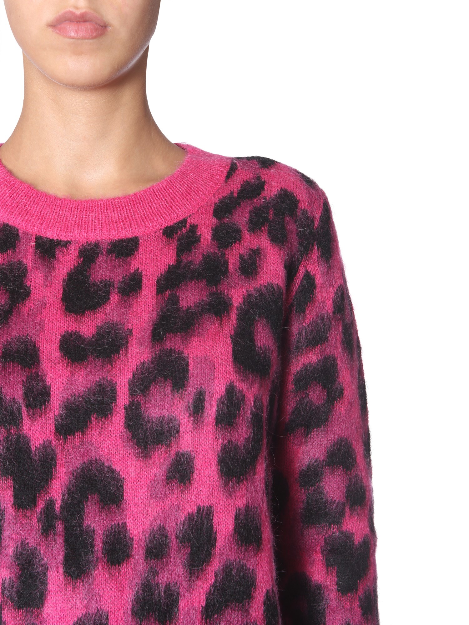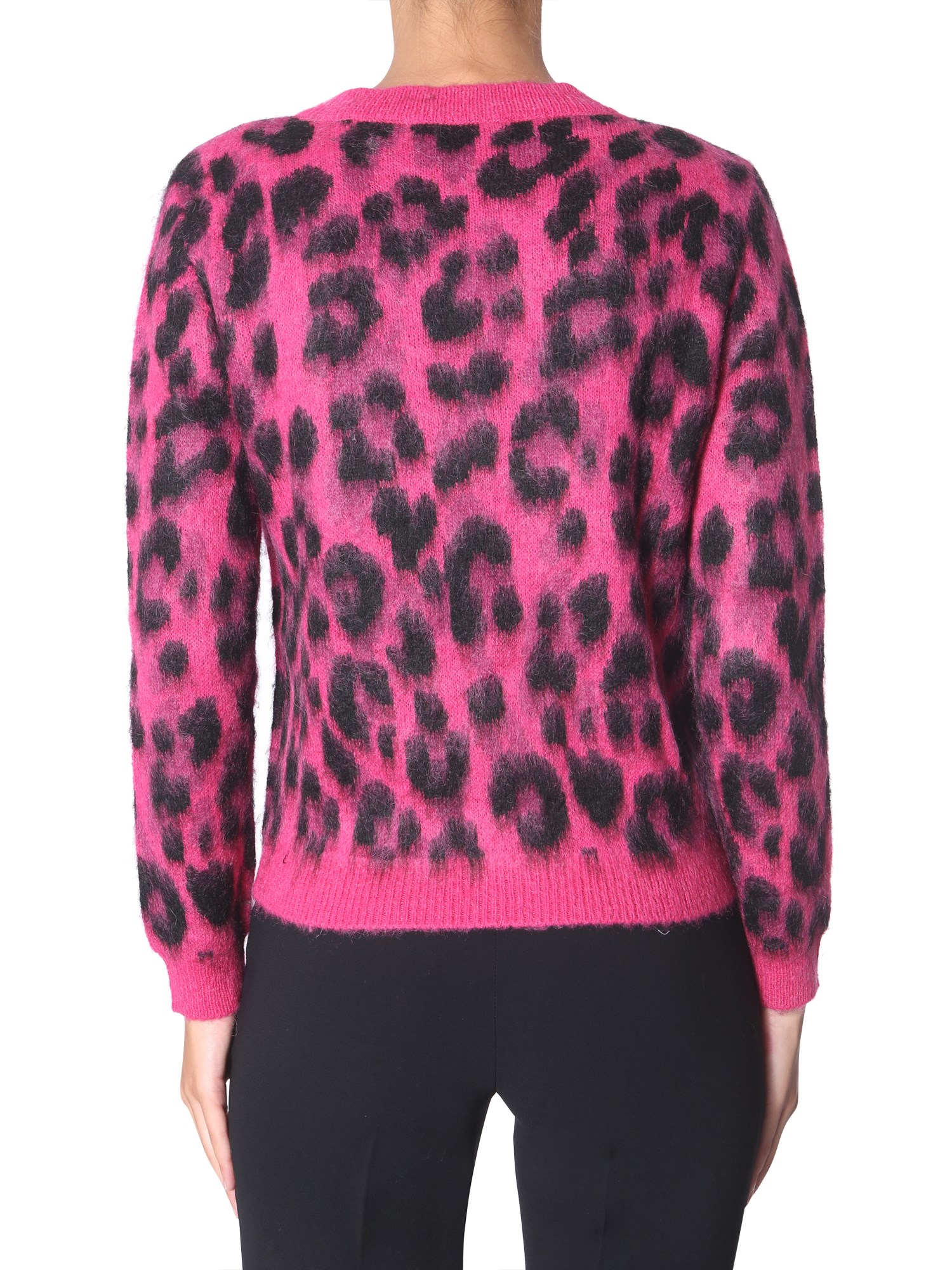 If you keep a love for animal prints, then go for this mohair cardigan from Boutique Moschino. This vibrant and relaxed-fit cardigan gives you an amazing styling experience. The acrylic, mohair and polyamide blend gives strength and durability to it. For a snug fit, this sweater has a crew neck and long sleeves.