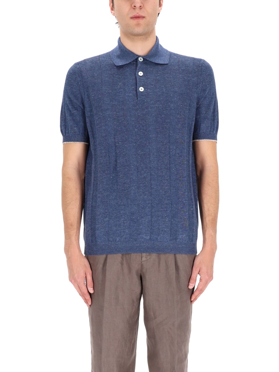LINEN AND COTTON KNIT POLO SHIRT