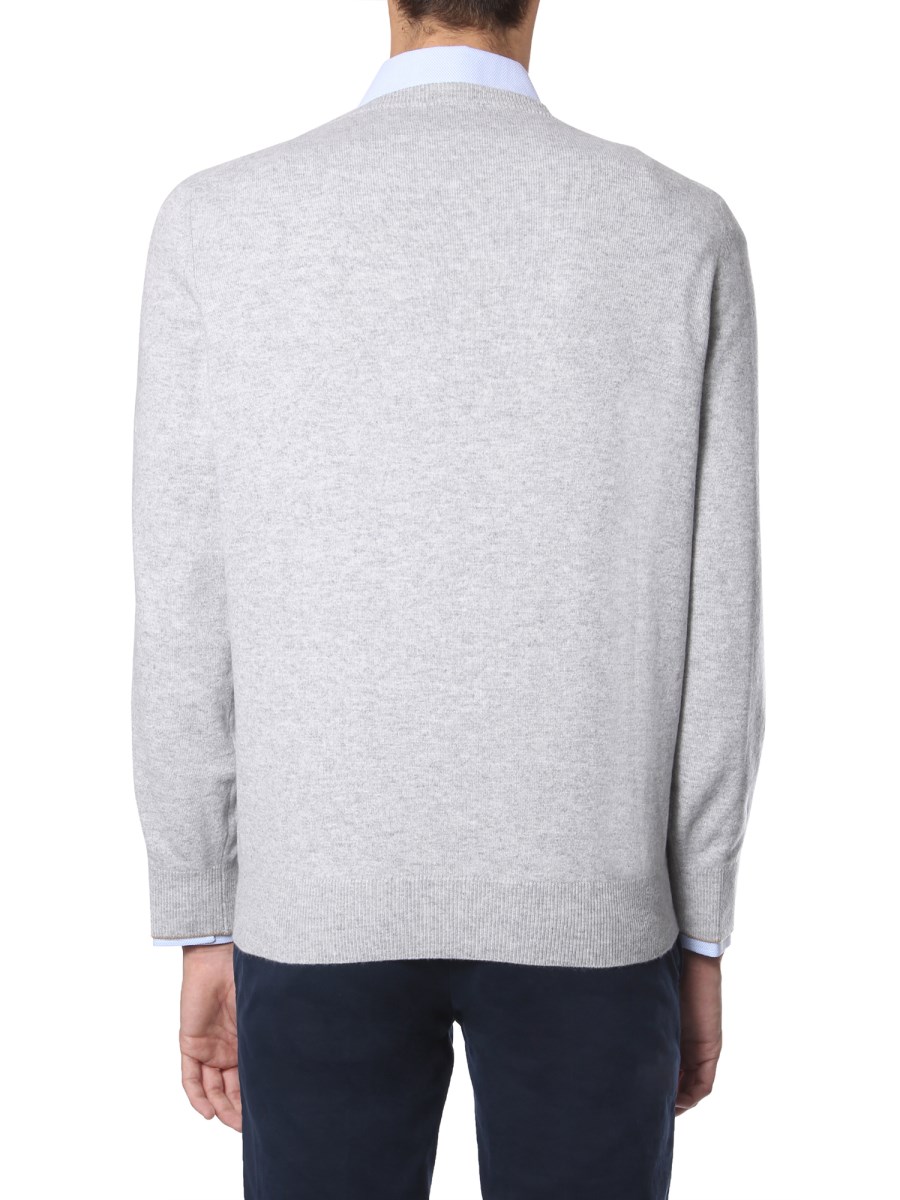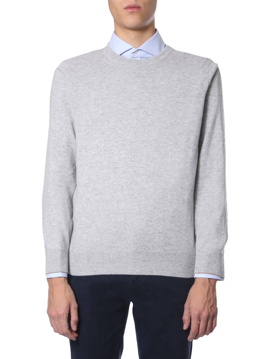 This crew neck sweater brought to you by Brunello Cucinelli is designed to be your go-to pick for outing, be it casual or official. It is made of 100% cashmere that feels soft against the skin. It has a plain exterior that never fails to give a smart look. Layer it over a shirt and pants for a proper formal look.