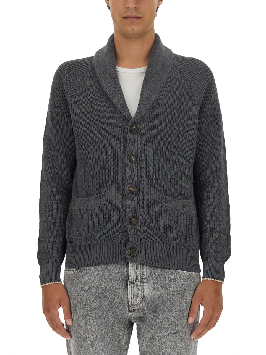 Presenting Brunello Cucinelli's V-neck cotton cardigan, the perfect cosy companion. It's simple to put on and take off thanks to the front button closure. It's ideal for chilly days when you want to feel comfortable and fashionable because it's made of soft cotton. Prepare to curl up in style!