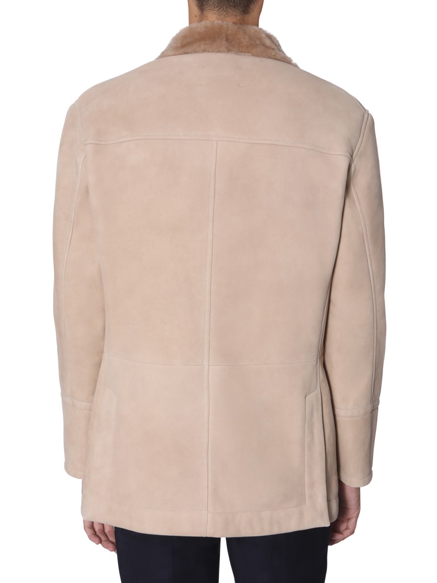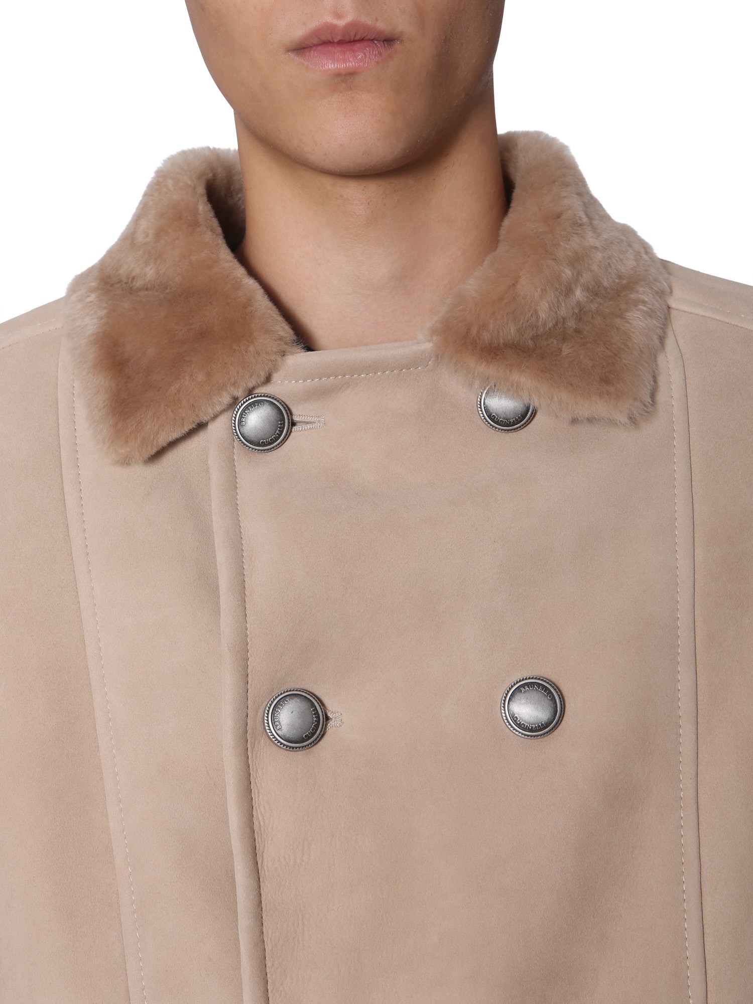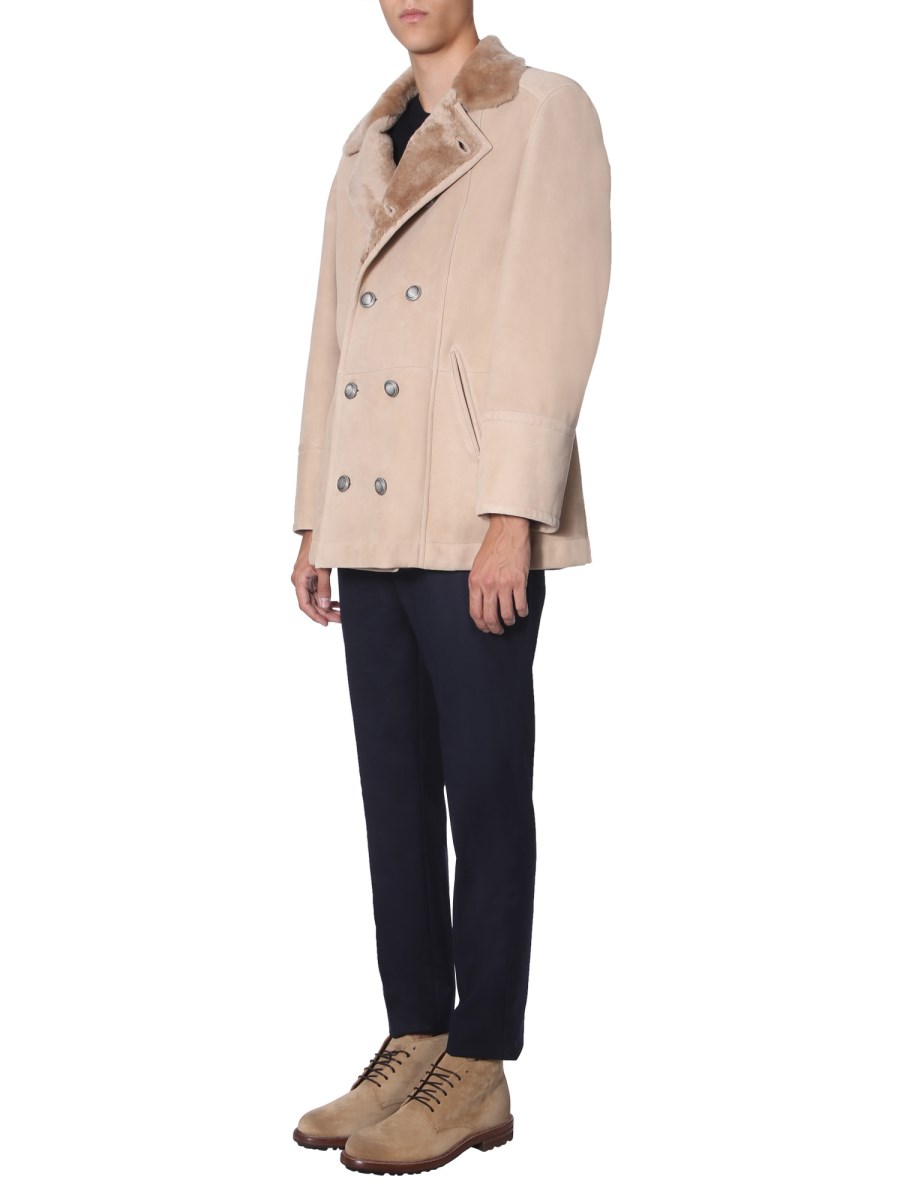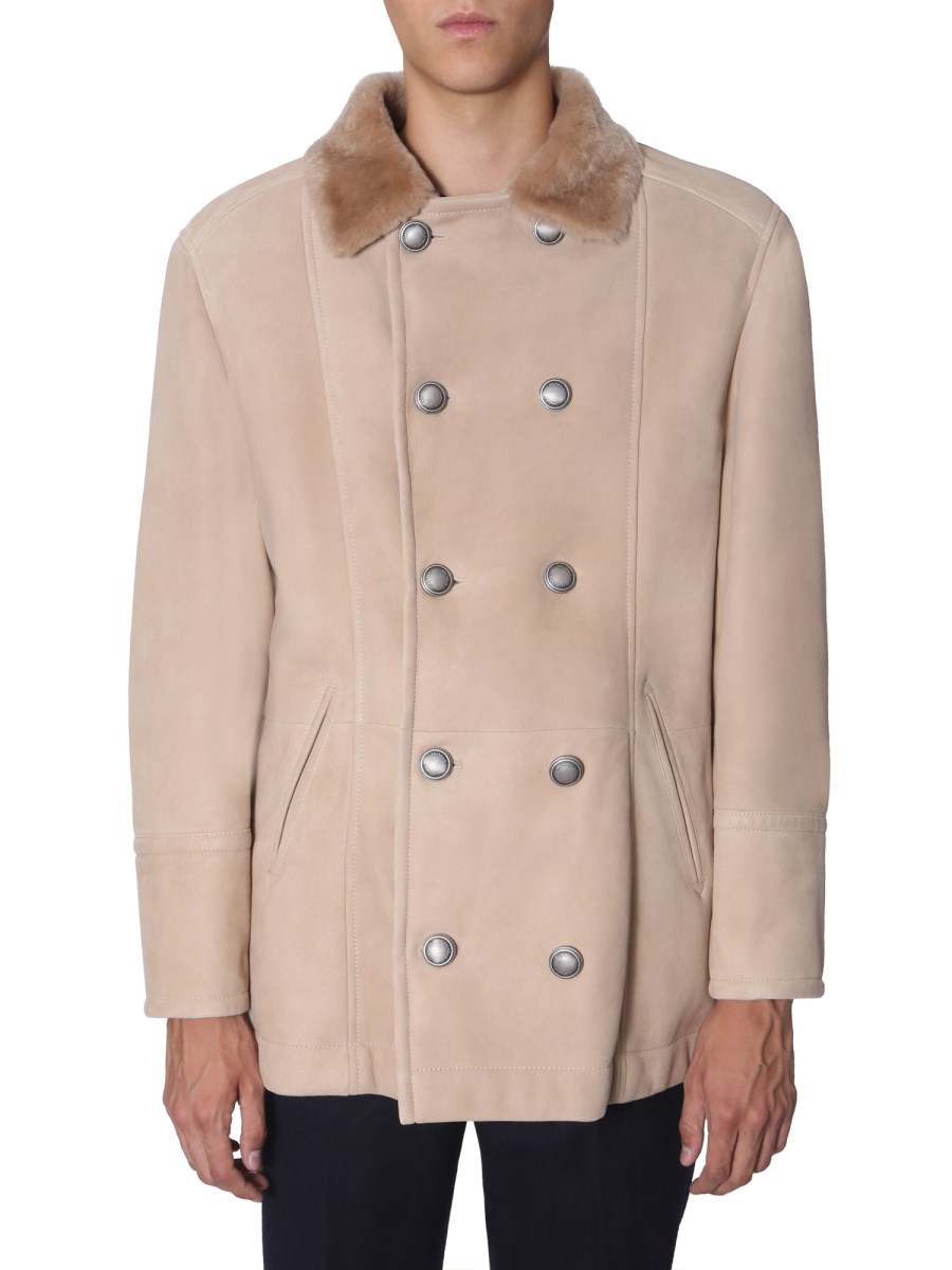 The Brunello Cucinelli double-breasted caban has the perfect balance of warmth and comfort. The two side pockets offer space tocarry small things such as phone and keys along while simple exterior adds to the attractiveness of this coat. Wear it with a pair of jeans and you are good to go.