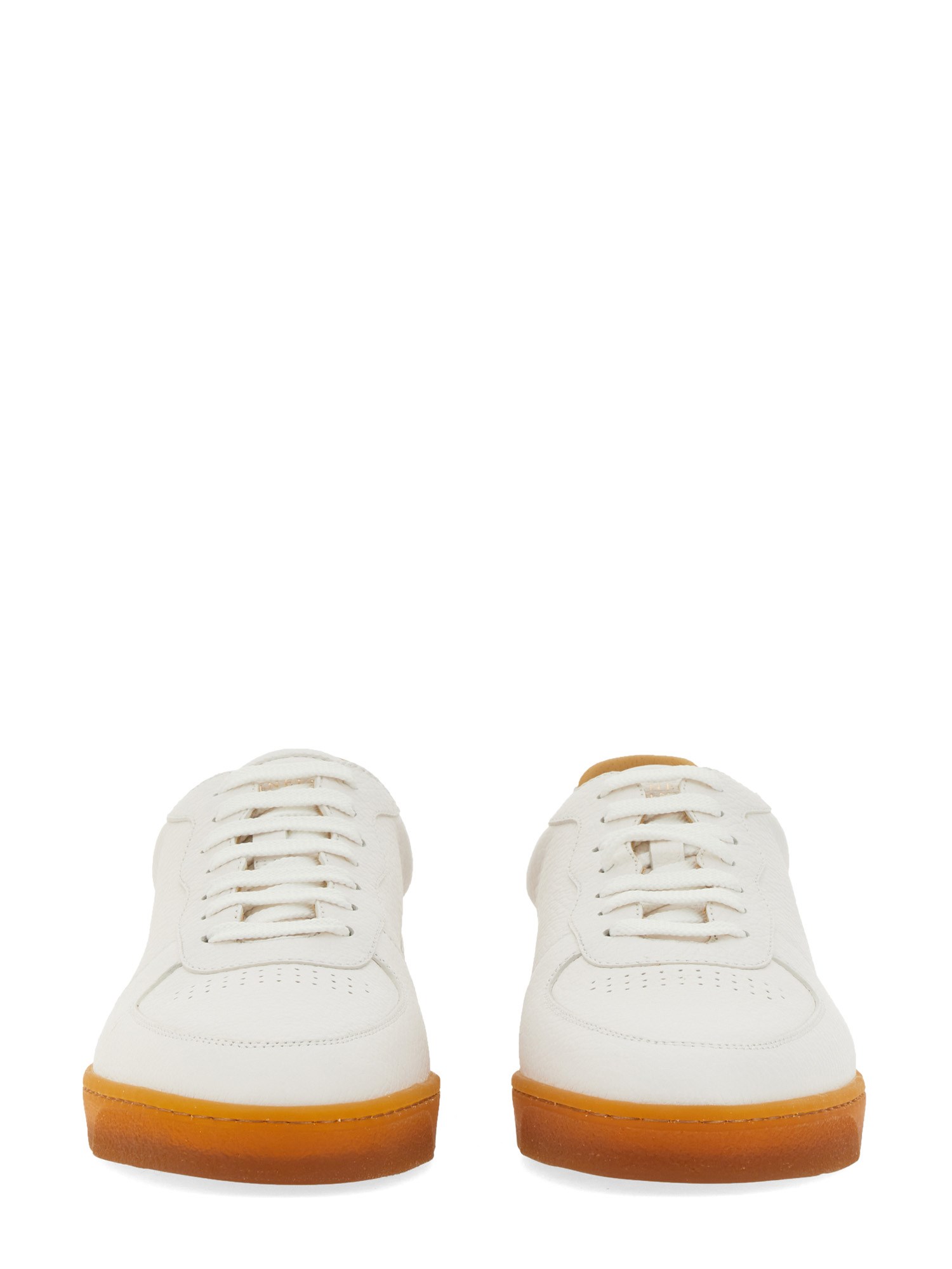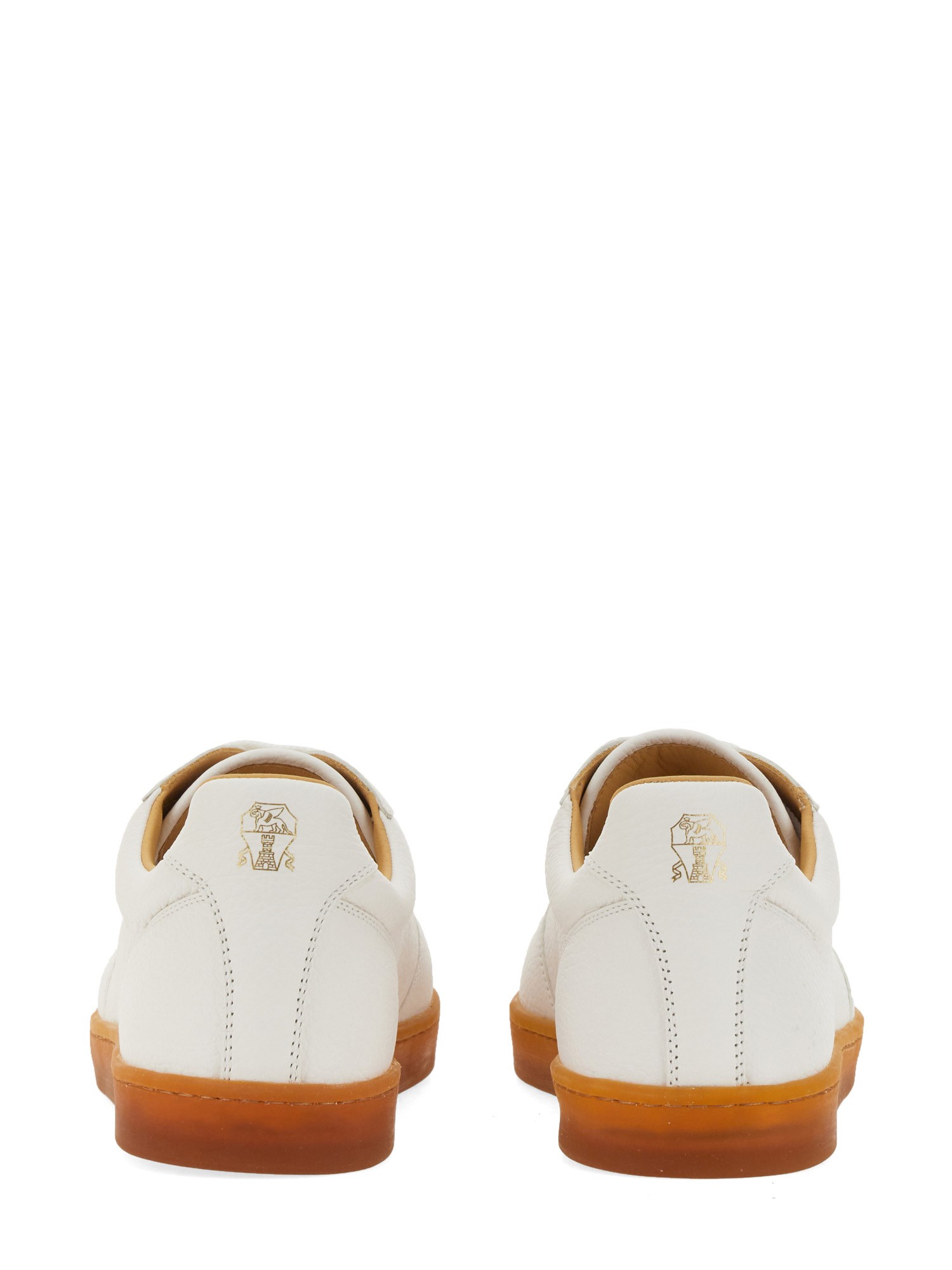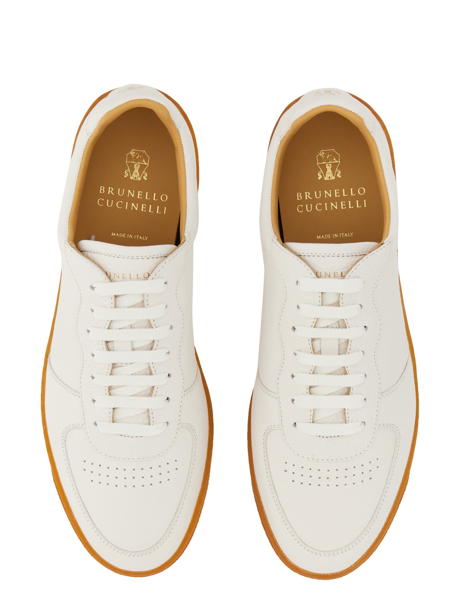 The refined materials of the Brunello Cucinelli collections enrich the elegant and essential style of these sneakers. The grained calfskin’s sophisticated texture stands out against the natural latex outsole, which adds a distinct touch and provides comfortable lightness and flexibility.