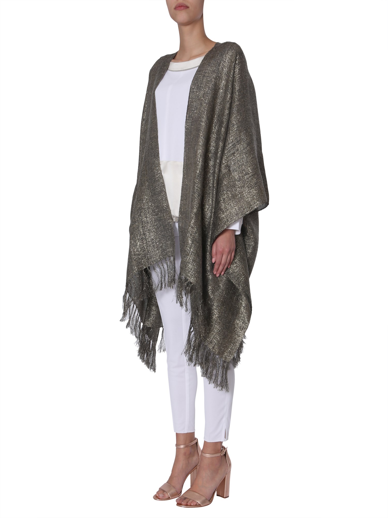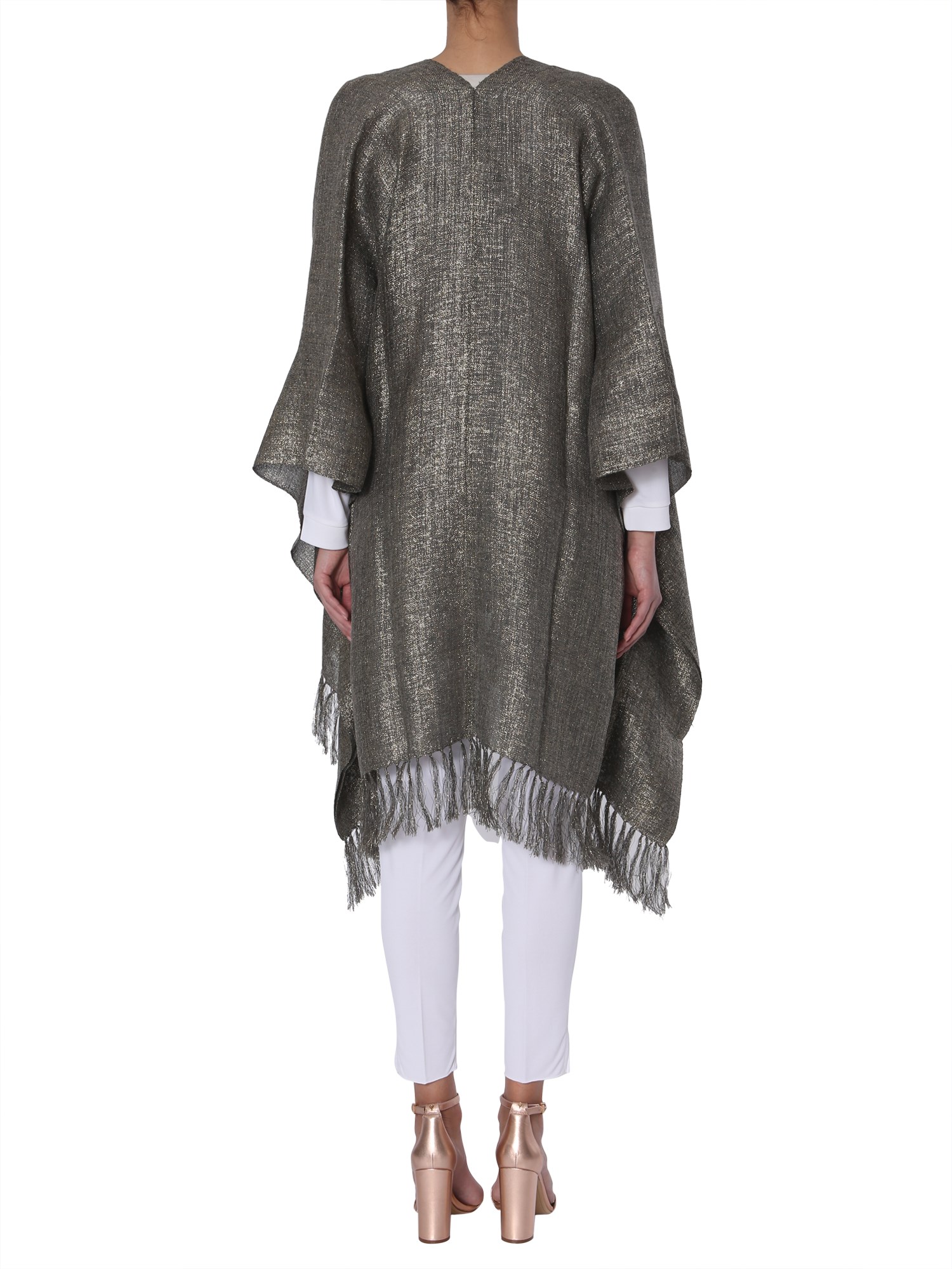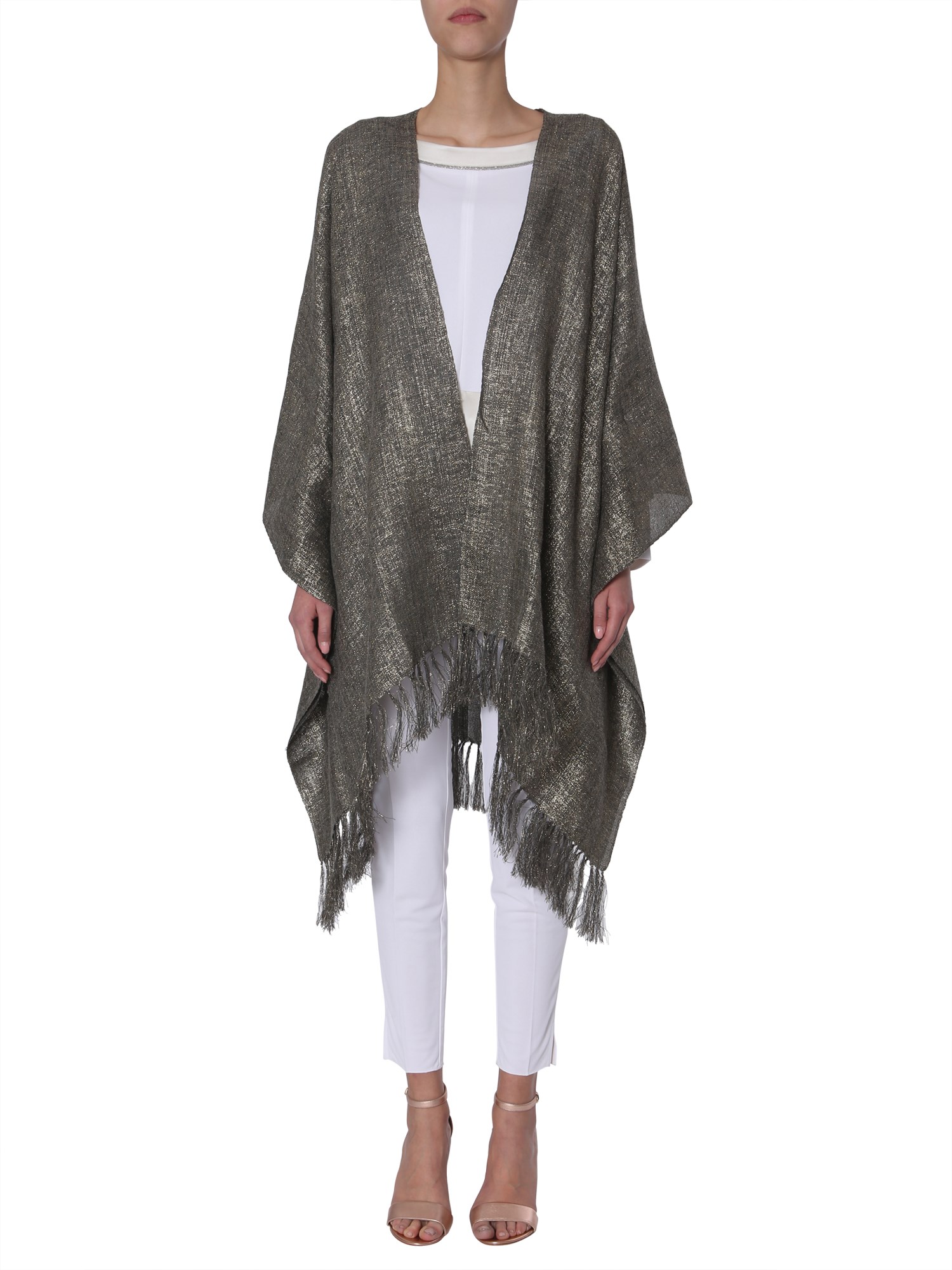- OPEN FRONT - KIMONO SLEEVES - FRINGED HEMLINE - 45% LINEN, 37% POLYESTER, 10% LUREX, 8% POLYAMIDE - MADE IN ITALY- MODEL IS WEARING A ONE SIZE