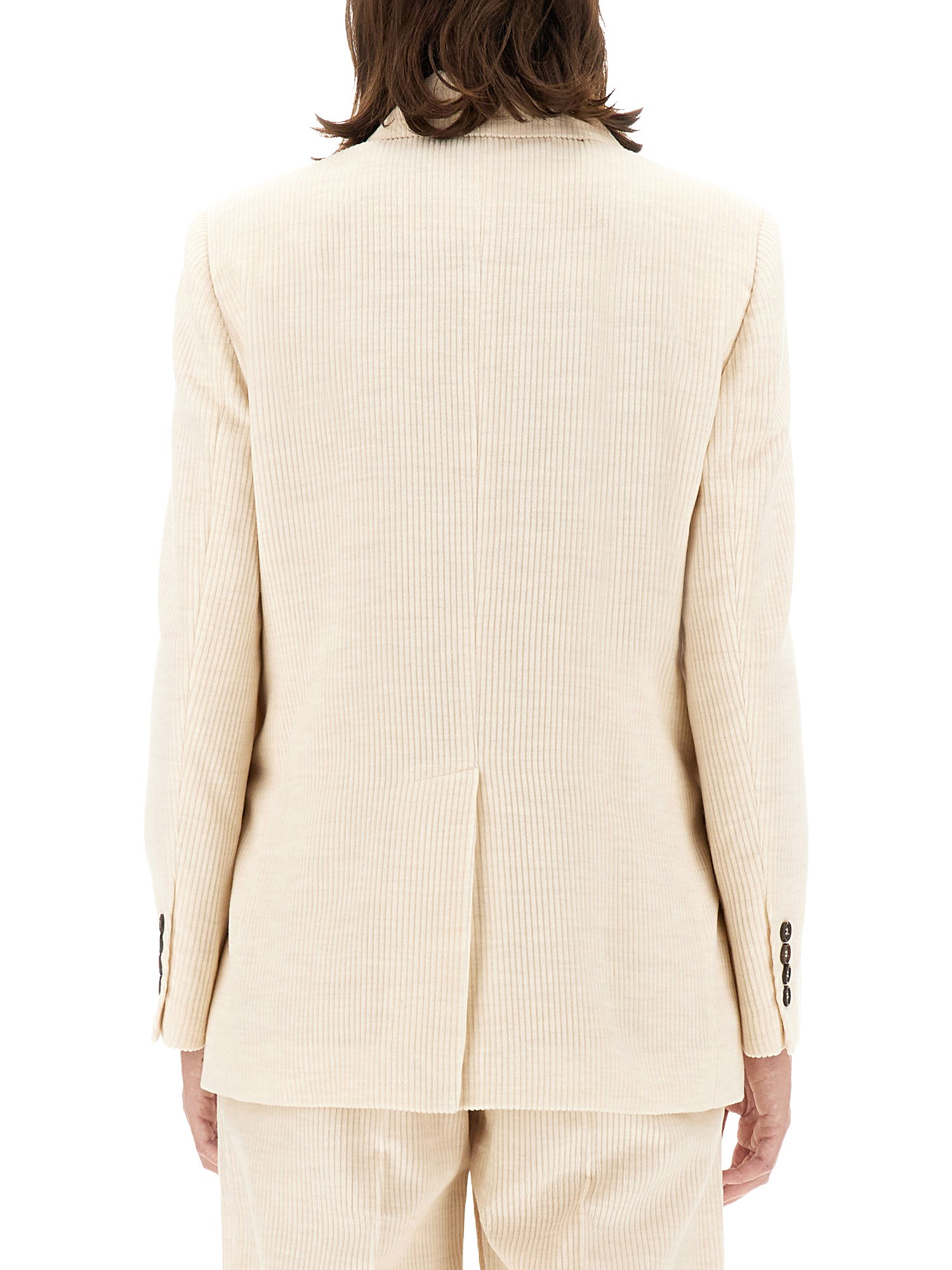 The double-breasted jacket from Brunello Cucinelli exemplifies sophisticated tailoring and timeless elegance. Crafted from premium materials, this jacket features a refined silhouette that enhances the wearer's stature while providing a comfortable fit. Its classic design is complemented by meticulous detailing, including structured lapels and a tailored waist, making it suitable for both formal and casual occasions. Ideal for the discerning individual, this jacket embodies the brand's commitment to quality and style.