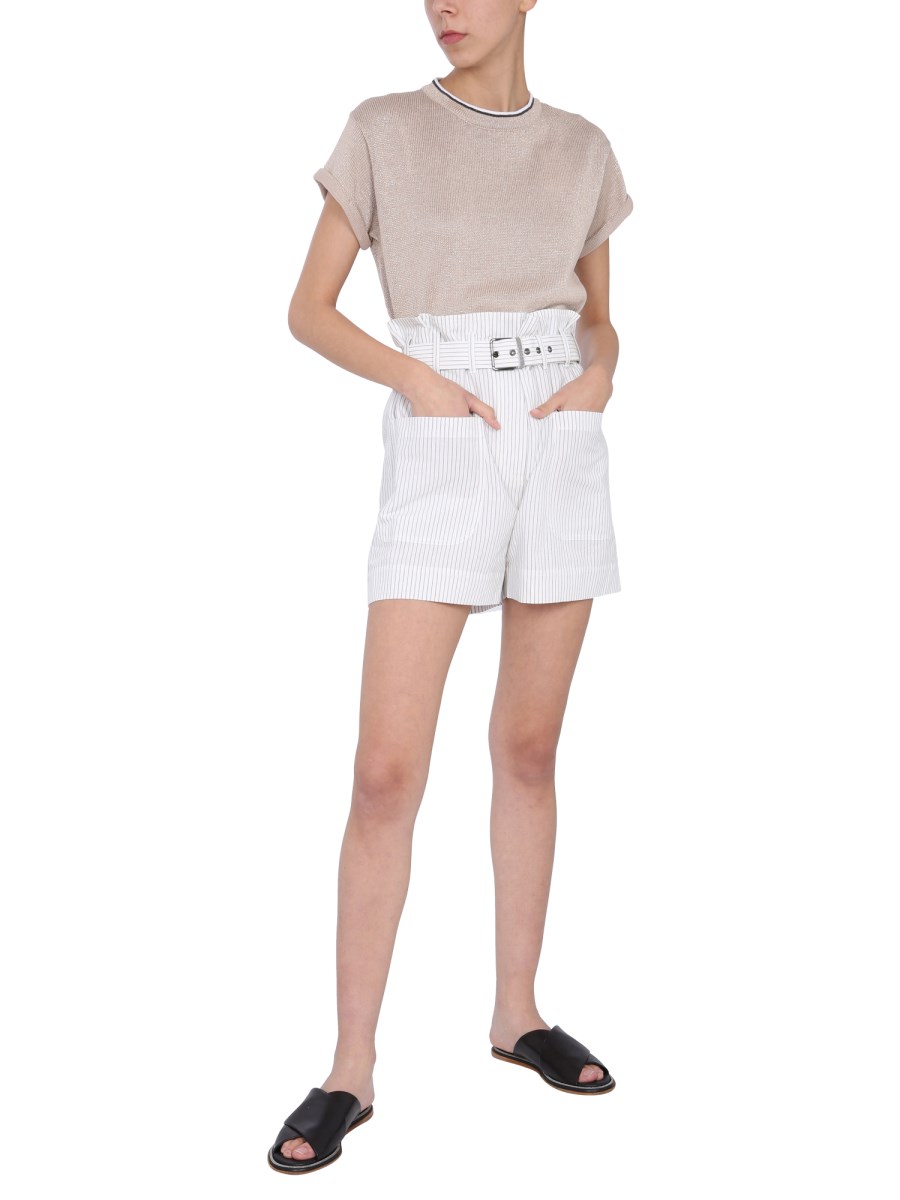 Do not compromise with your comfort, pick these Striped Bermuda by Brunello Cucinelli. The shorts feature a belt that comes with an adjustable jewel that adds elegance to this piece. The zip and hook closure of the shorts ensures safety. There are pockets on both sides to keep your essentials. Get ready for your adventure and let these shorts take care of the rest.