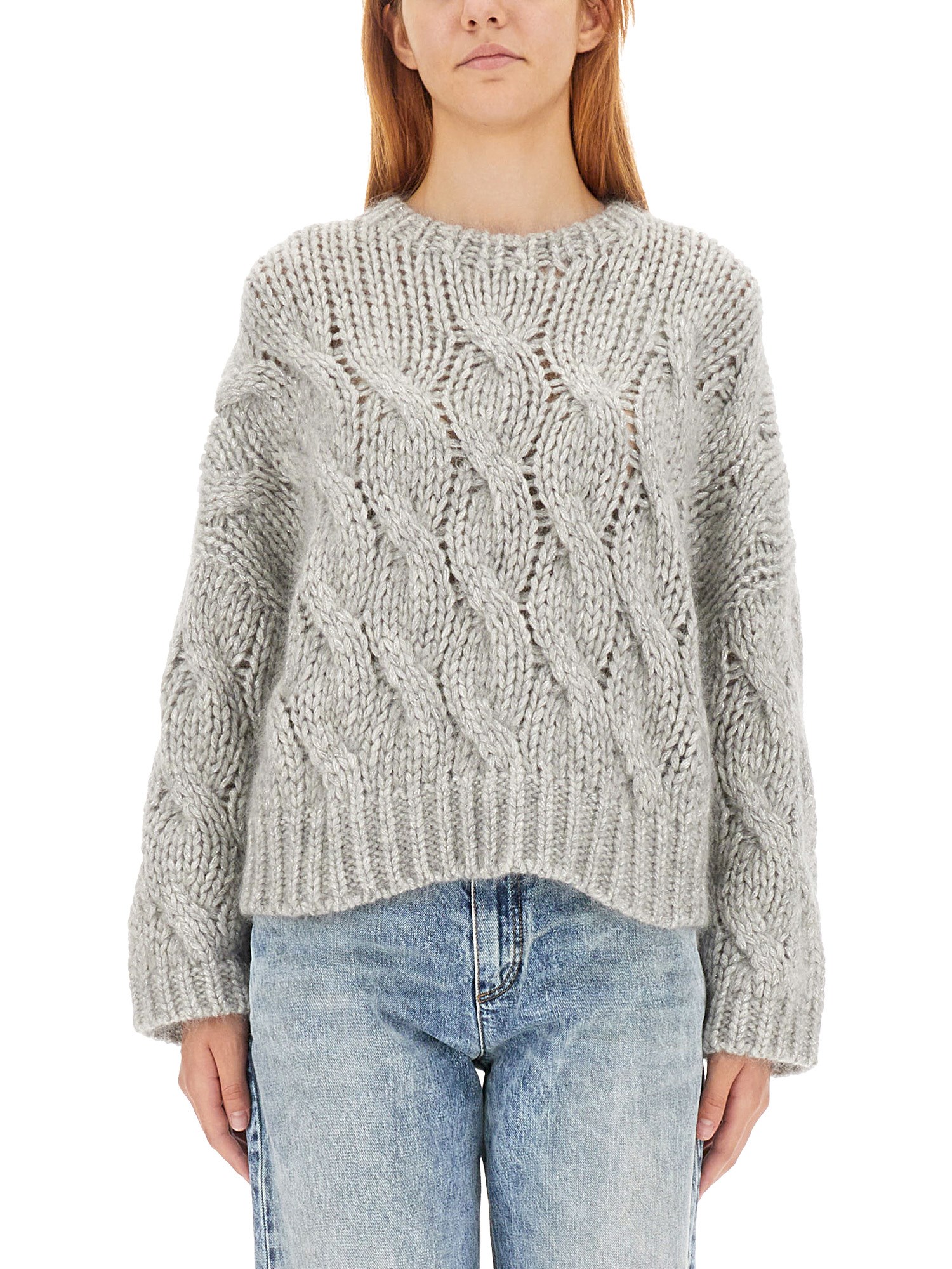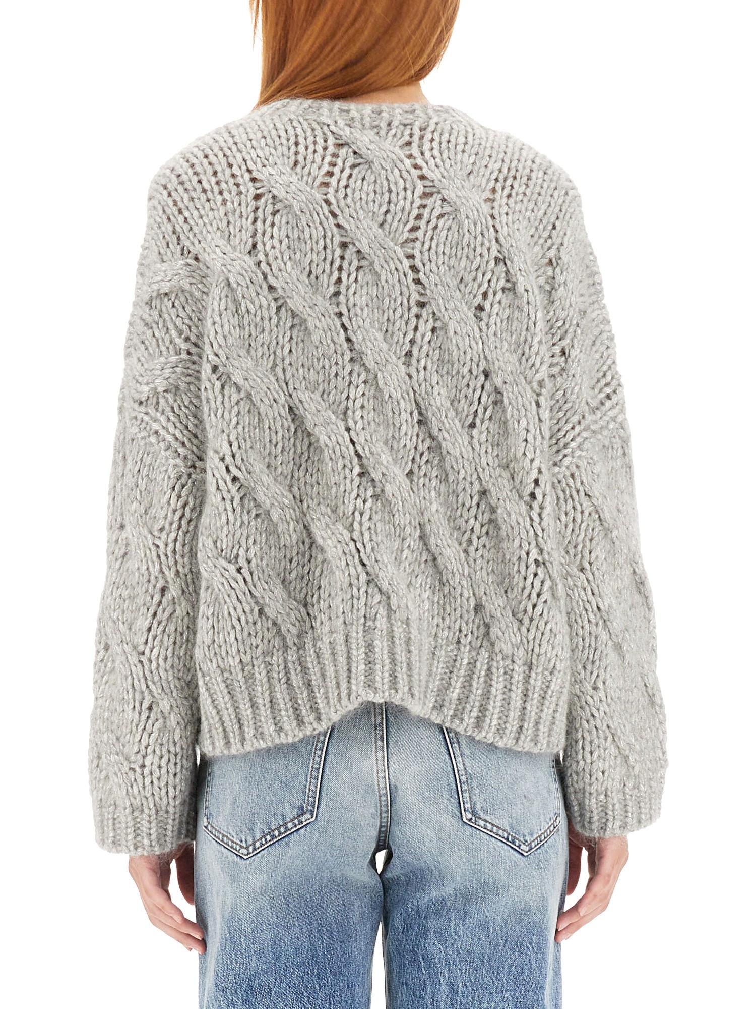 - OVERSIZE FIT.- 45% MOHAIR, 32% POLYAMIDE, 13% WOOL, 6% VISCOSE, 4% POLYESTER METALLIC- MADE IN ITALY- THE MODEL IS 175 CM TALL AND WEARS SIZE S