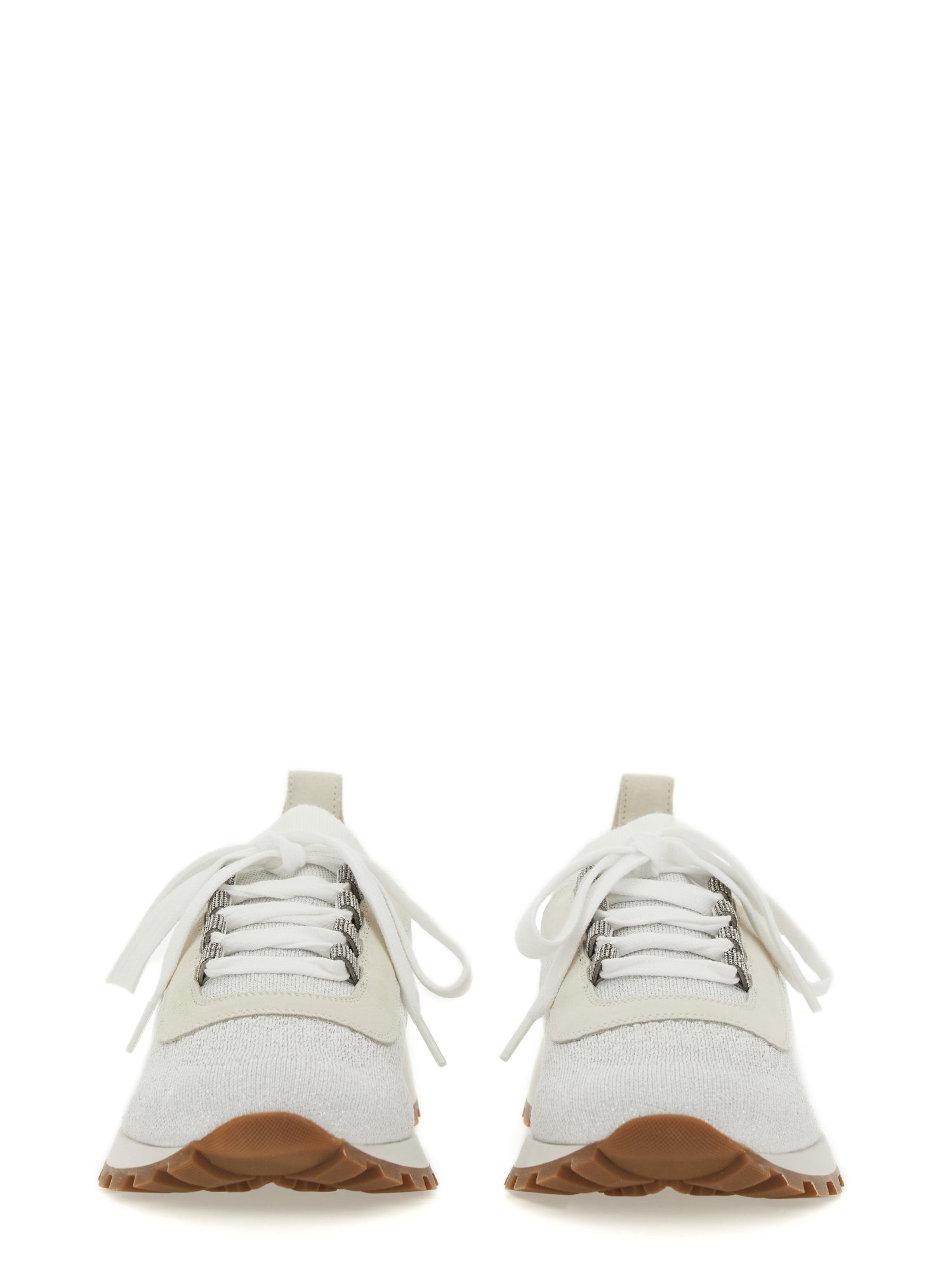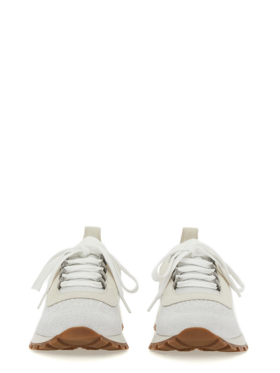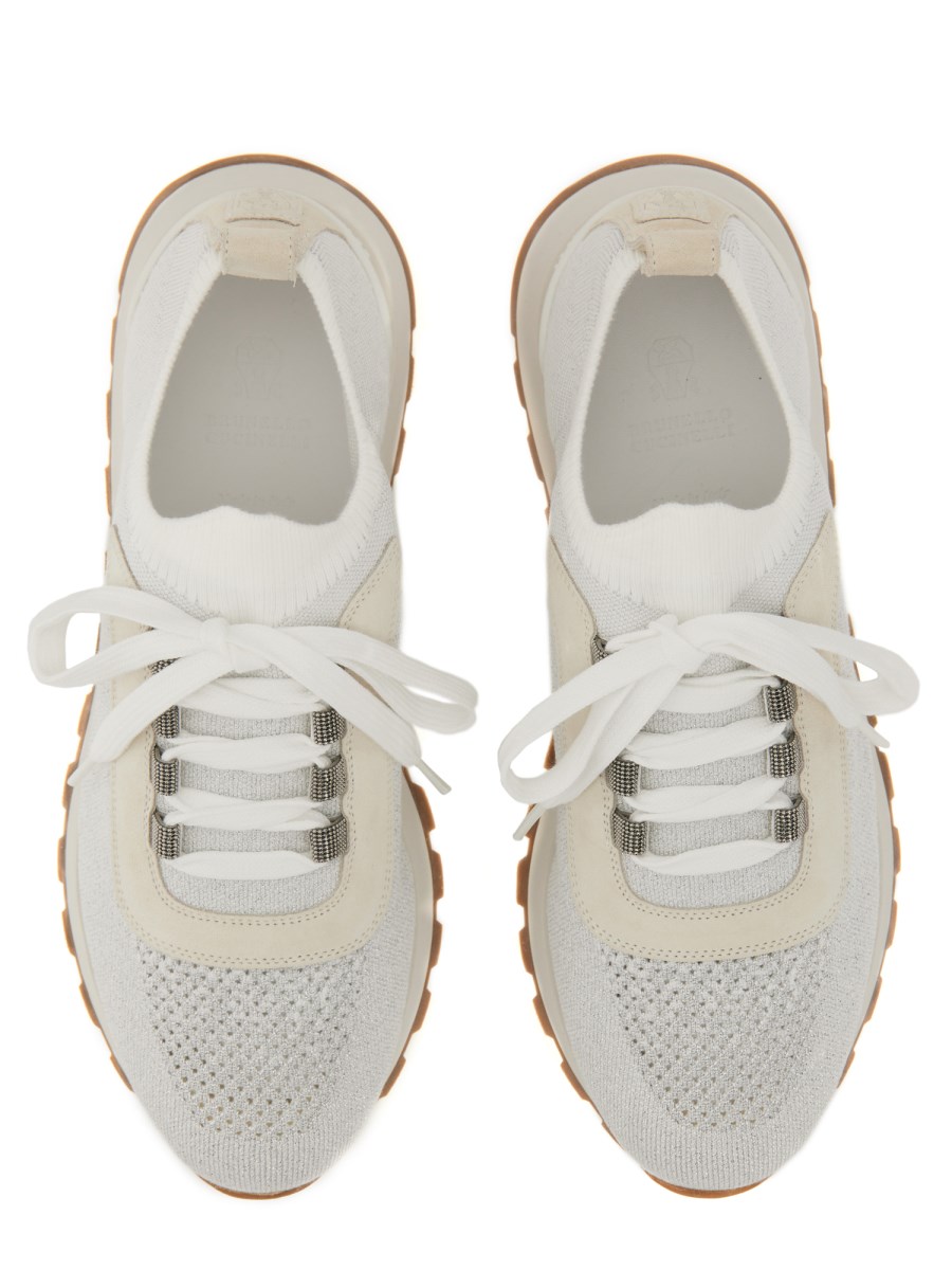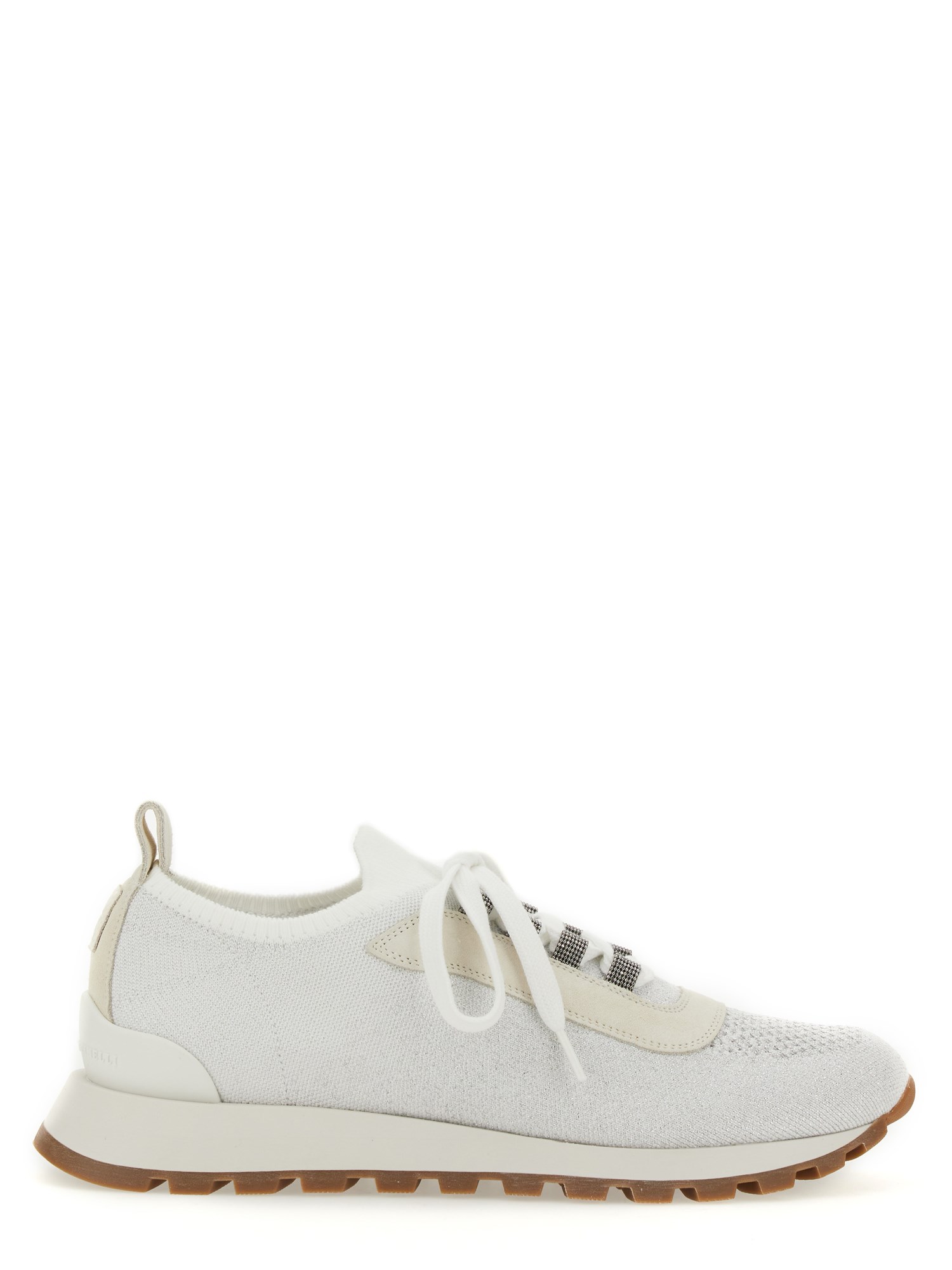 These sneakers from Brunello Cucinelli are the perfect blend of style and comfort. Made with a cotton blend knit and featuring a flat lace closure, they're perfect for any casual occasion. Dress them up or down, these sneakers are sure to become a staple in your wardrobe.