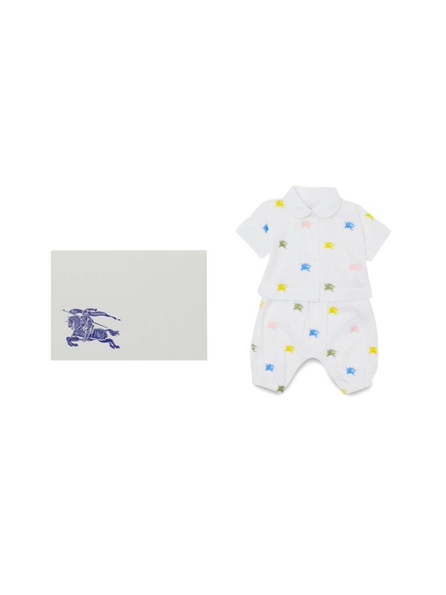 Stay stylish and comfortable in the Burberry n7 allover set. The versatile top features a collared neckline, short sleeves, and a button front closure, while the relaxed trousers offer an elasticized waistband with a drawstring and elasticized ankle cuffs for a custom fit. Perfect for day or night, this set is a must-have addition to your wardrobe.