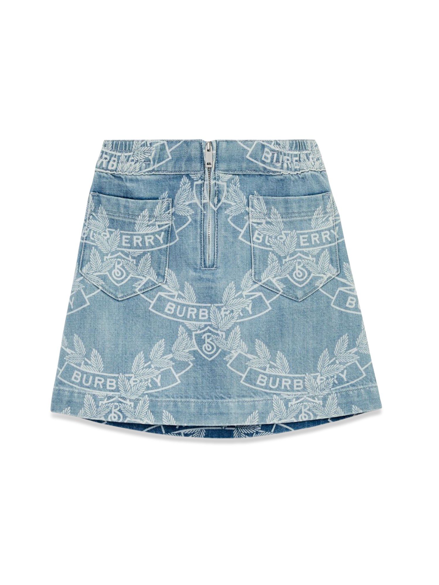 The kids mini skirt from Burberry is perfect for the little girl who likes to be in style and looking their best. This skirt is made from a stretchy, cotton denim fabric, with a zipper closure on the front. It's super-soft and made of the highest quality denim. It has a front zipper closure and is machine washable.