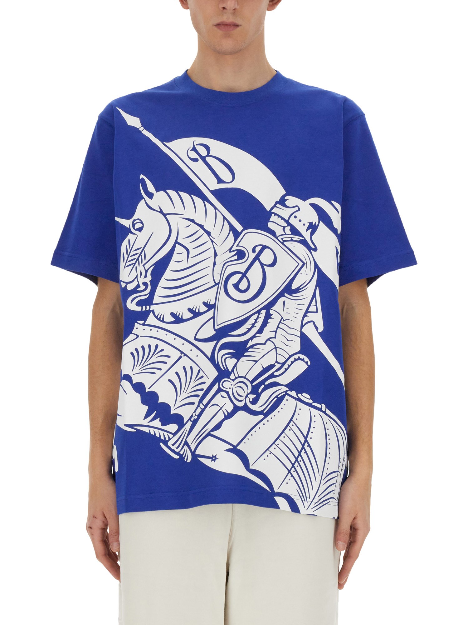 This classic piece from Burberry is a must-have addition to your wardrobe. Whether you're looking for a casual everyday look or a comfortable option for a weekend outing, this T-shirt has got you covered. This T-shirt features a timeless crew neck design, ensuring a comfortable fit and a versatile style that suits any occasion. The vibrant blue colour will effortlessly elevate your outfit and add a pop of freshness to your look.