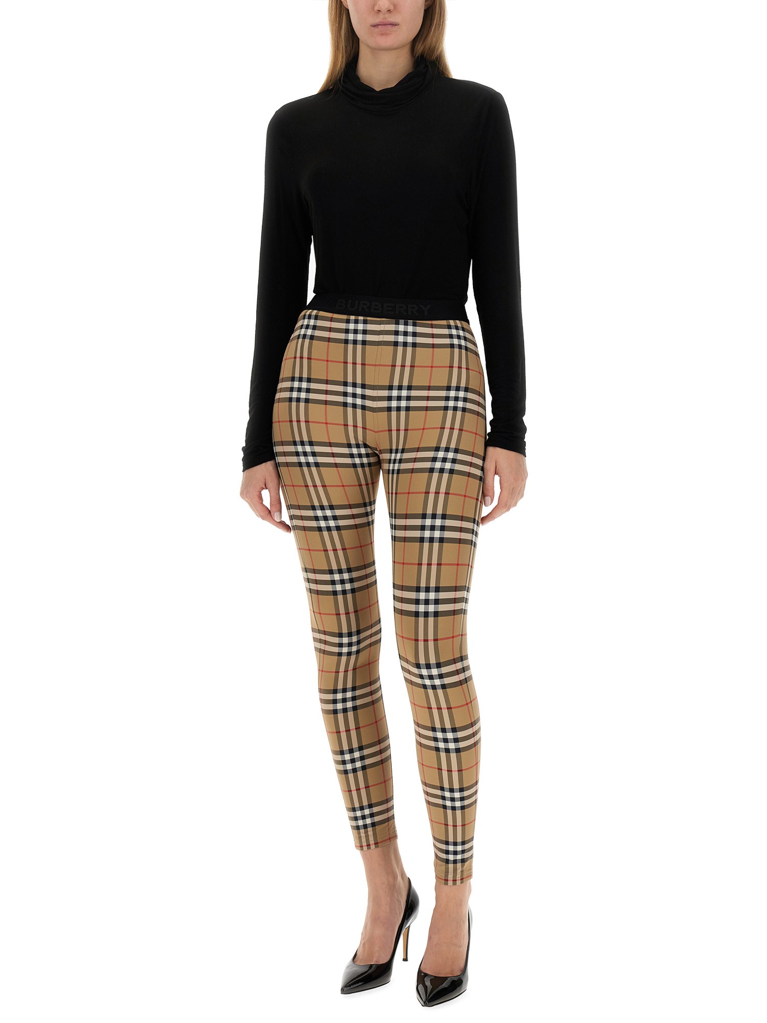Stay on-trend with Burberry's Tartan Check Leggings that are as comfortable as they are stylish. Designed with an elasticized waistband, these leggings provide a snug fit while offering flexibility and ease of movement. The pull-on style means no fussing with zippers or buttons, making dressing up a breeze. With their slim fit silhouette, these leggings are perfect for creating a sleek and polished look.