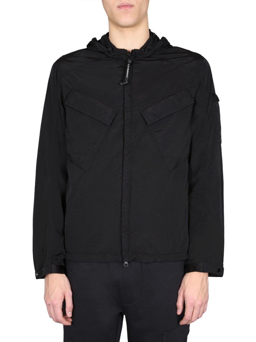 Style up this season in the classy and stylish jacket by C.P. Company. This stretchable jacket with unlined inner is designed keeping in mind comfort and ease. It has a hoodie with iconic lens and zip closure. The jacket has two side pockets to keep small knick knacks close on the go.