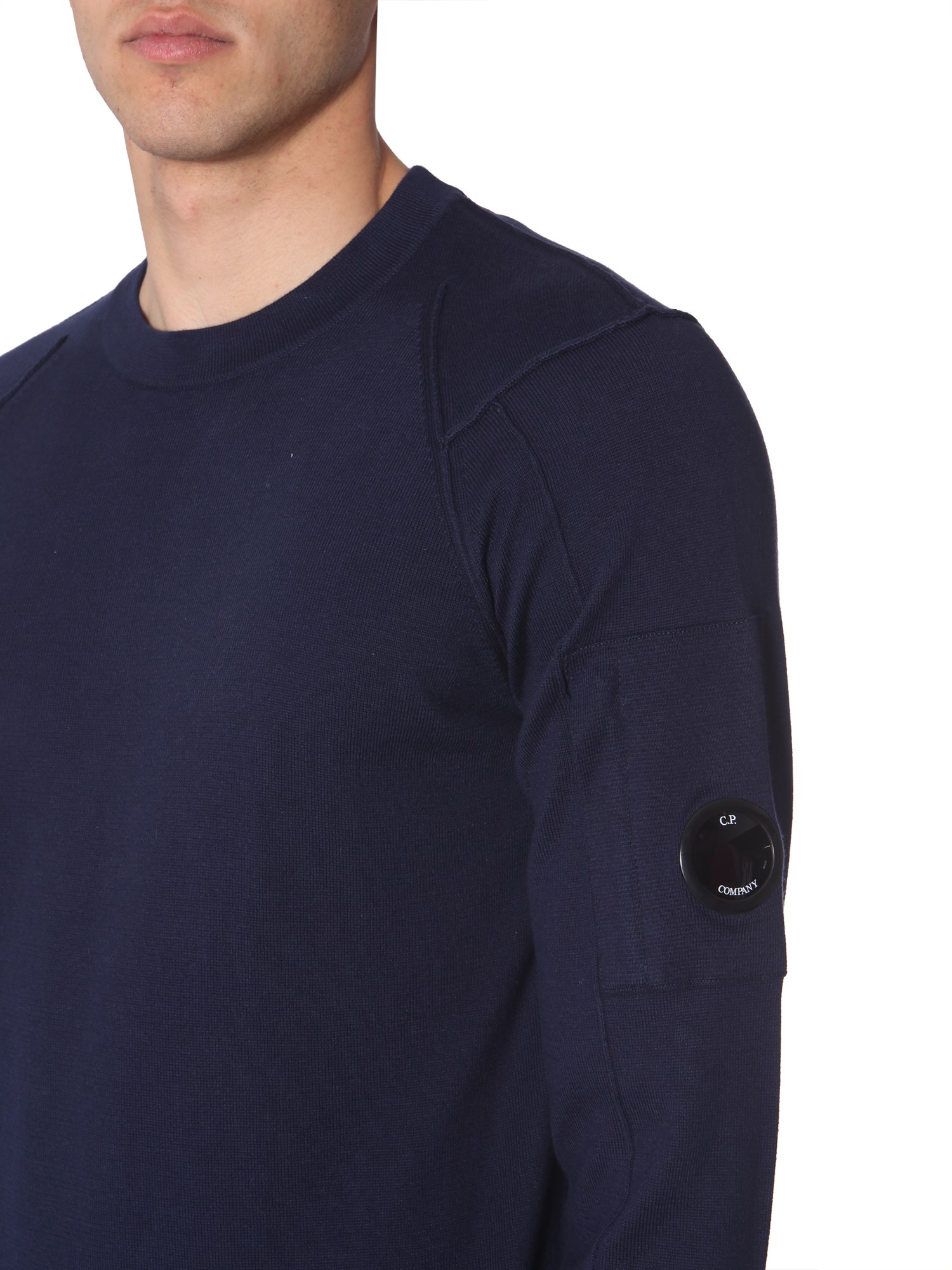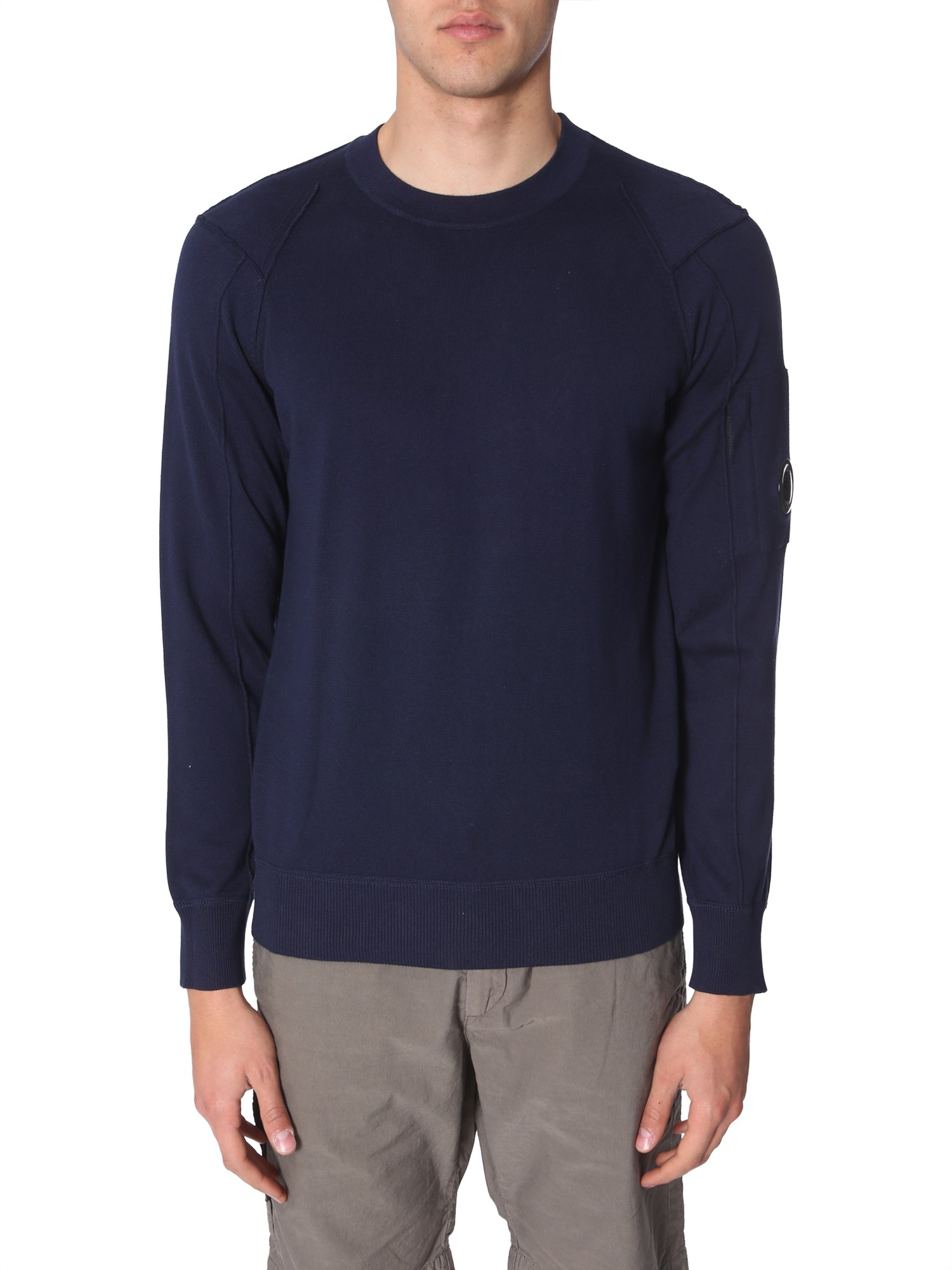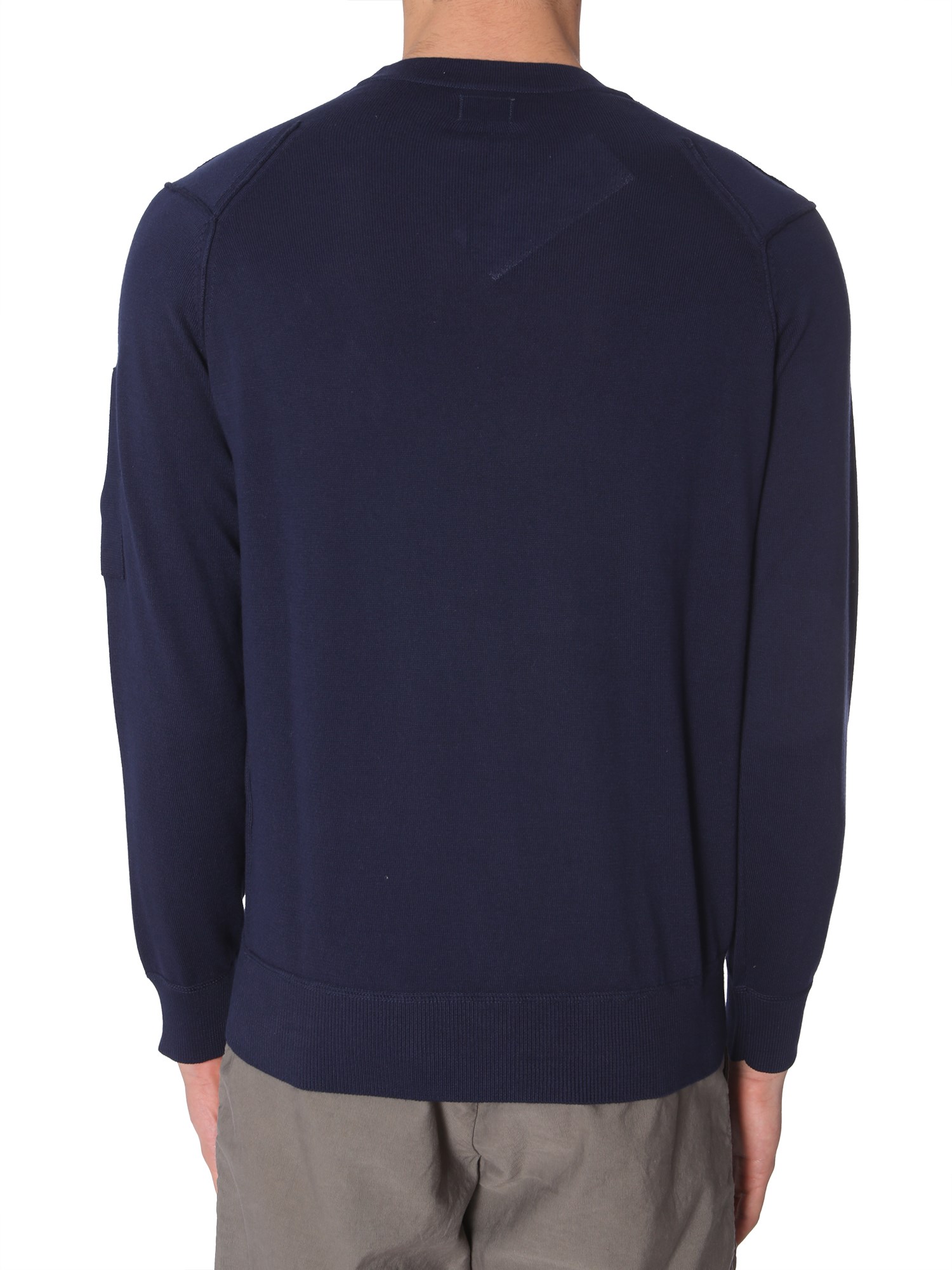 Wrap yourself in this crew neck sweater from C.P. Company. The sweatshirt is fabricated in 100% cotton that provides breathability to the skin. With its plain and simple front, it has a subtle outlook. The sweater can be combined with cargo jeans and white sneaker for a complete look.