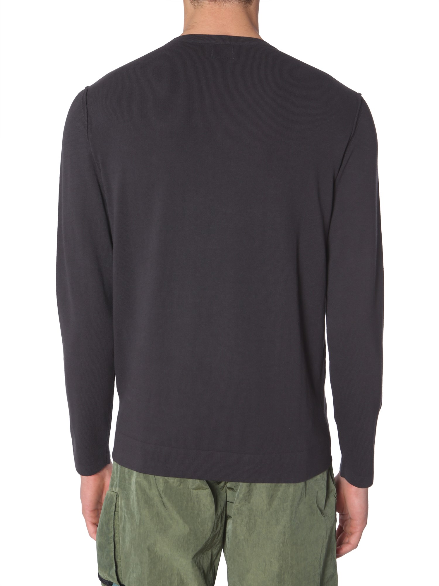 Excite your winter wardrobe with this crew neck knit from C.P. Company. Tailored from 100% cotton, it ensures breathability. It comes with a plain and simple surface with long sleeves. The iconic branding is tagged in the corner to retain its overall subtleness. The knit can be teamed with a cargo pant for a complete winter look.