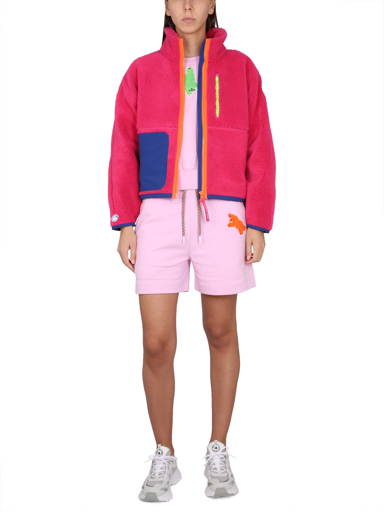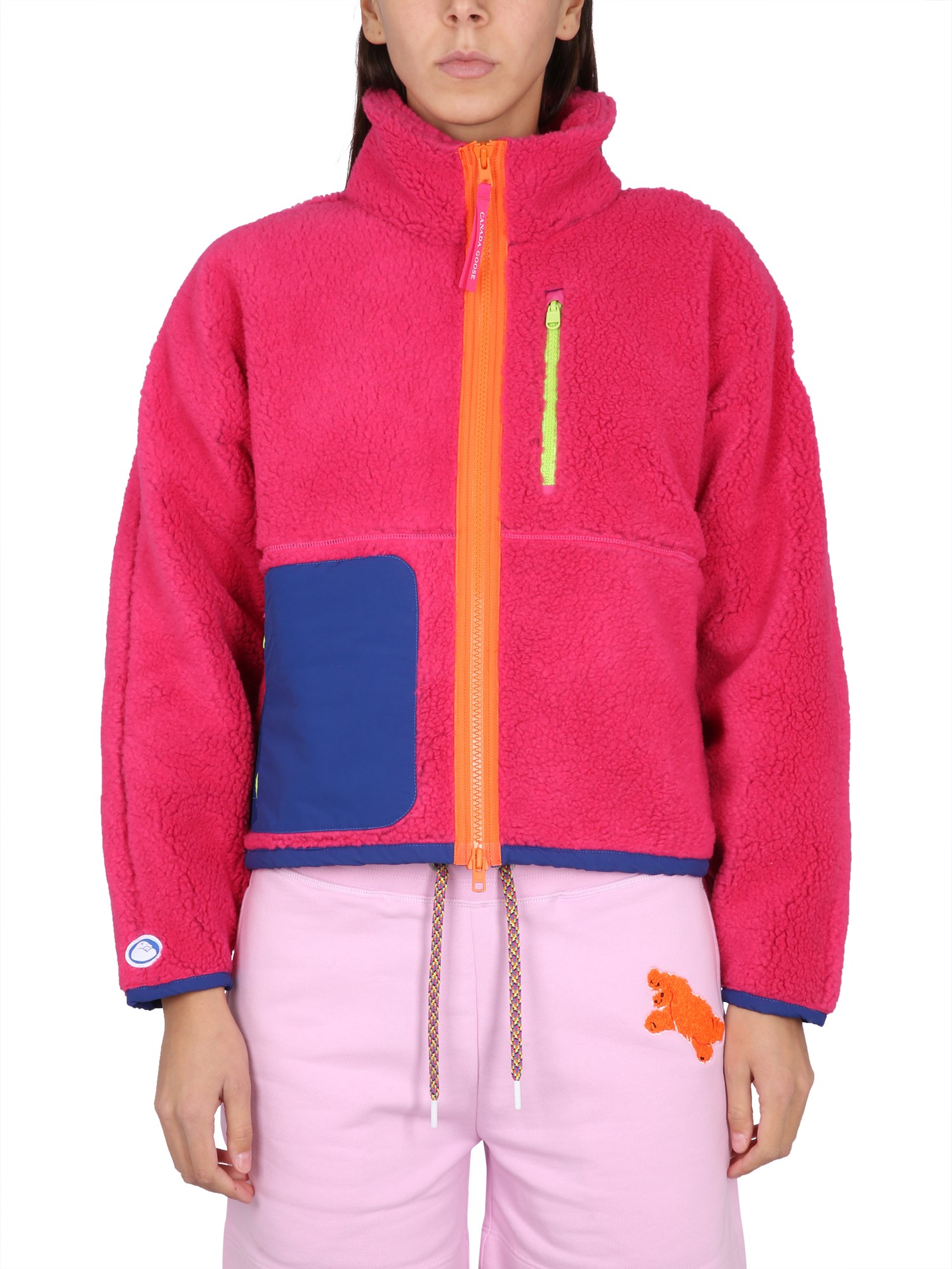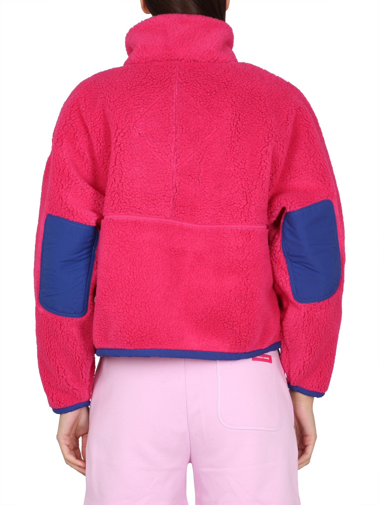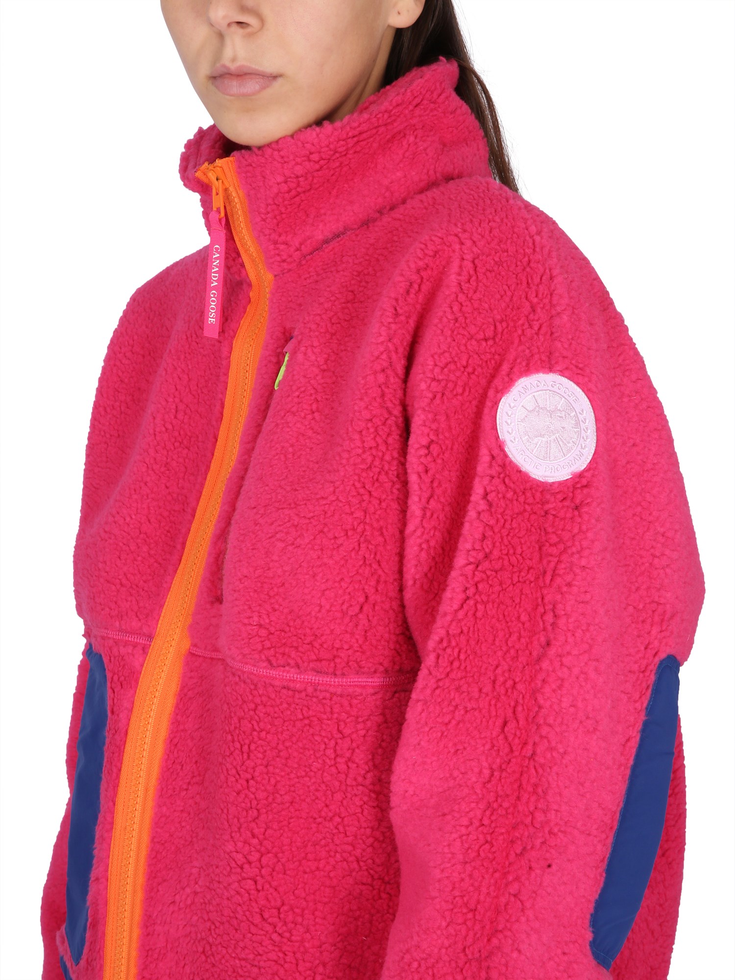 Crafted with Wool High Pile Fleece—the Paola Pivi Fleece features a dropped shoulder, tall collar, pop colour trims, dolman sleeves and an adjustable, cinchable waist cord at the bottom hem. A portion of the proceeds are donated to Polar Bears International (PBI) Research Center.