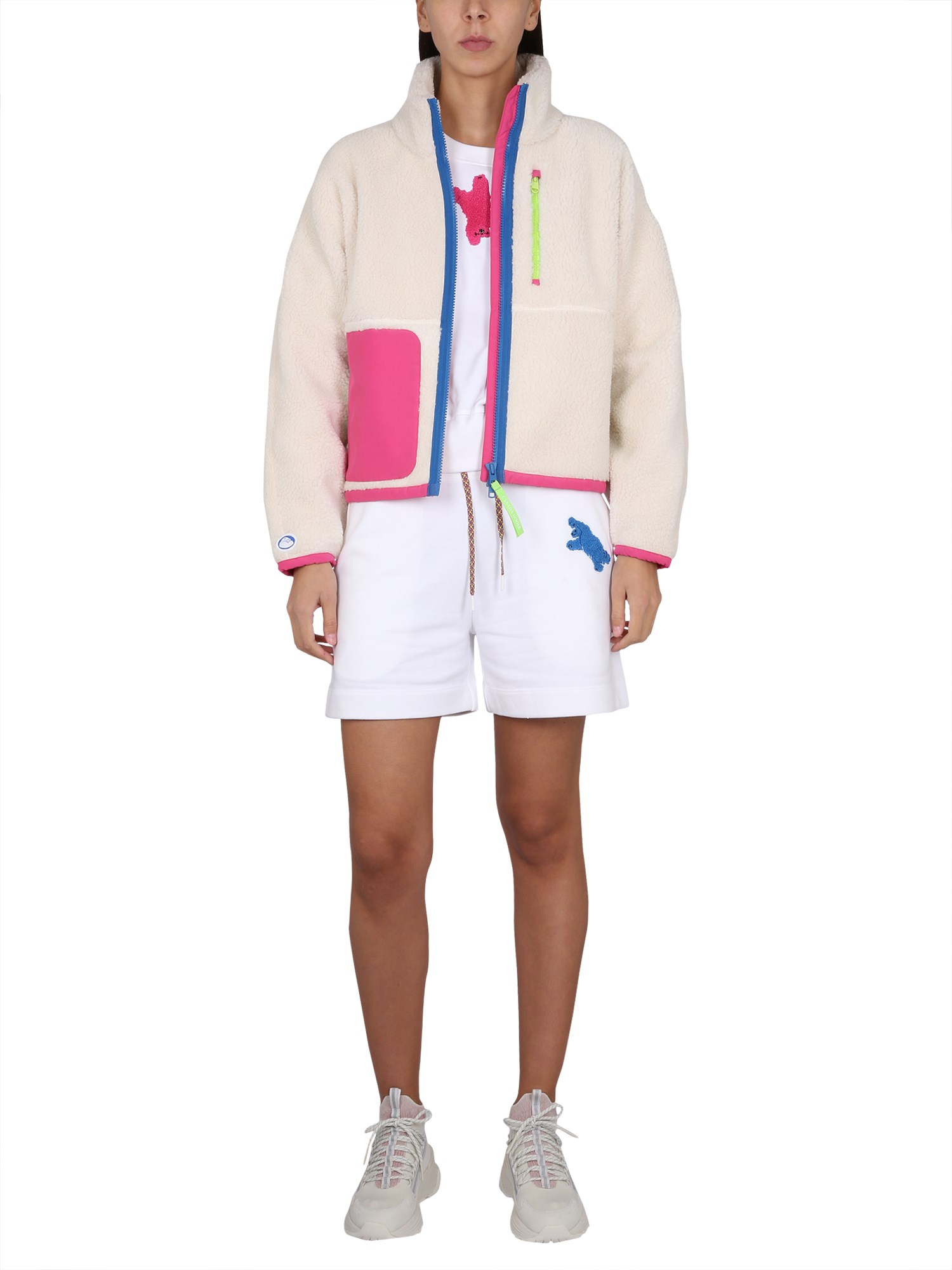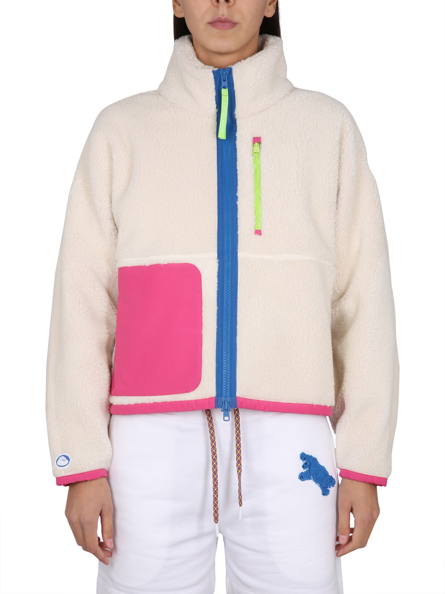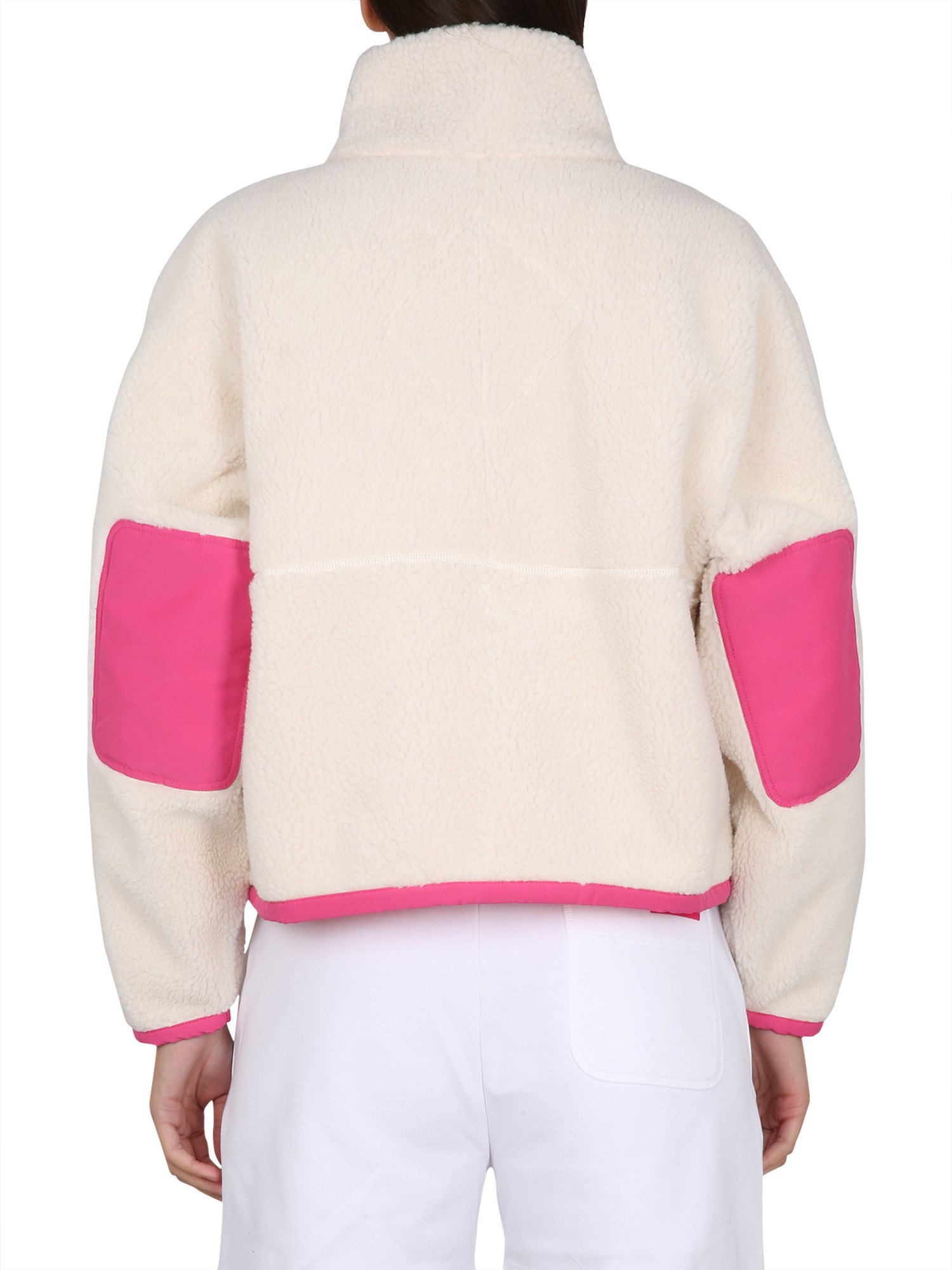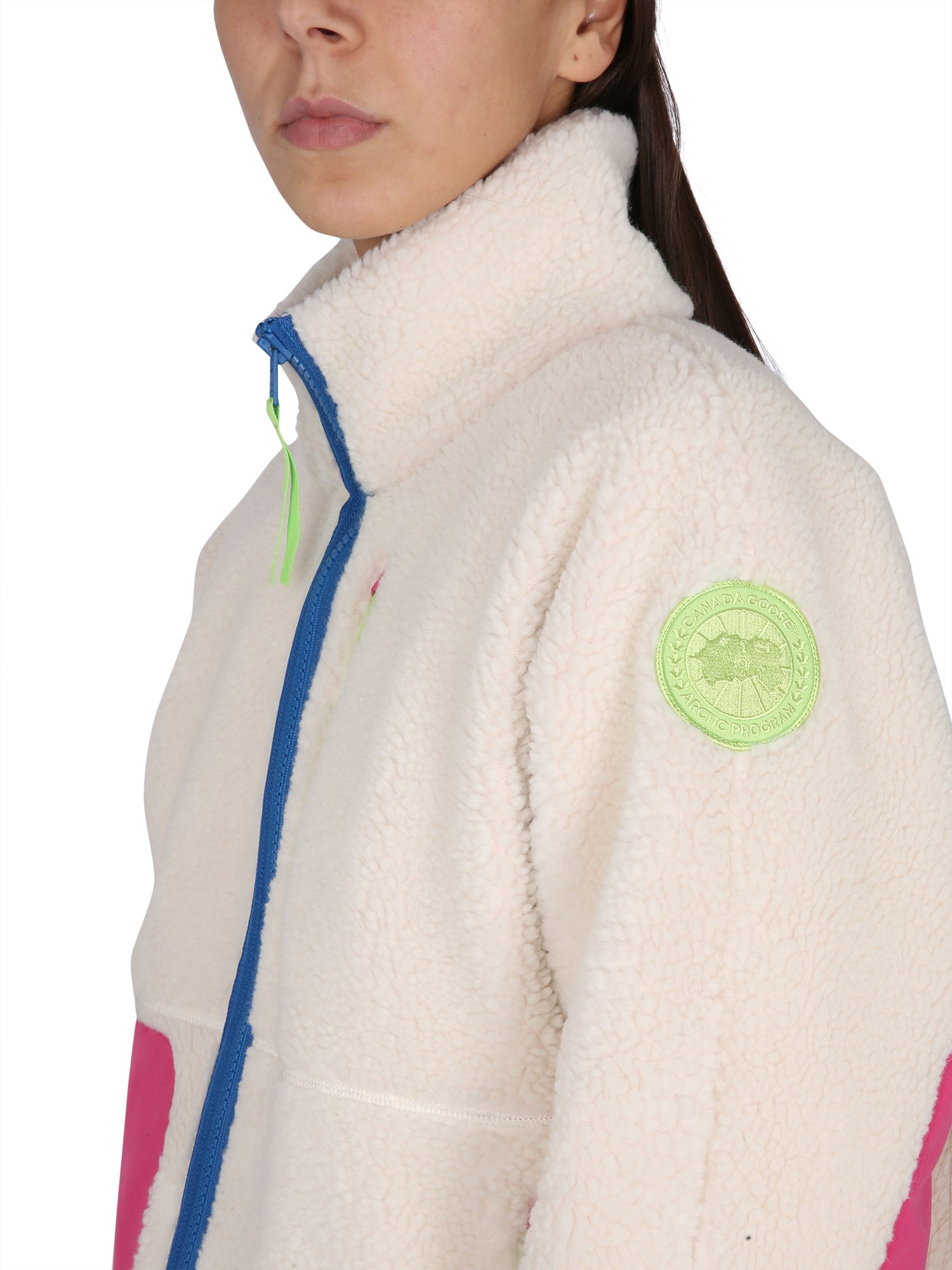 Crafted with Wool High Pile Fleece—the Paola Pivi Fleece features a dropped shoulder, tall collar, pop colour trims, dolman sleeves and an adjustable, cinchable waist cord at the bottom hem. A portion of the proceeds are donated to Polar Bears International (PBI) Research Center.