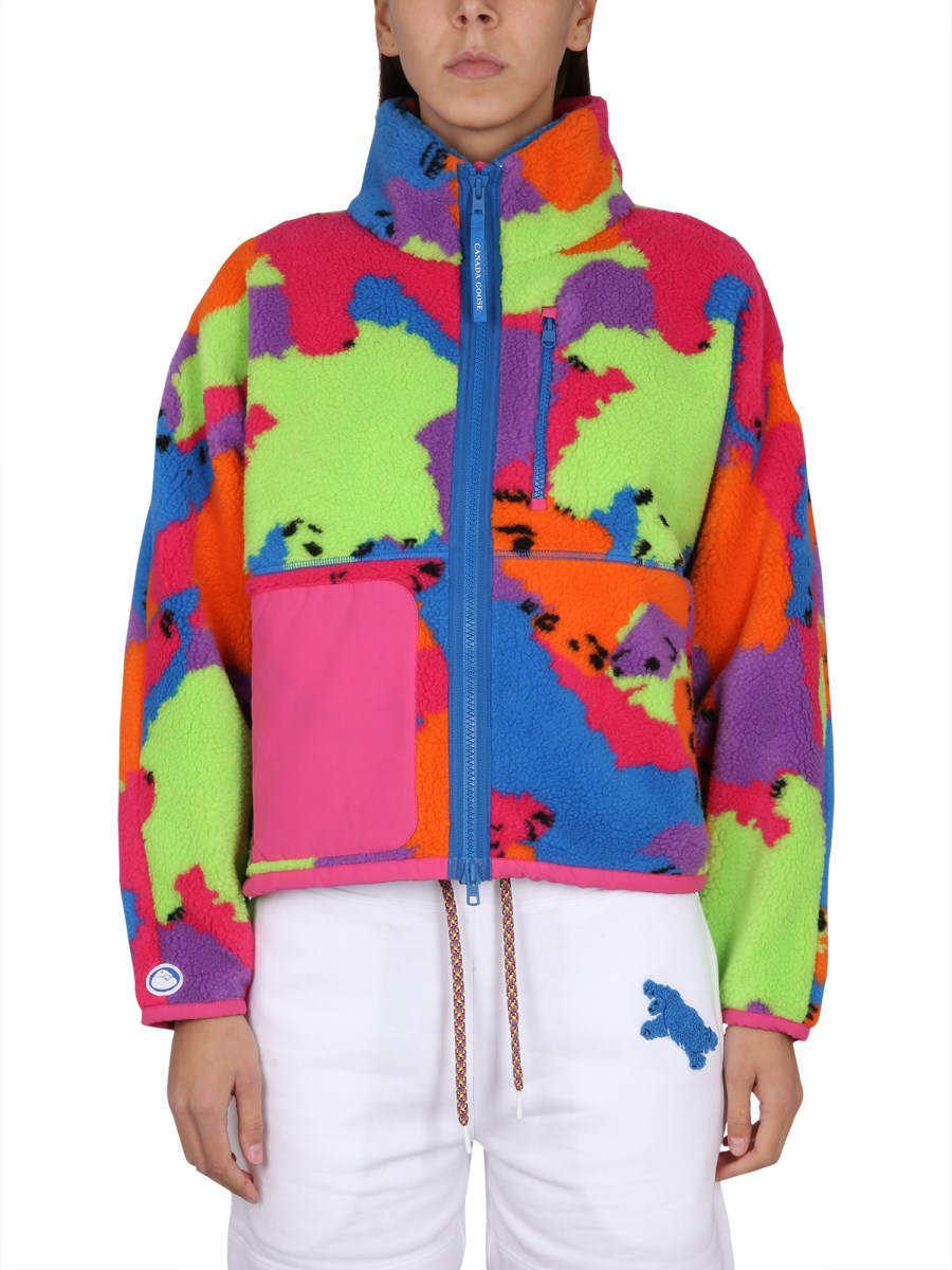 Crafted with Wool High Pile Fleece—the Paola Pivi Fleece features a dropped shoulder, tall collar, pop colour trims, dolman sleeves and an adjustable, cinchable waist cord at the bottom hem. A portion of the proceeds are donated to Polar Bears International (PBI) Research Center.