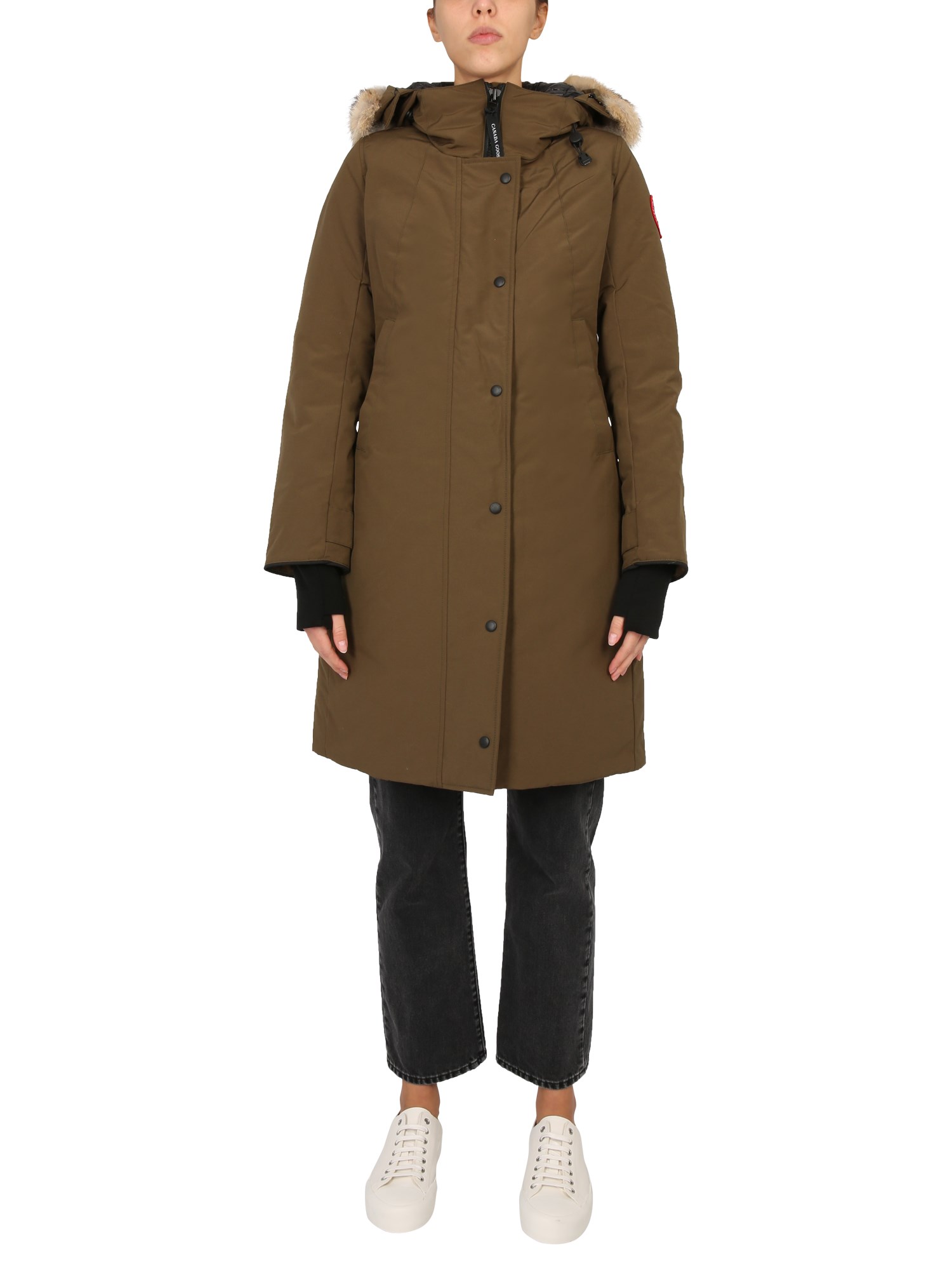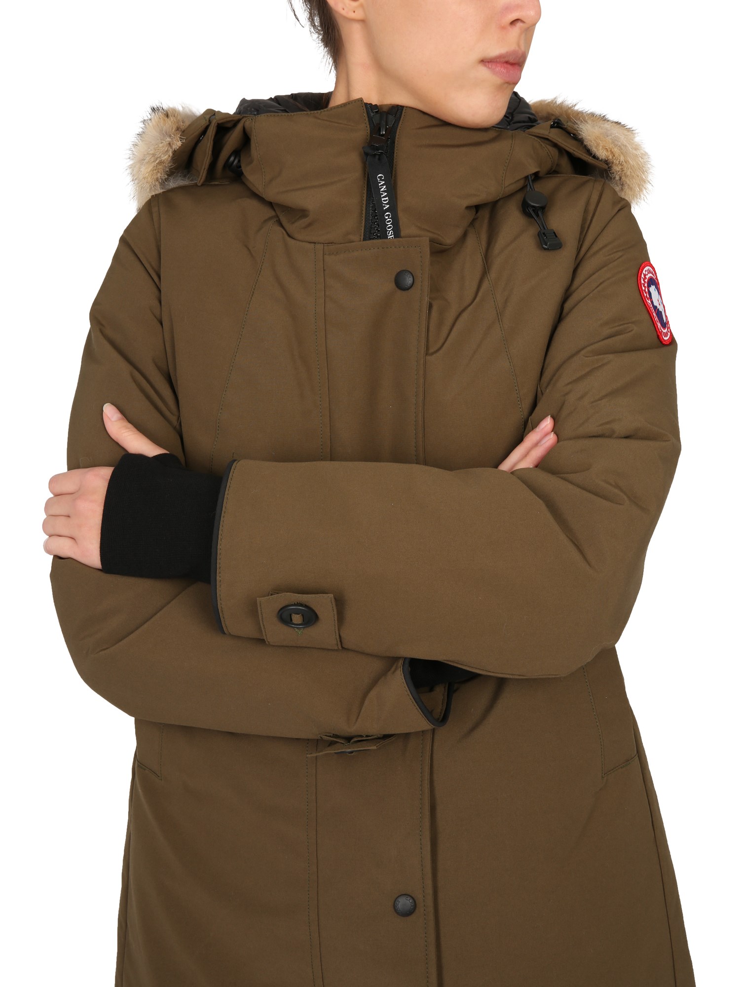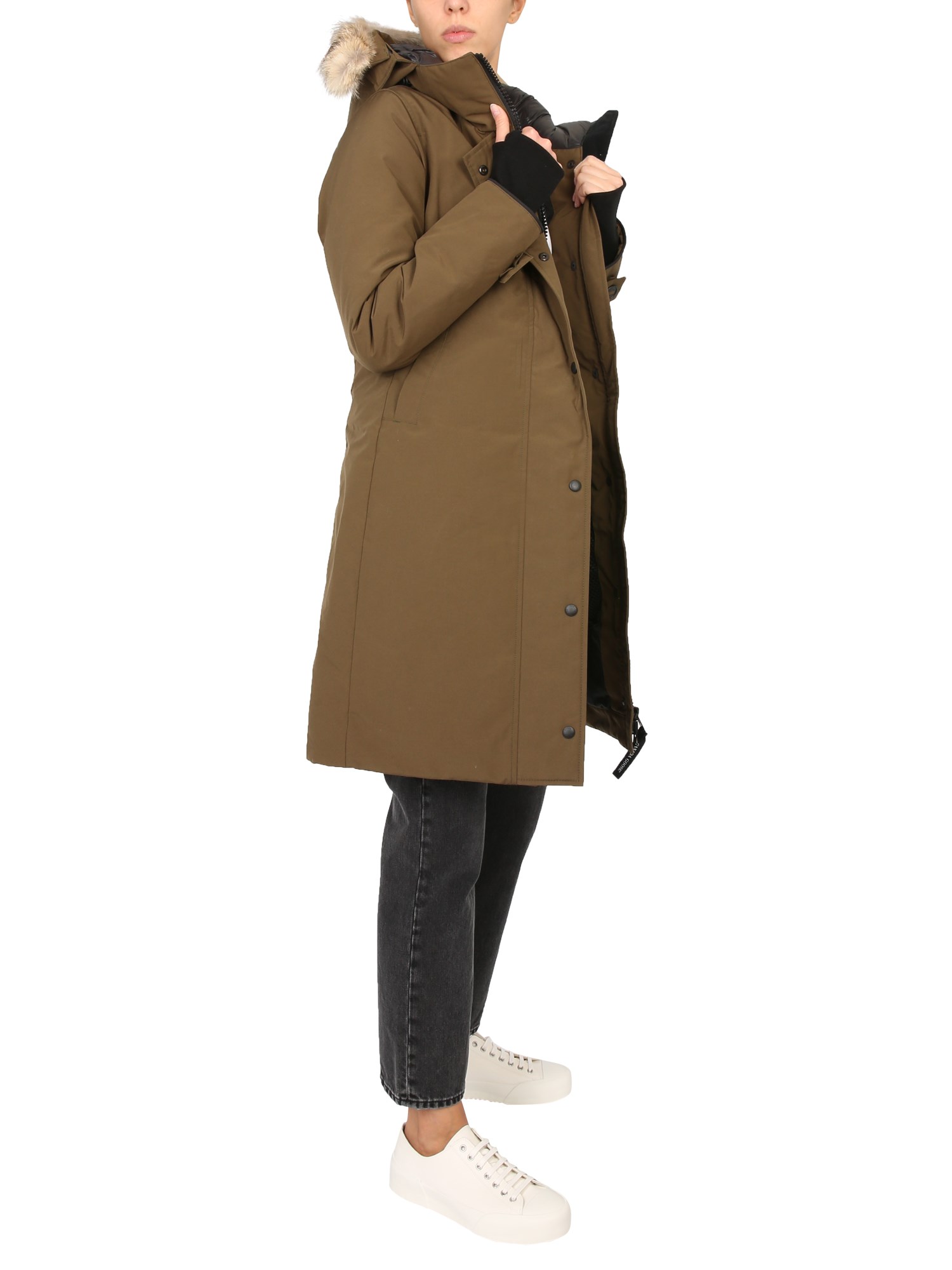 Flaunt your style with this stunning “Sherbrooke” Parka from Canada Goose. It is made with a blend of 85% polyester and 15% cotton with 80% down and 20% feather padding for added warmth and comfort. It features a zip and front buttons closure, lined inner, hood with coulisse, side logo patch, two inner mesh pockets, and two outer side hand warmer pockets fleece lined.