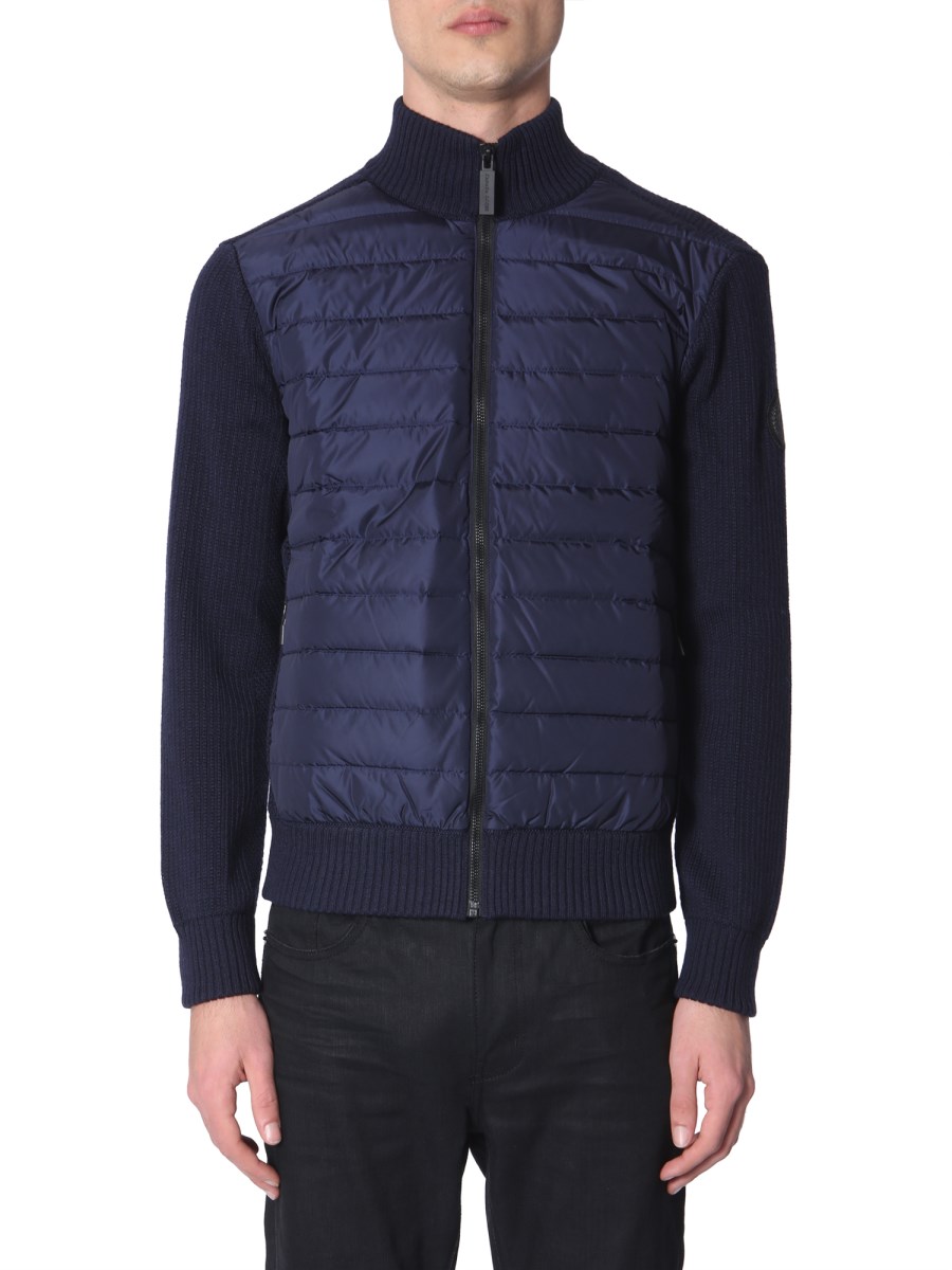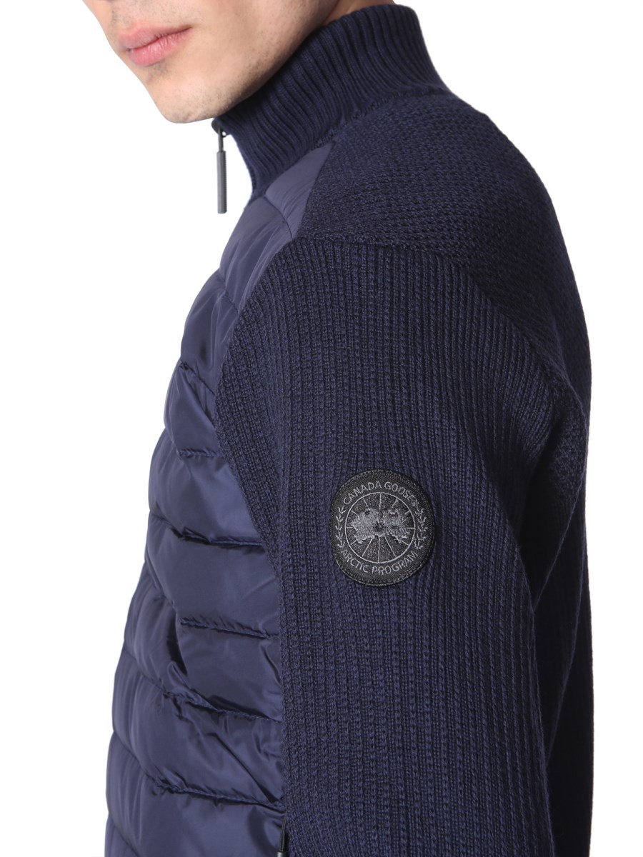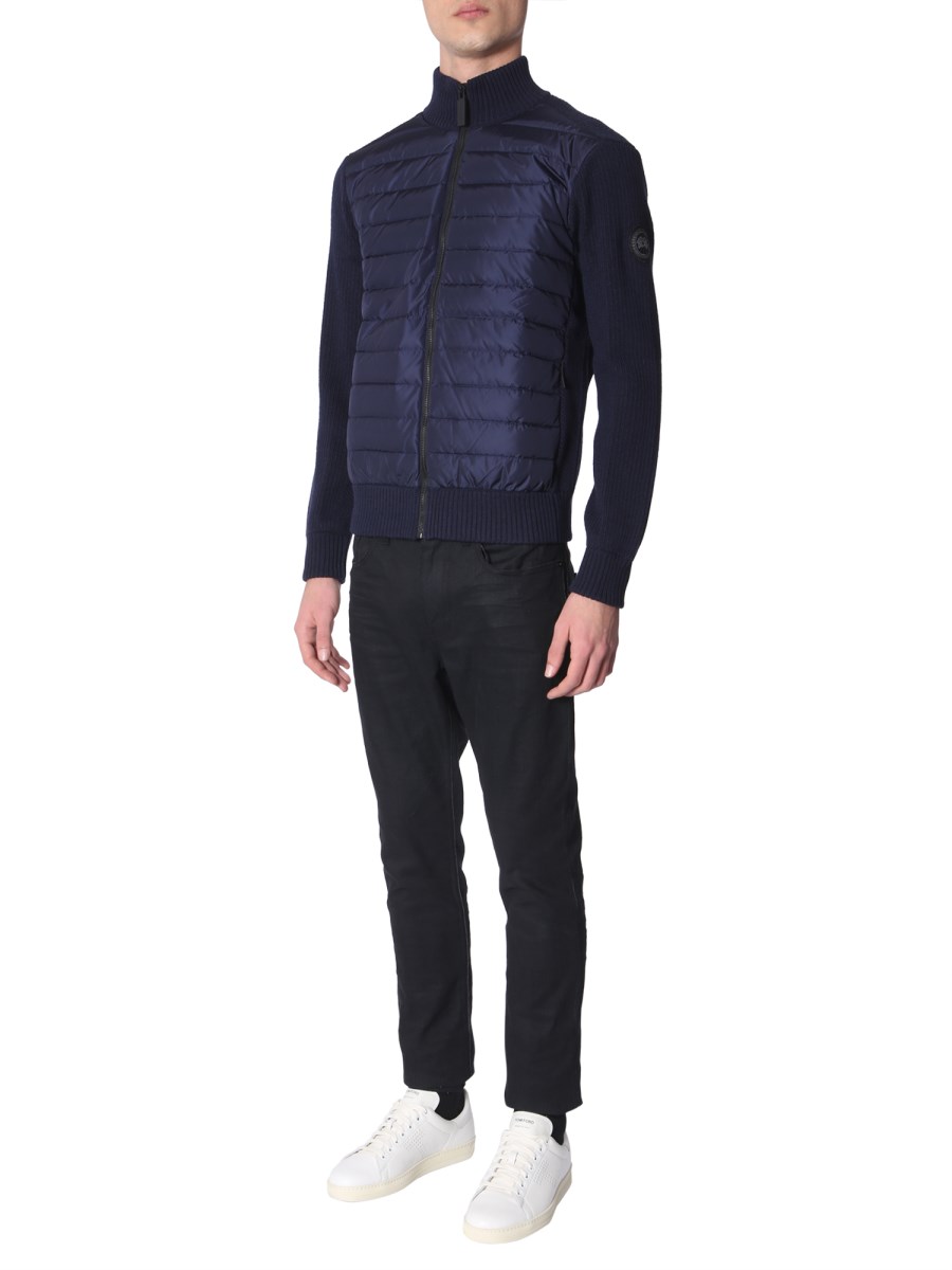Get noticed for your sleek style when you wear this Hybridge down jacket from the Canada Goose collection. The jacket has a lined interior for a smooth finish on the surface, along with long sleeves and real panel in knit. The polo-style neck extends warmth to the neck and back areas while the front zipper makes it super easy to get in and out of. Fashioned with merino wool, it feels super soft and snug against the skin and provides a comfortable wearing experience.