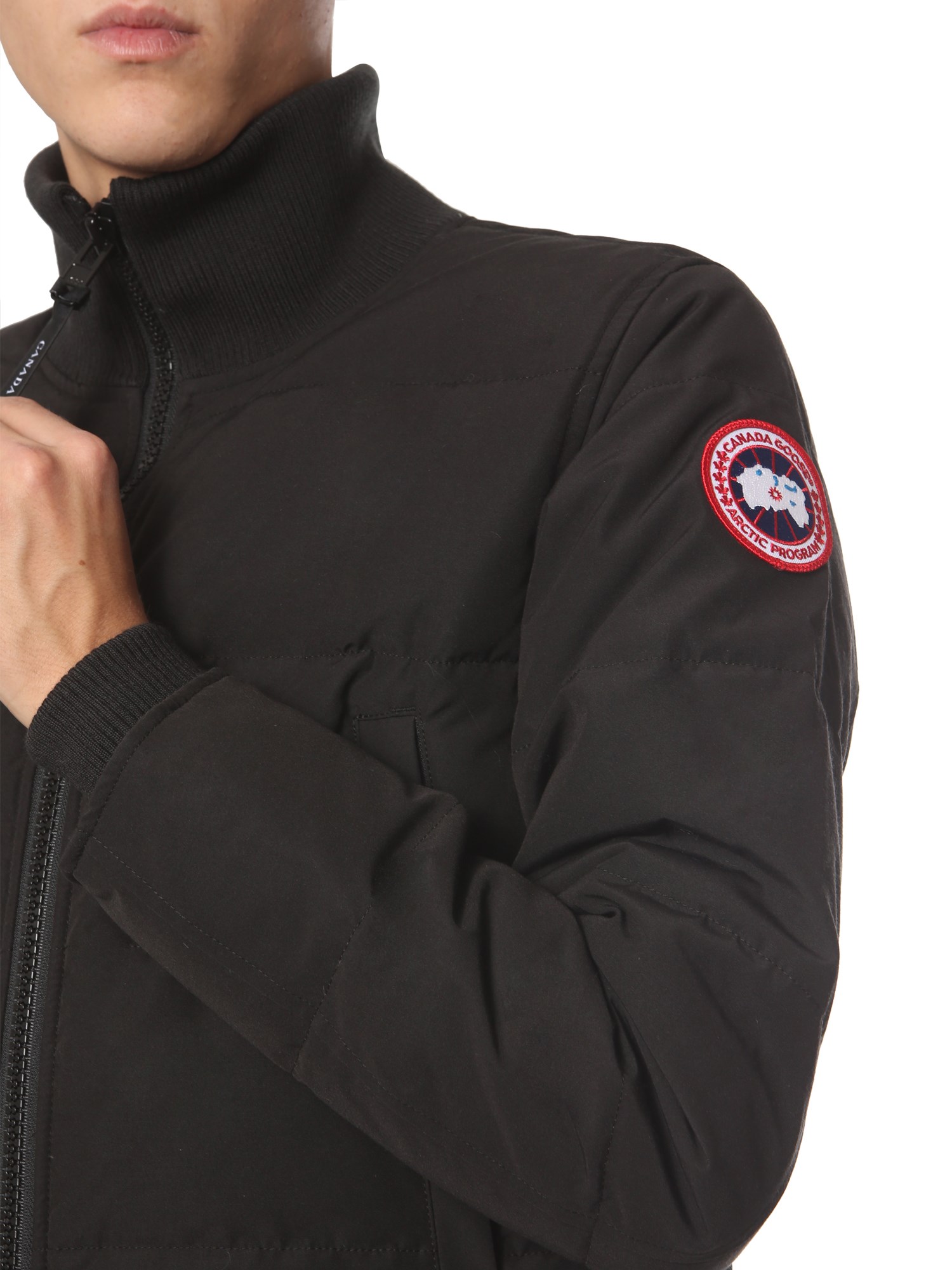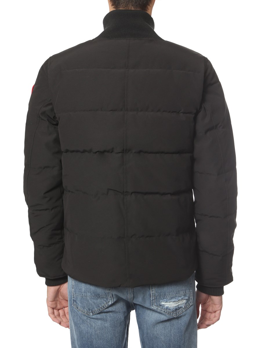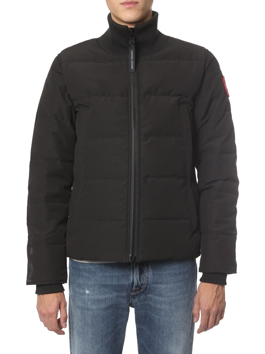 Be trek ready with the Woolford down jacket by Canada Goose without any compromise with your look. This jacket has ribbed cuffs, high neck, and double slide zip closure at front to block chilly wind. It has two side pockets with hand warmers for your comfort and one inner pocket to keep small essentials.