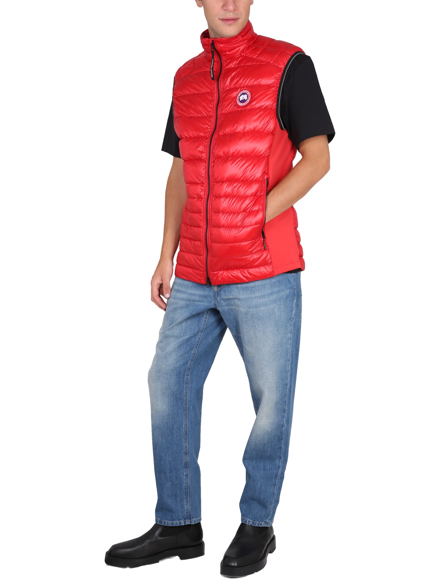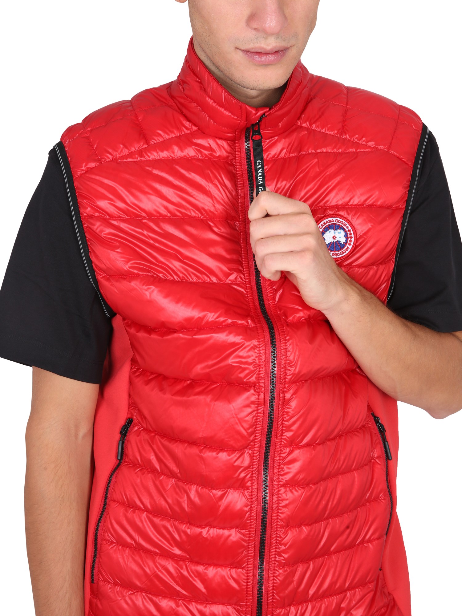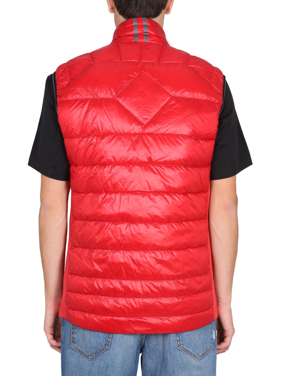 The high neck front zipper closure nylon vest from Canada Goose is a sleek and modern jacket that is ideal for the fall. This vest is made of nylon and is great for those who want to keep warm. It has a high neck front zipper closure. It also offers two zippered side pockets and two inside mesh pockets.