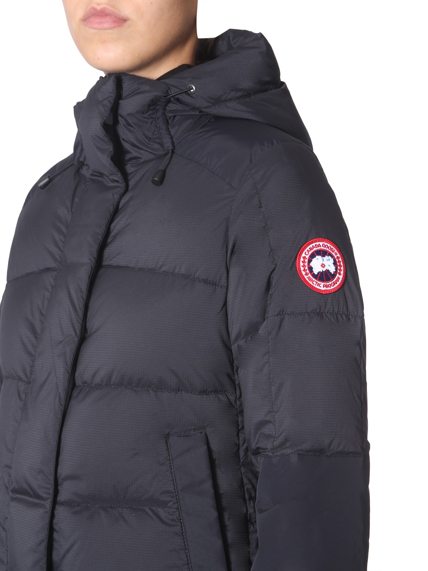 Head for an adventure or trekking trip with this "alliston" down jacket from Canada Goose. Its surface is made of nylon and stuffed with goose feather to experience utmost cosiness. The two inner pockets can be used to carry phone and keys while the two front pockets help keep your hands warm.